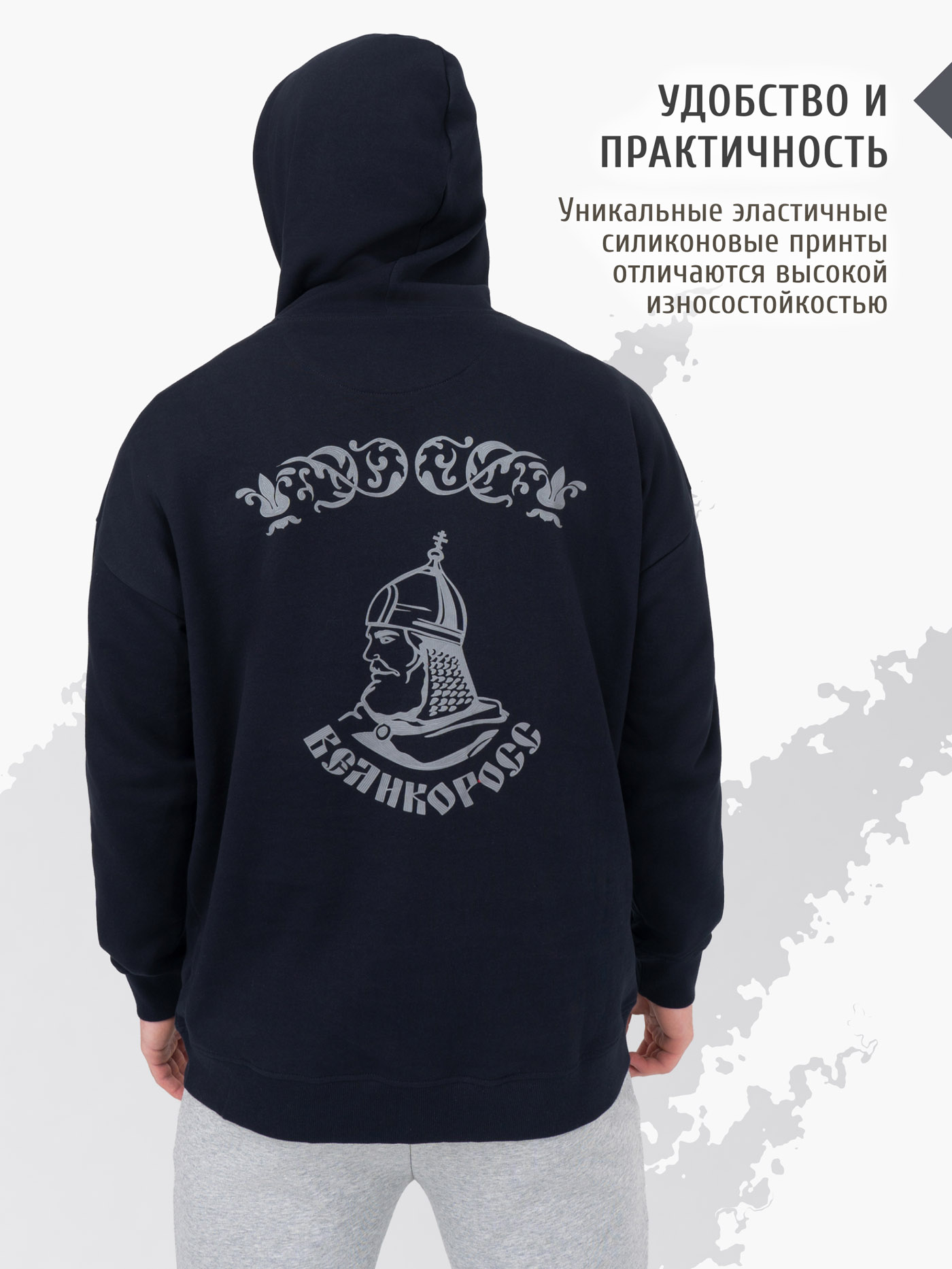 Носить худи Великоросс – значит подчеркивать свое отношение к традициям. Крупные принты на темном фоне выглядят очень эффектно. Масштабная стирка не влияет на качество: ткань не садится, принт не трескается.