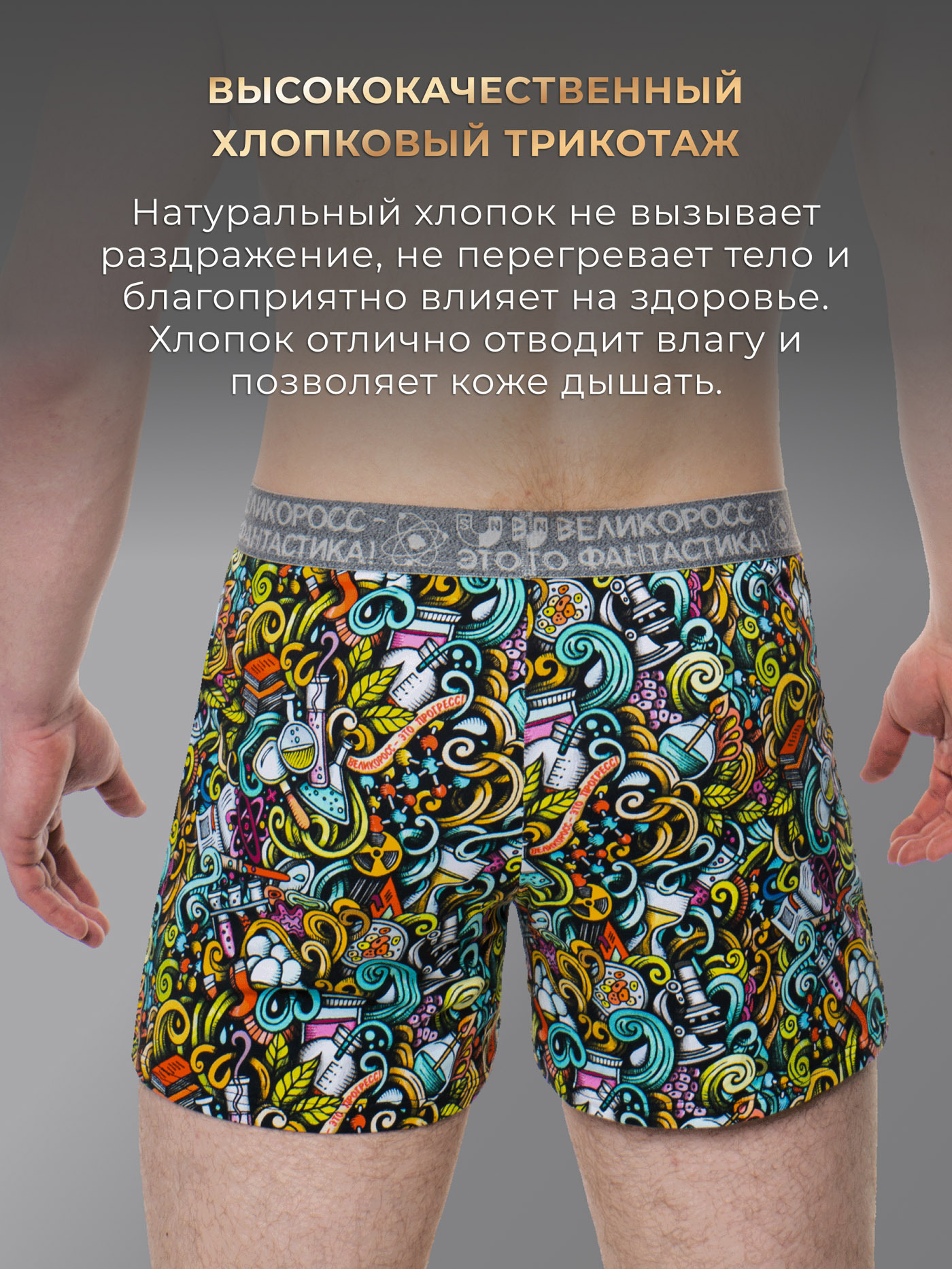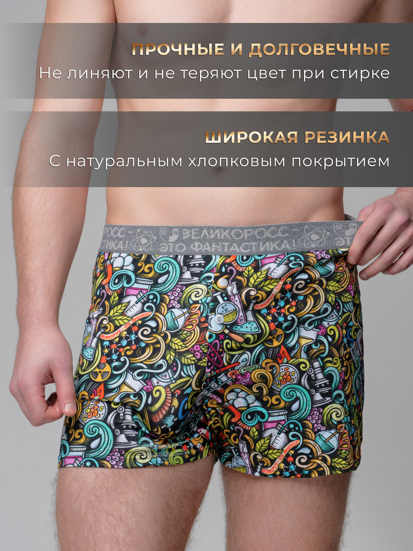 Принтованные семейные трусы из набора от «Великоросс» сочетают яркий дизайн, комфорт и качество. Натуральные материалы обеспечивают удобство при носке.