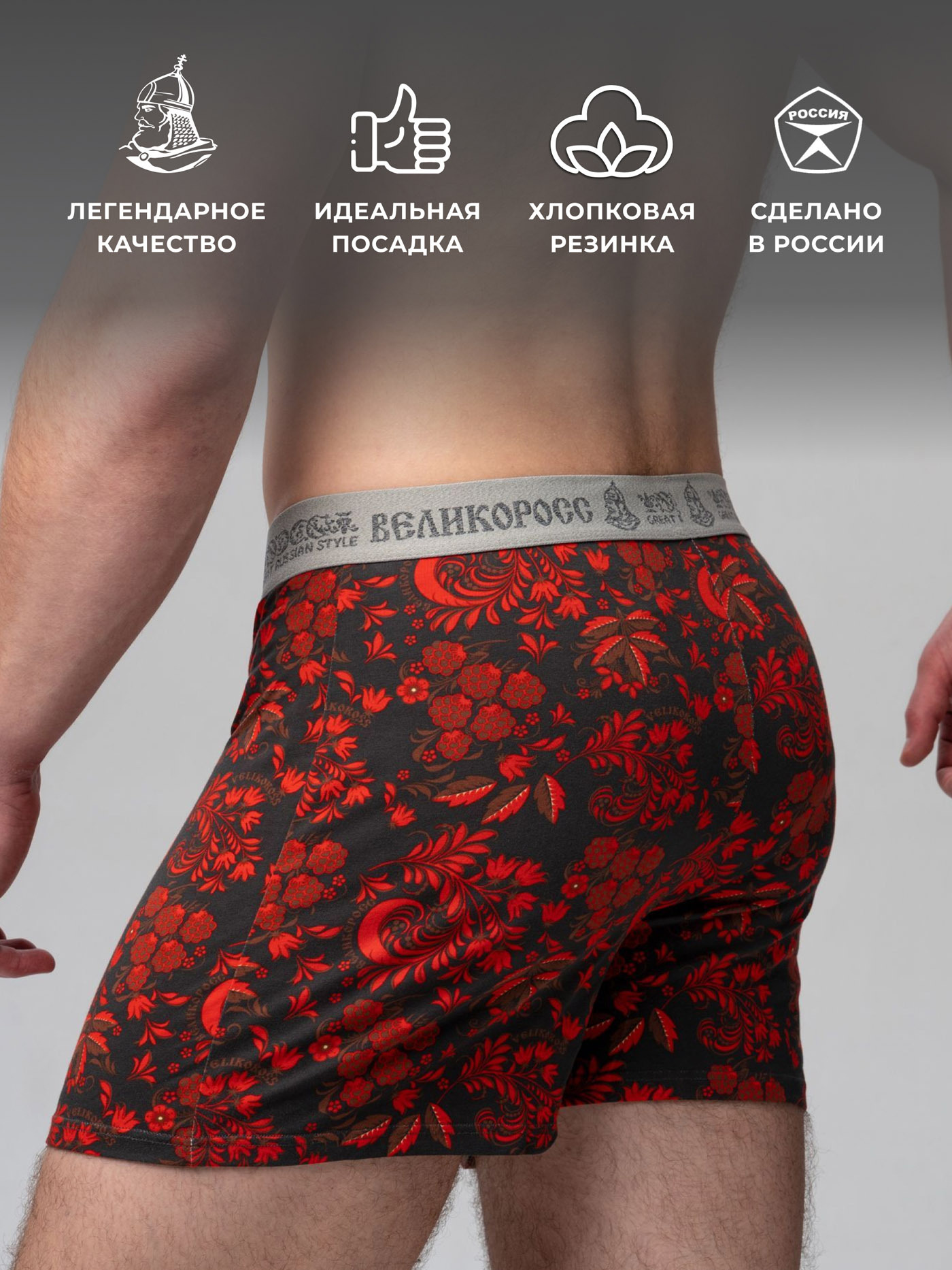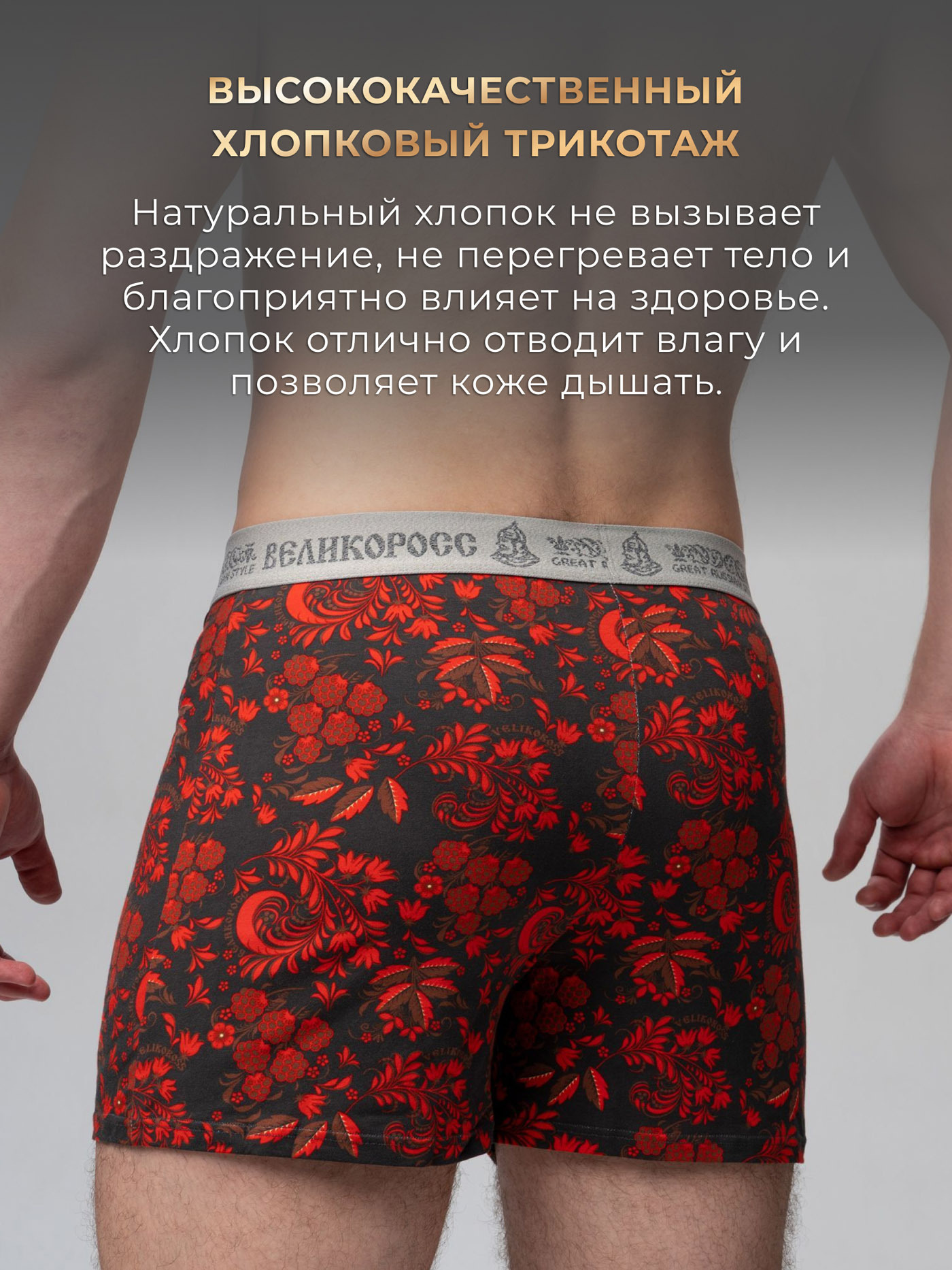 Комплект из 3-х семейных трусов - «Красная хохлома»