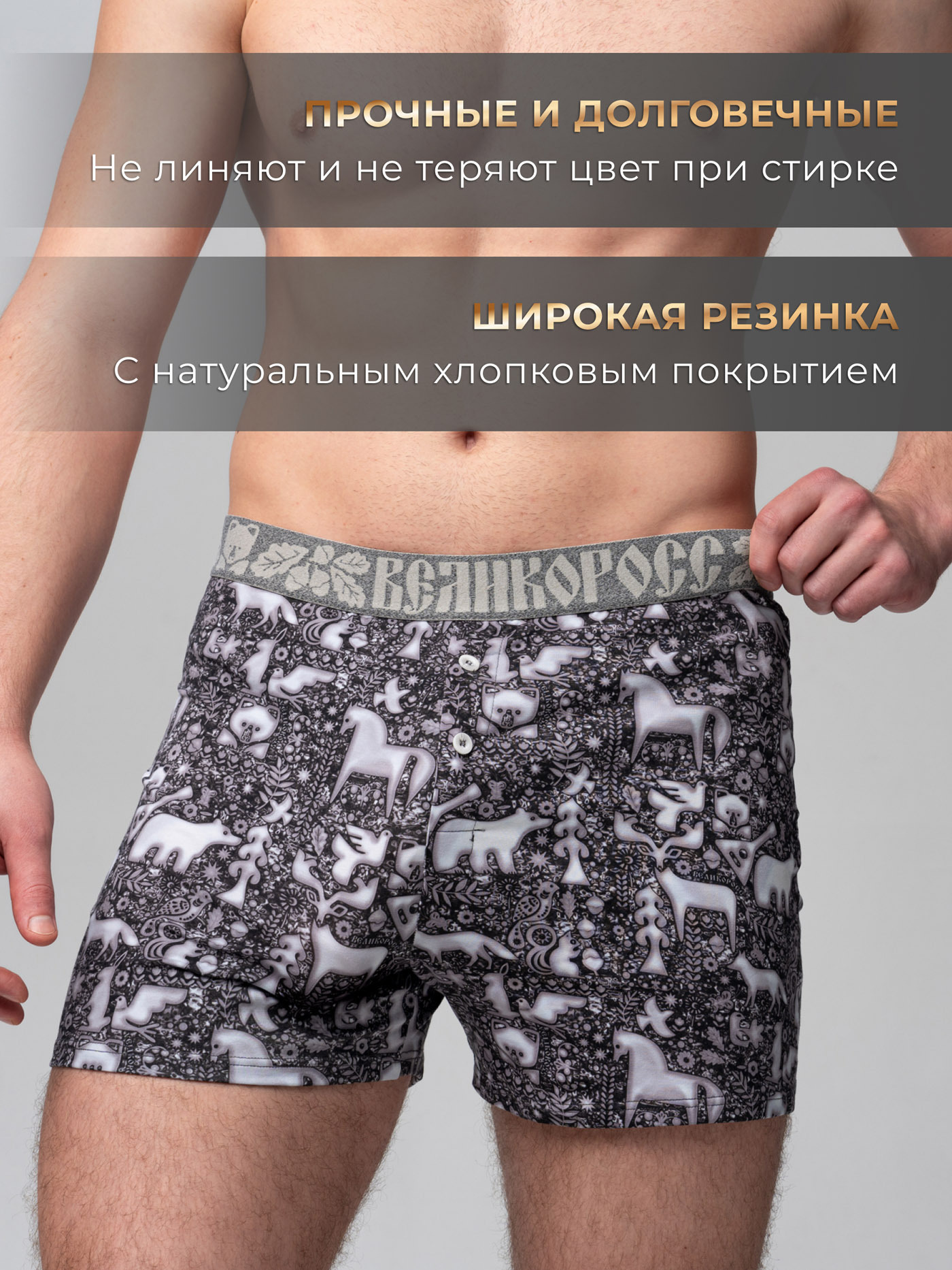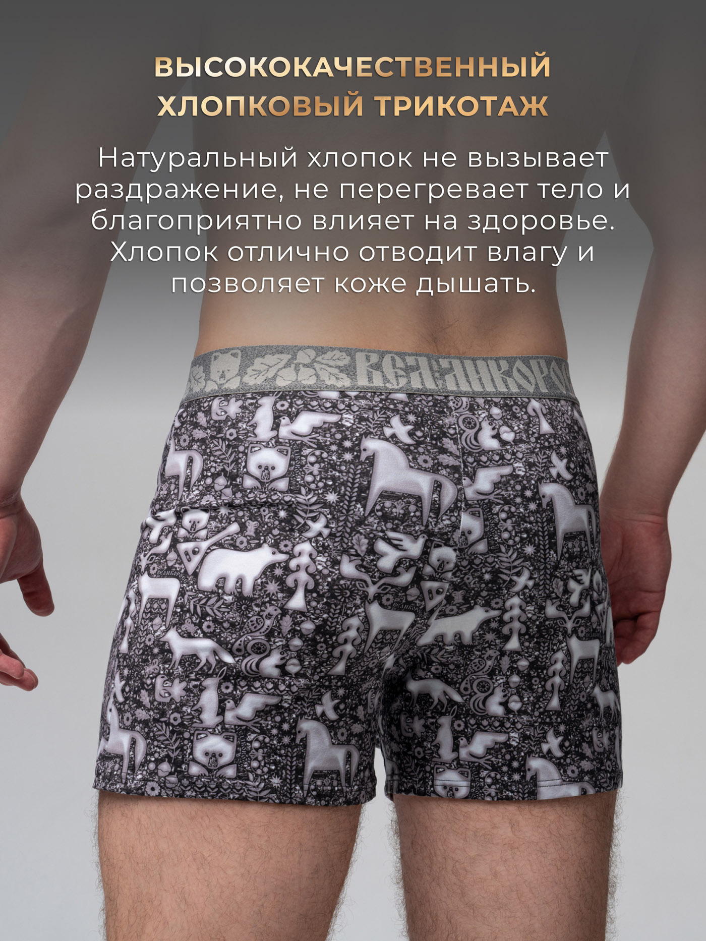 Принтованные семейные трусы из набора от «Великоросс» сочетают яркий дизайн, комфорт и качество. Натуральные материалы обеспечивают удобство при носке.