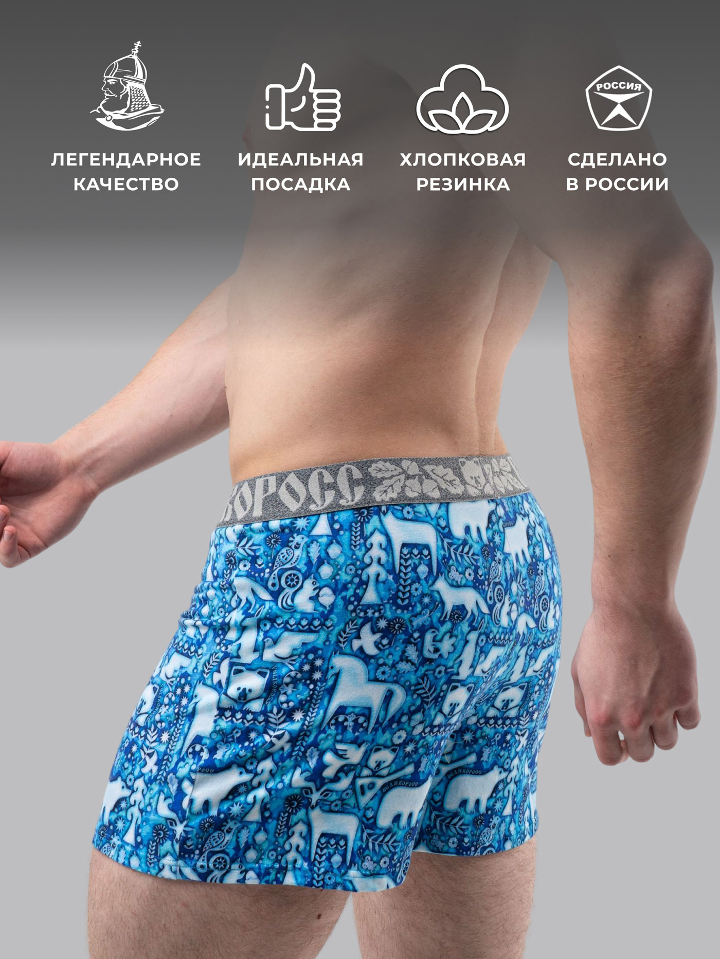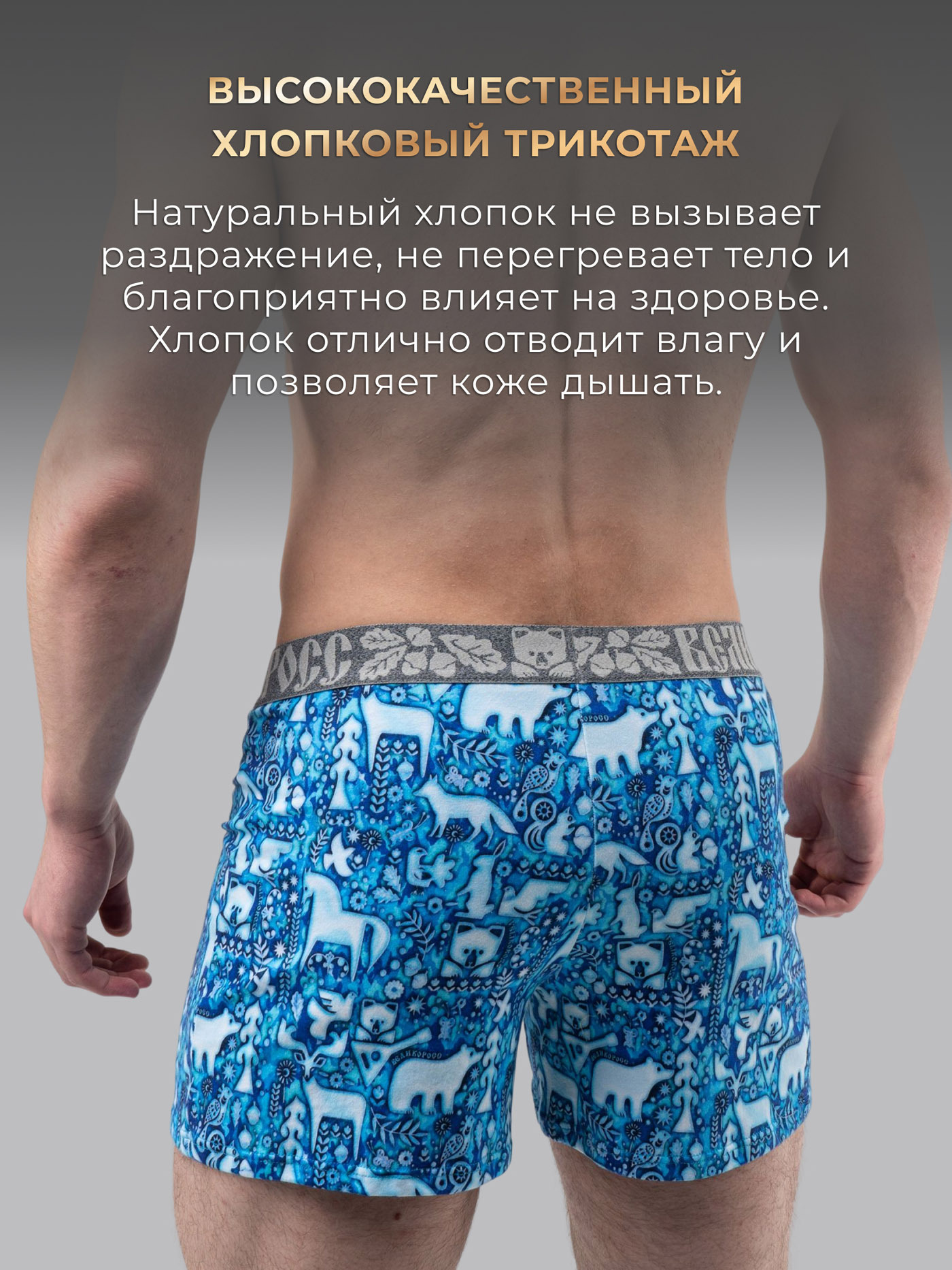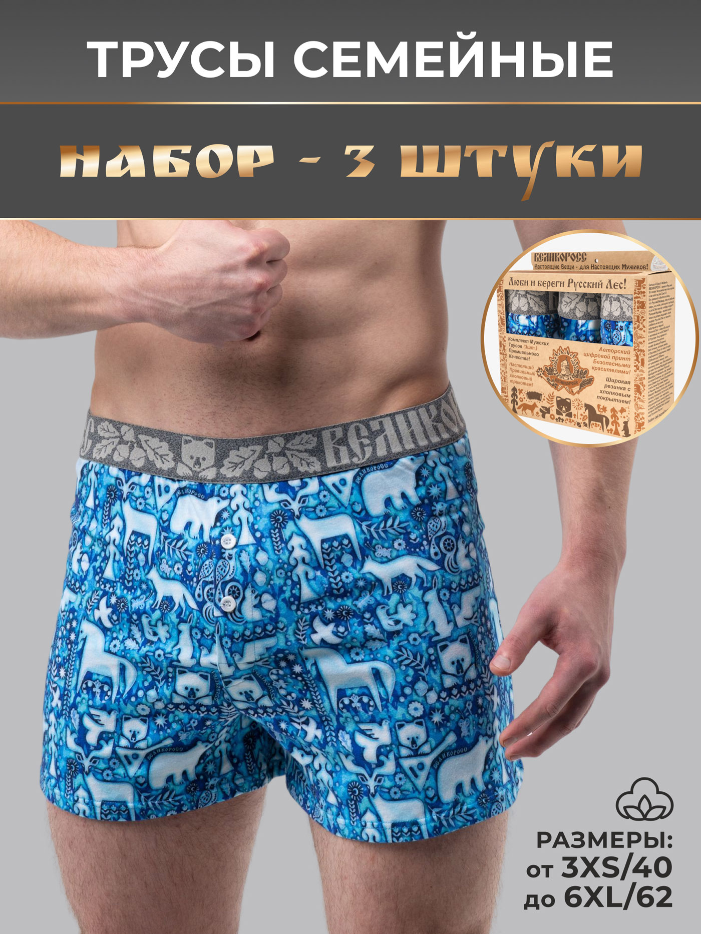 Принтованные семейные трусы из набора от «Великоросс» сочетают яркий дизайн, комфорт и качество. Натуральные материалы обеспечивают удобство при носке.