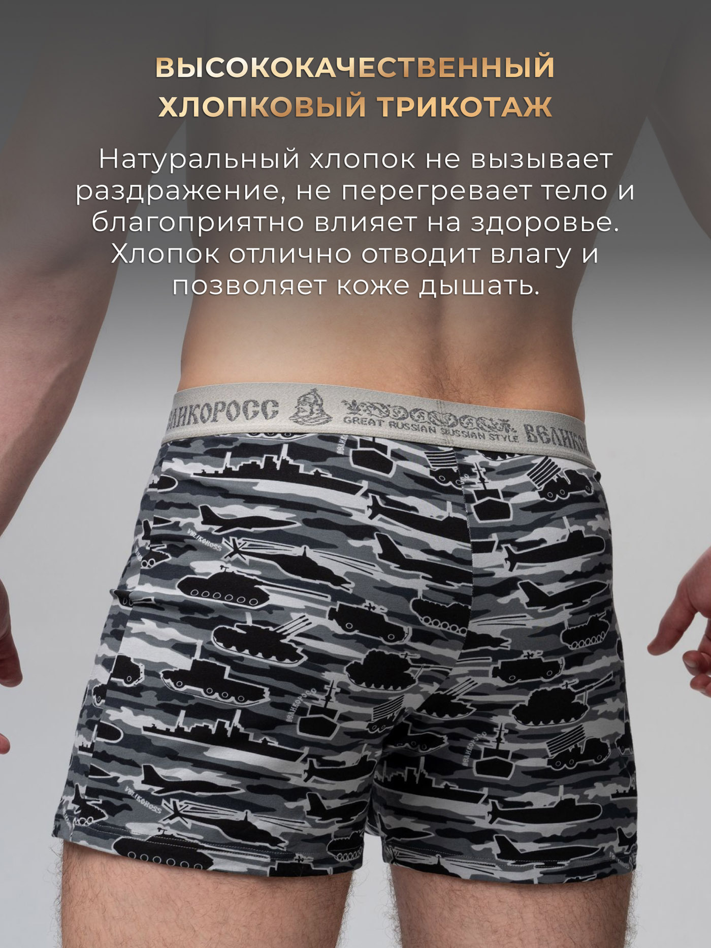 Принтованные семейные трусы из набора от «Великоросс» сочетают яркий дизайн, комфорт и качество. Натуральные материалы обеспечивают удобство при носке.
