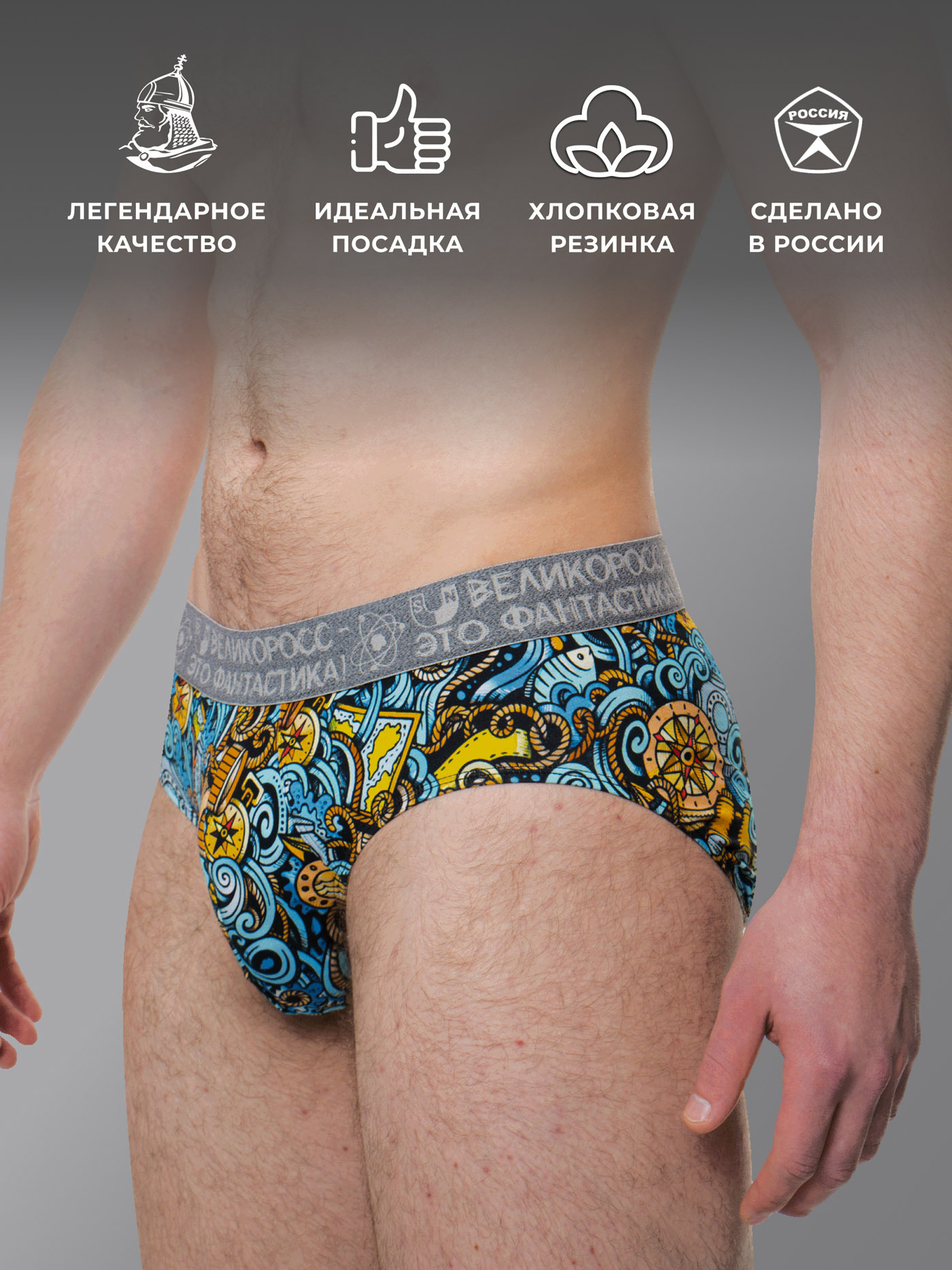 Принтованные спортивные трусы из набора от «Великоросс» сочетают яркий дизайн, комфорт и качество. Натуральные материалы обеспечивают удобство при носке.