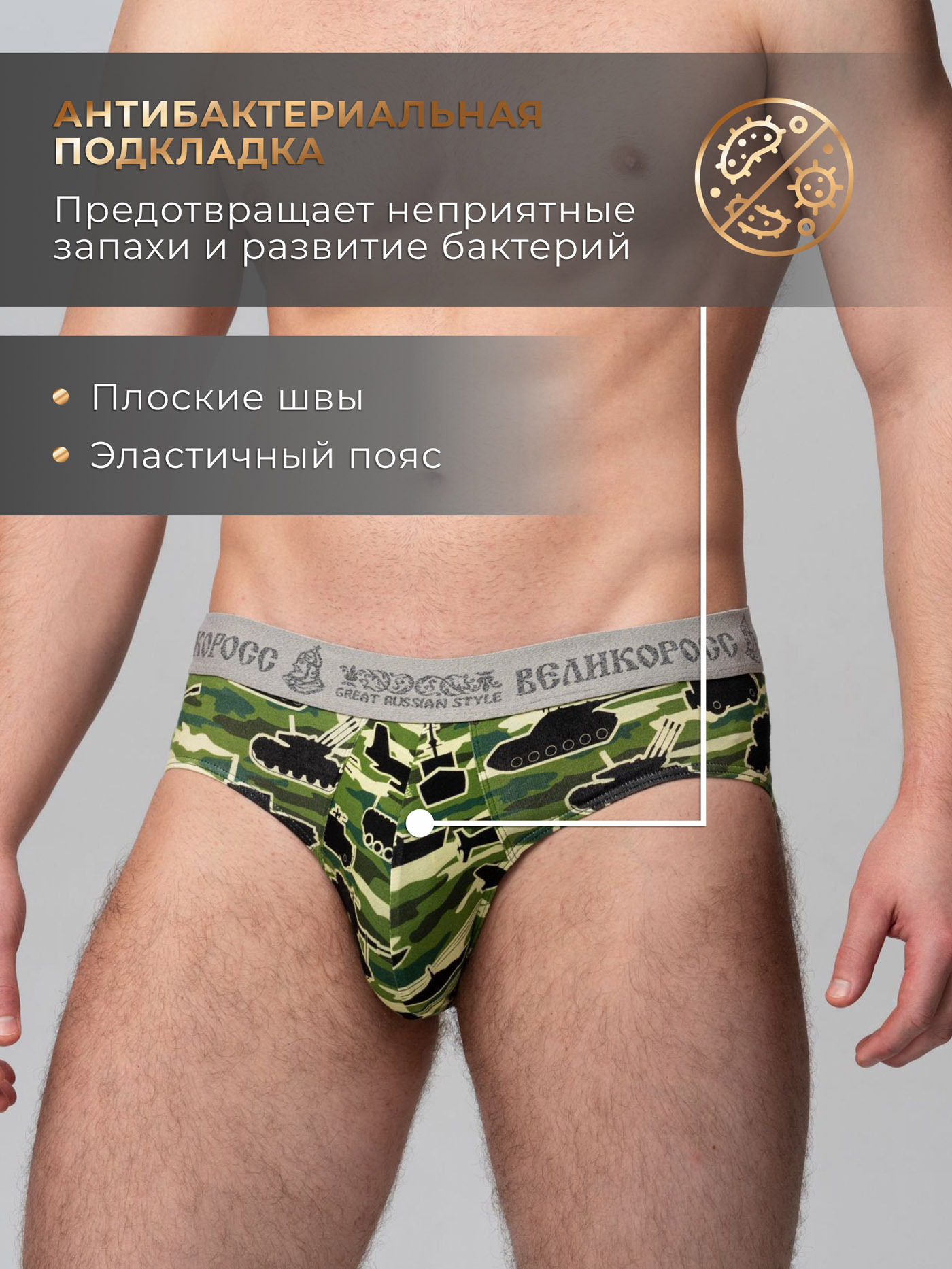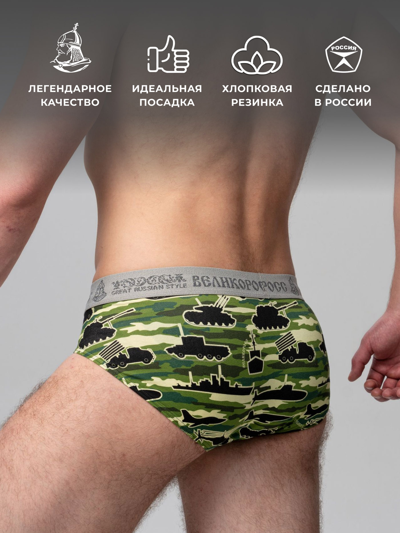 Принтованные спортивные трусы из набора от «Великоросс» сочетают яркий дизайн, комфорт и качество. Натуральные материалы обеспечивают удобство при носке.