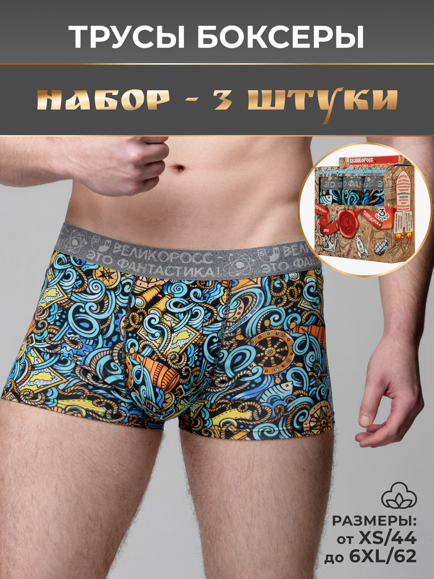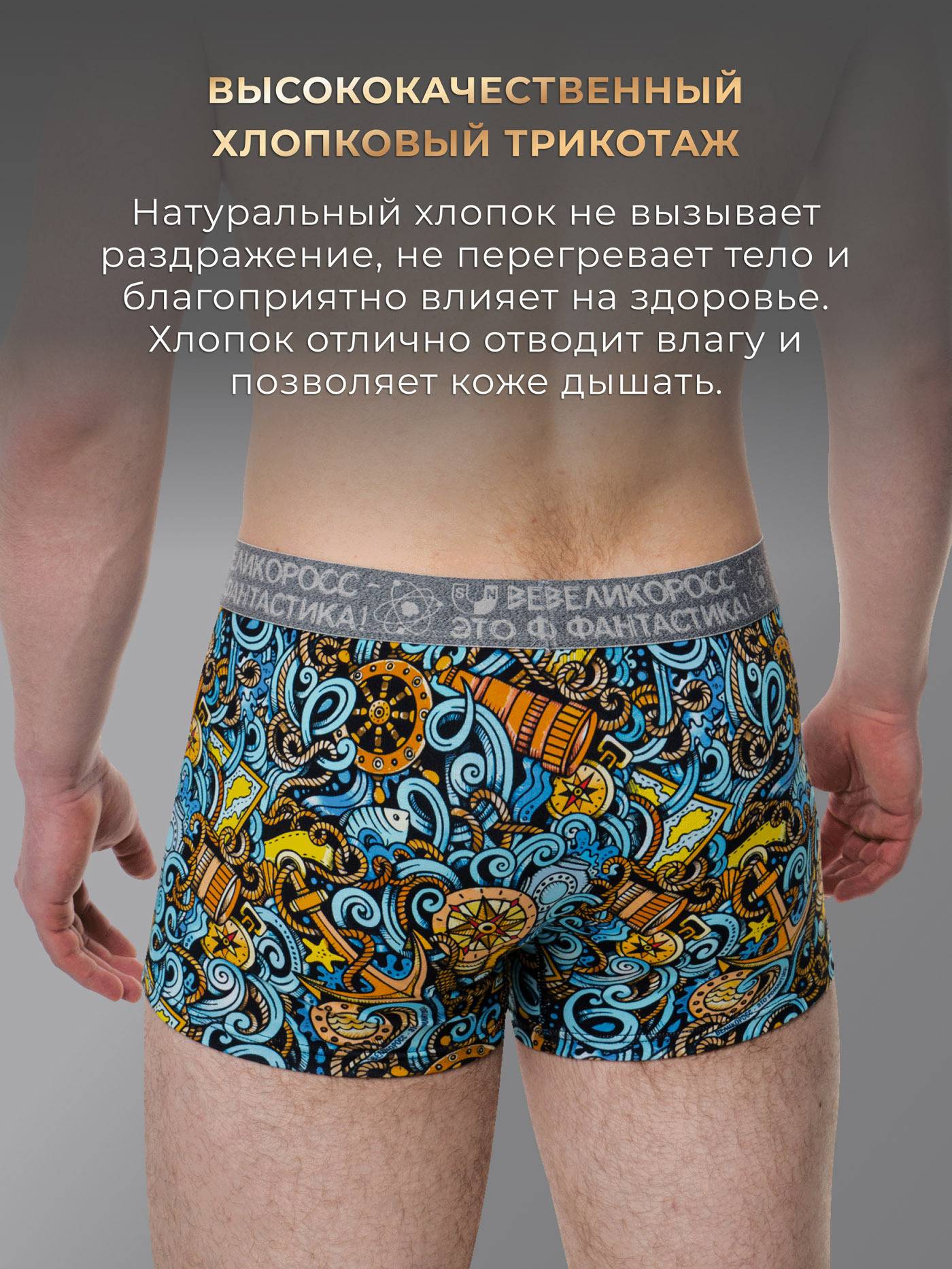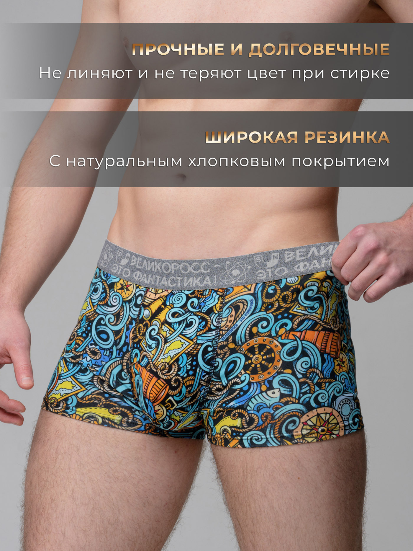 Принтованные трусы-боксеры из набора от «Великоросс» сочетают яркий дизайн, комфорт и качество. Натуральные материалы обеспечивают удобство при носке.