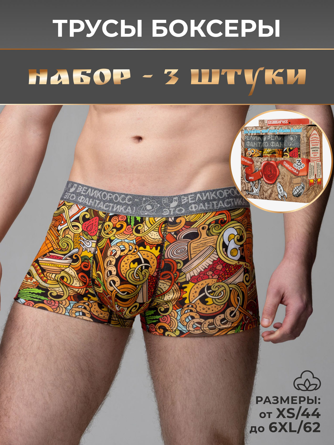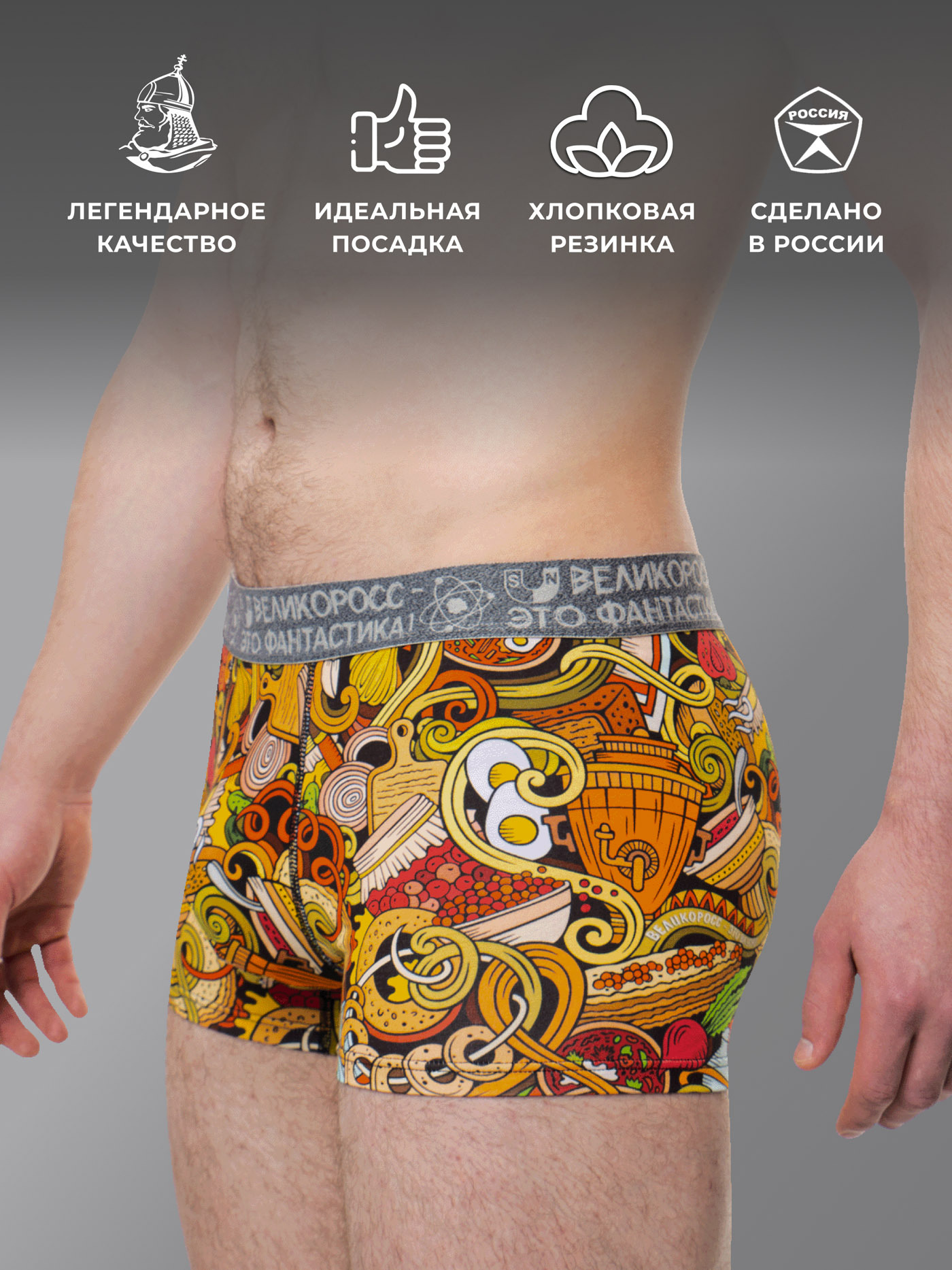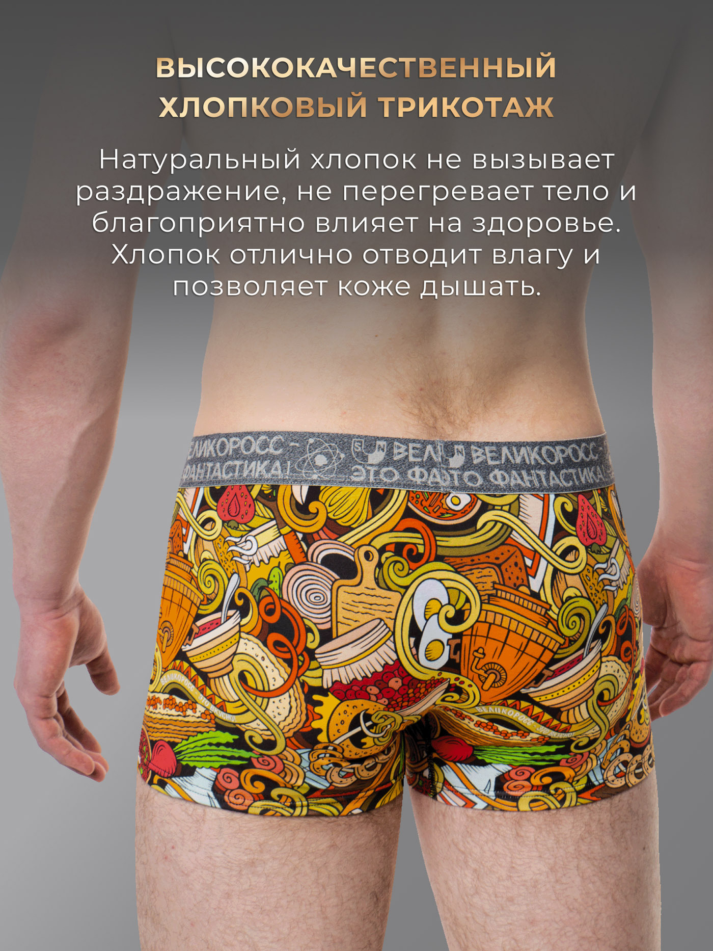 Принтованные трусы-боксеры из набора от «Великоросс» сочетают яркий дизайн, комфорт и качество. Натуральные материалы обеспечивают удобство при носке.