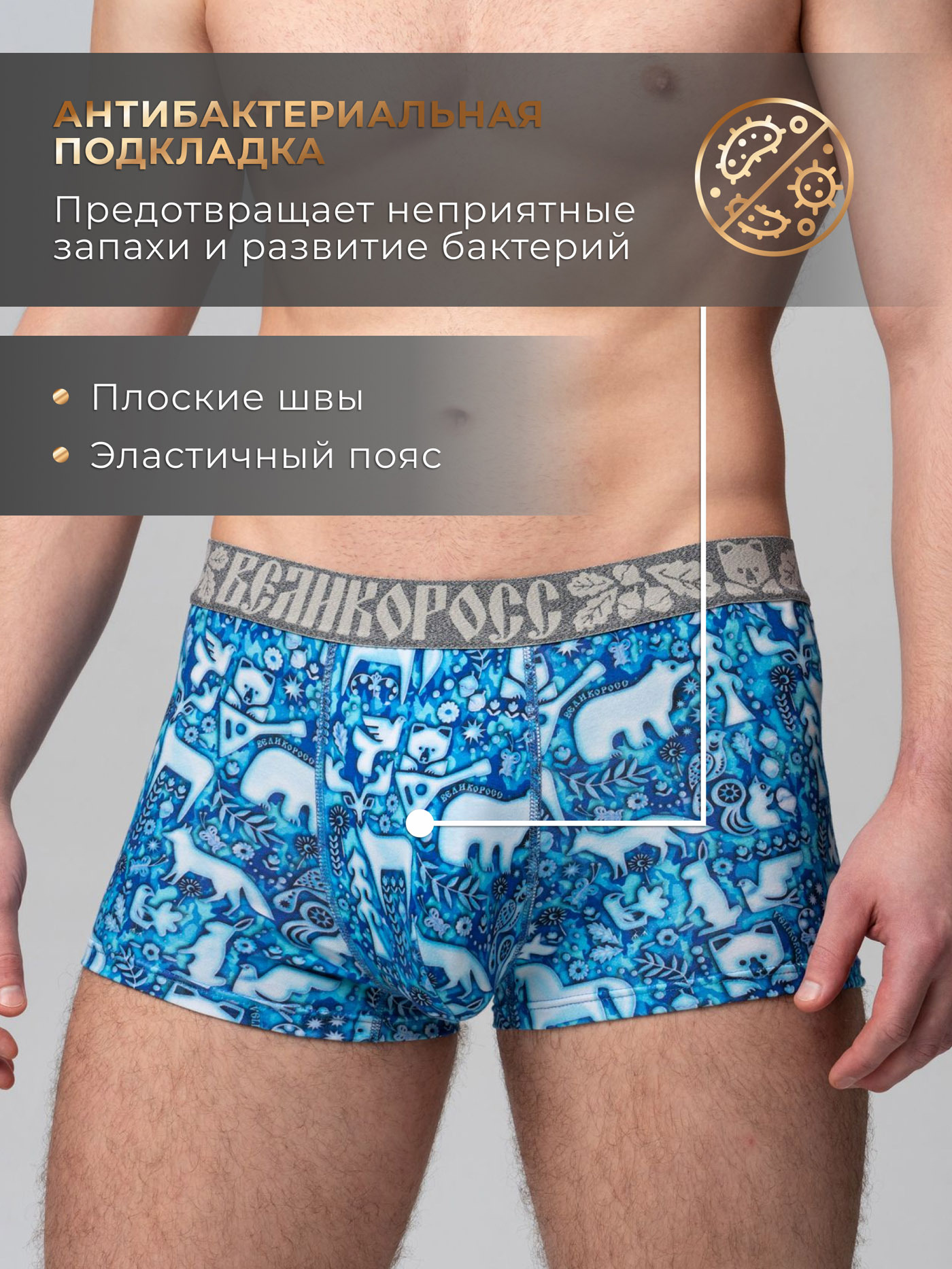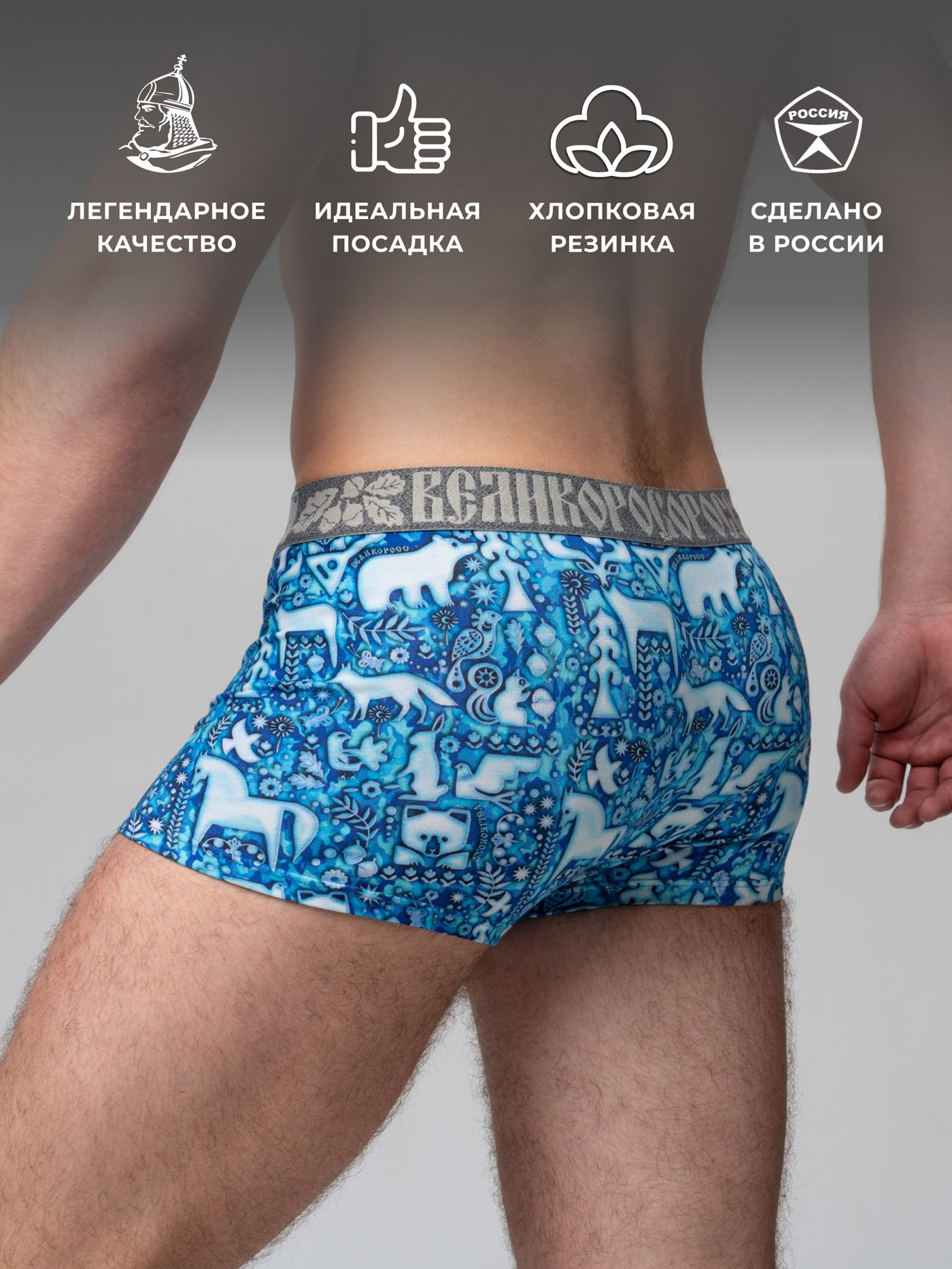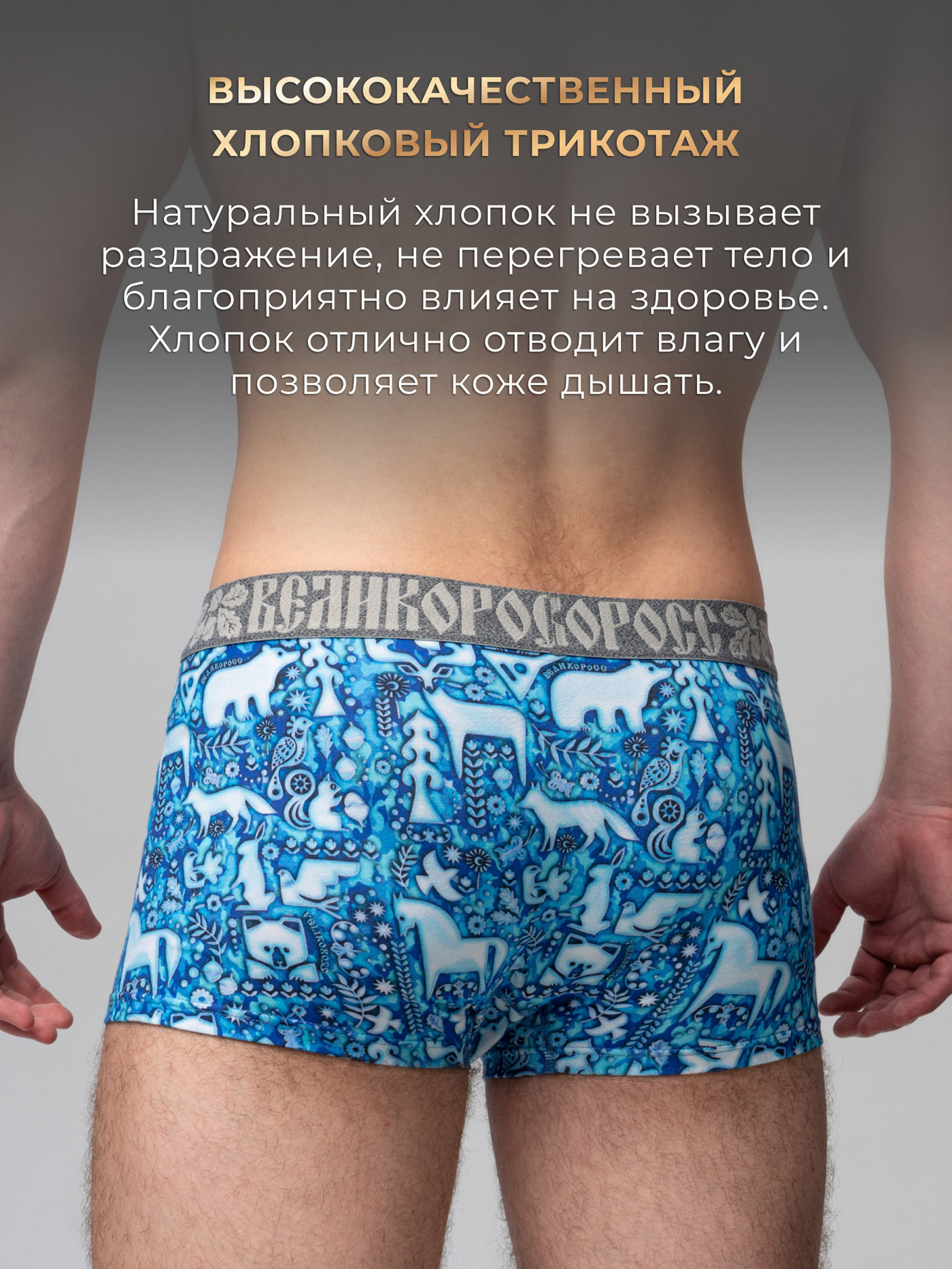 Принтованные трусы-боксеры из набора от «Великоросс» сочетают яркий дизайн, комфорт и качество. Натуральные материалы обеспечивают удобство при носке.