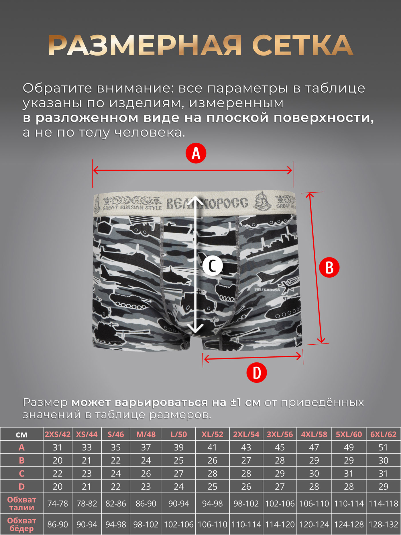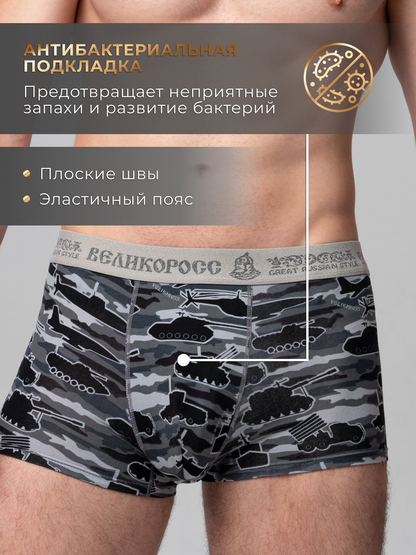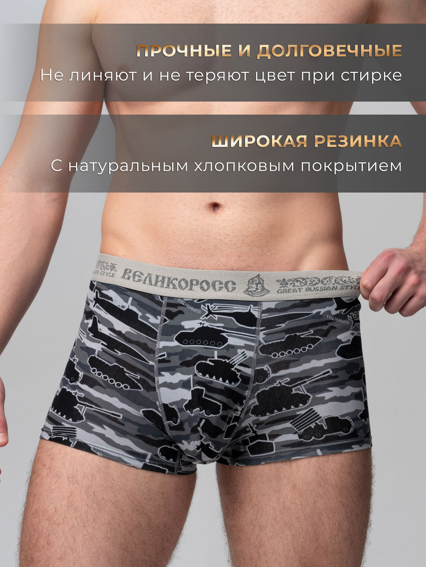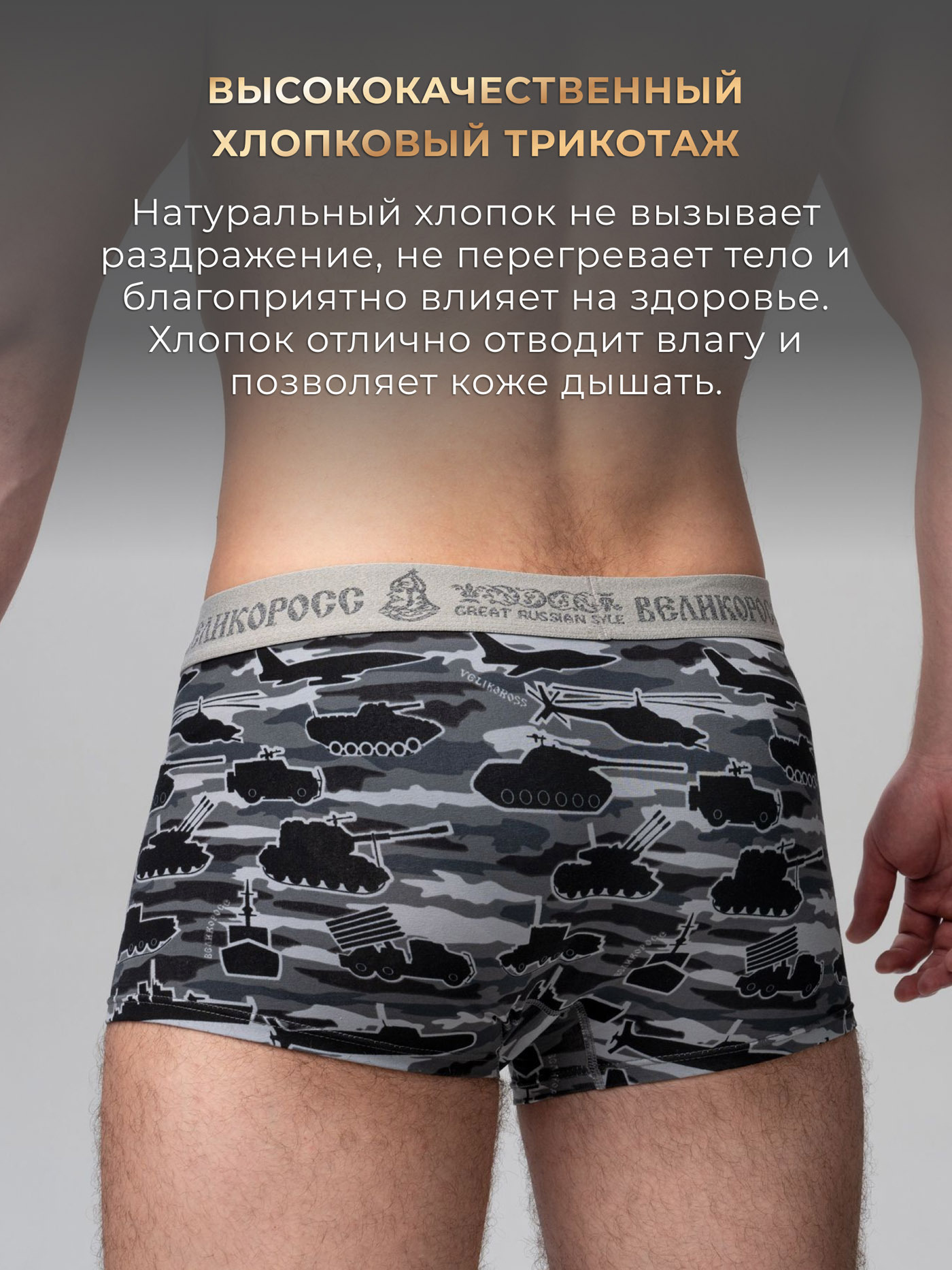 Принтованные трусы-боксеры из набора от «Великоросс» сочетают яркий дизайн, комфорт и качество. Натуральные материалы обеспечивают удобство при носке.