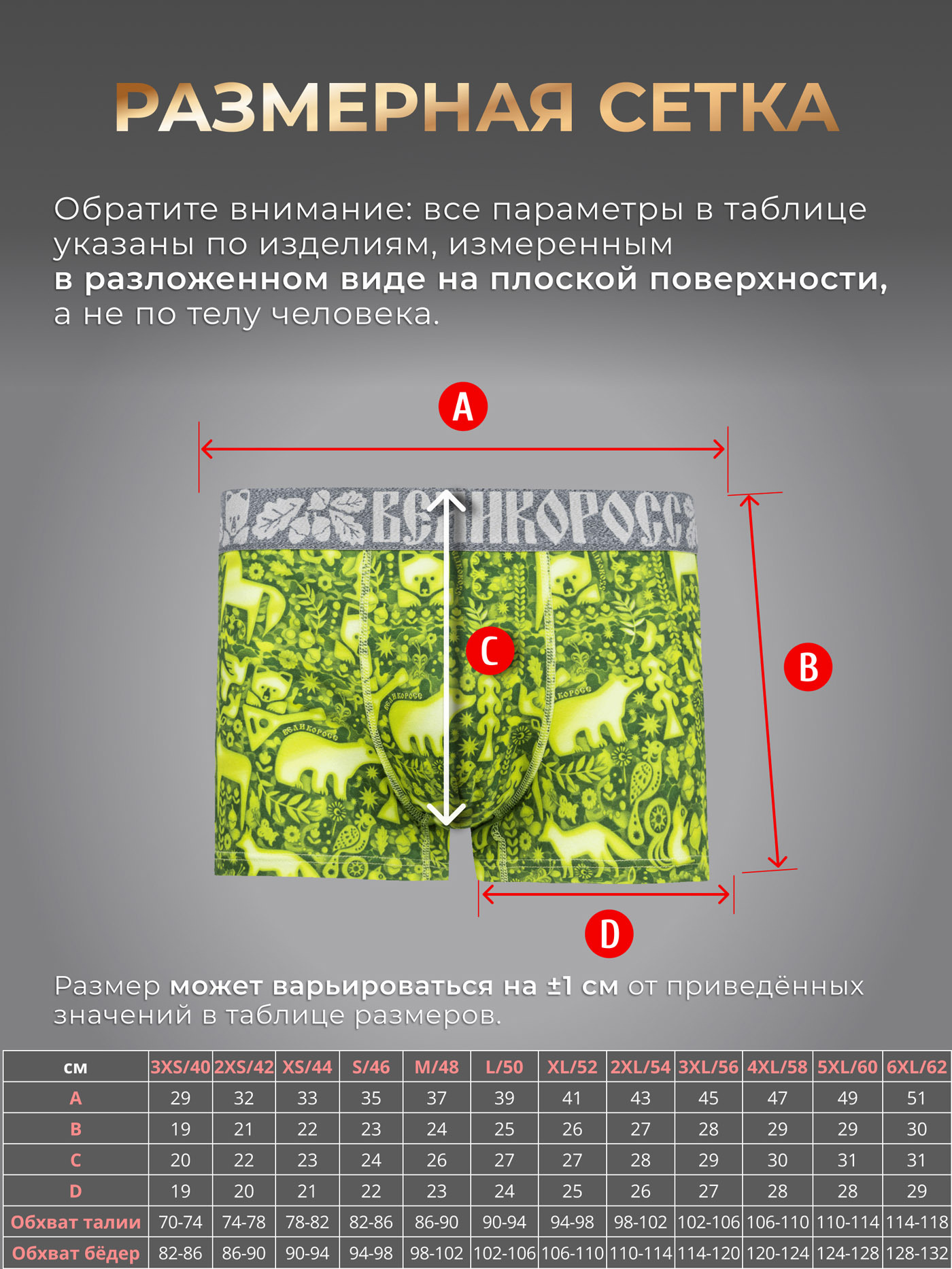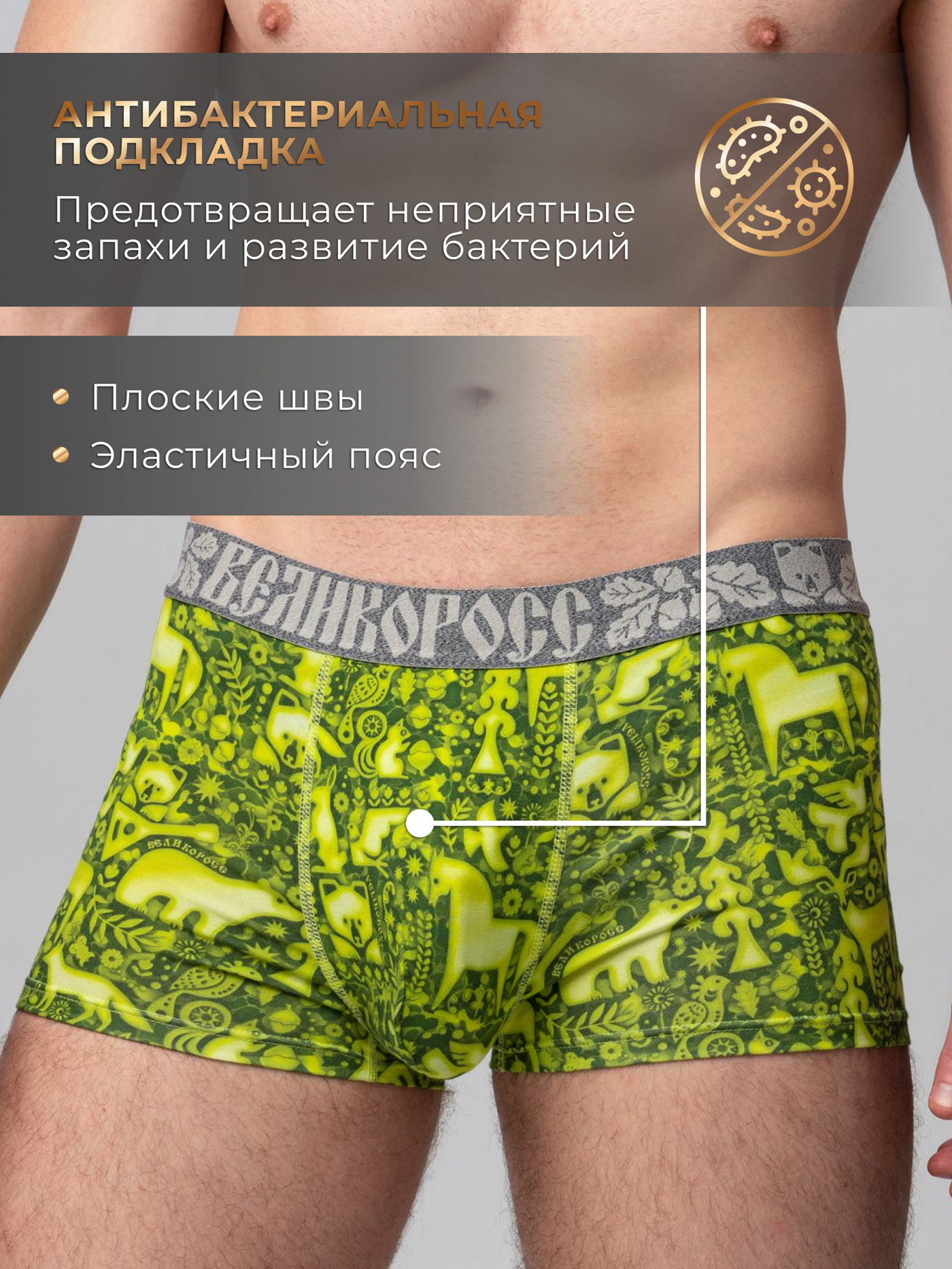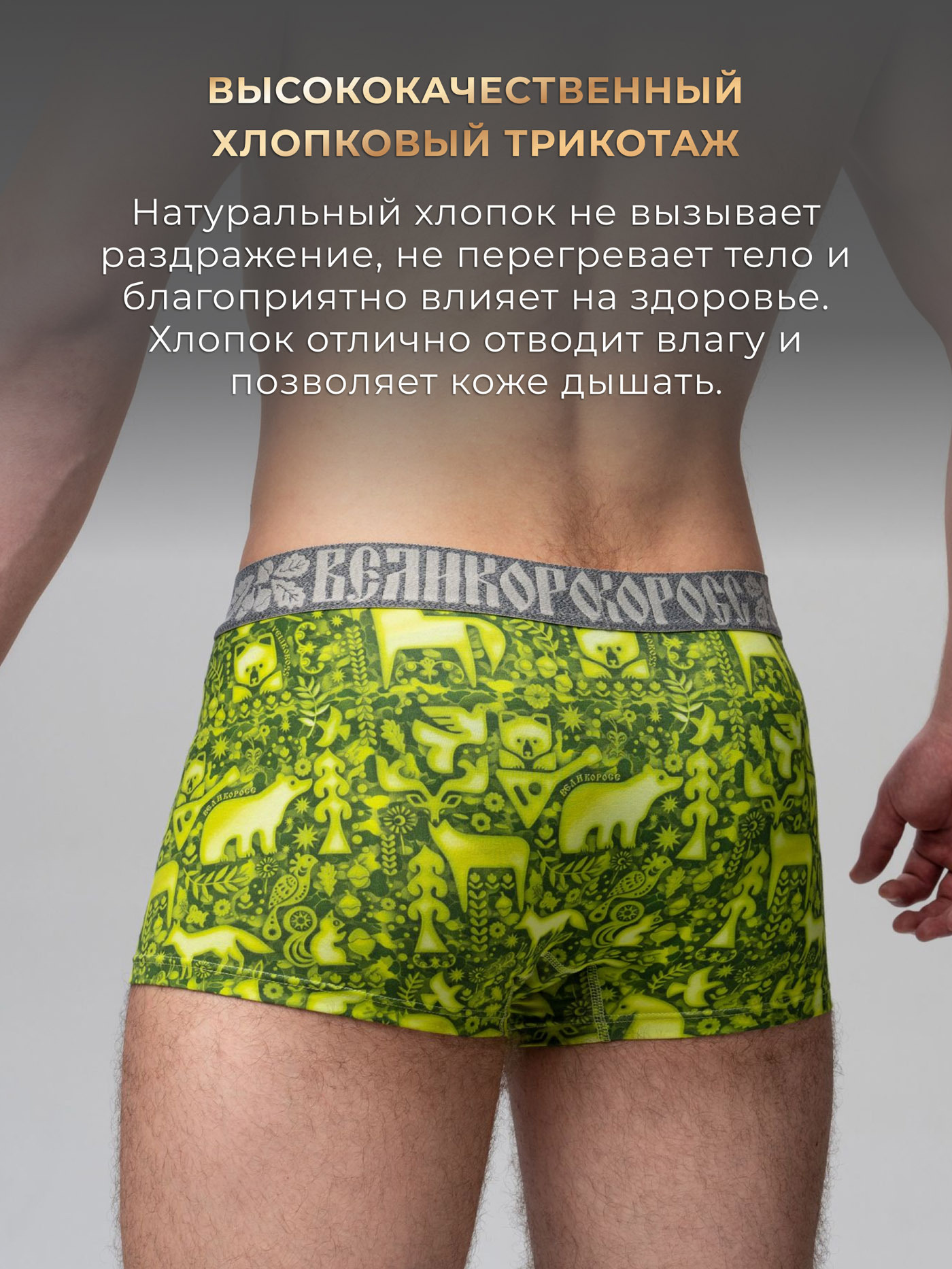Принтованные трусы-боксеры из набора от «Великоросс» сочетают яркий дизайн, комфорт и качество. Натуральные материалы обеспечивают удобство при носке.
