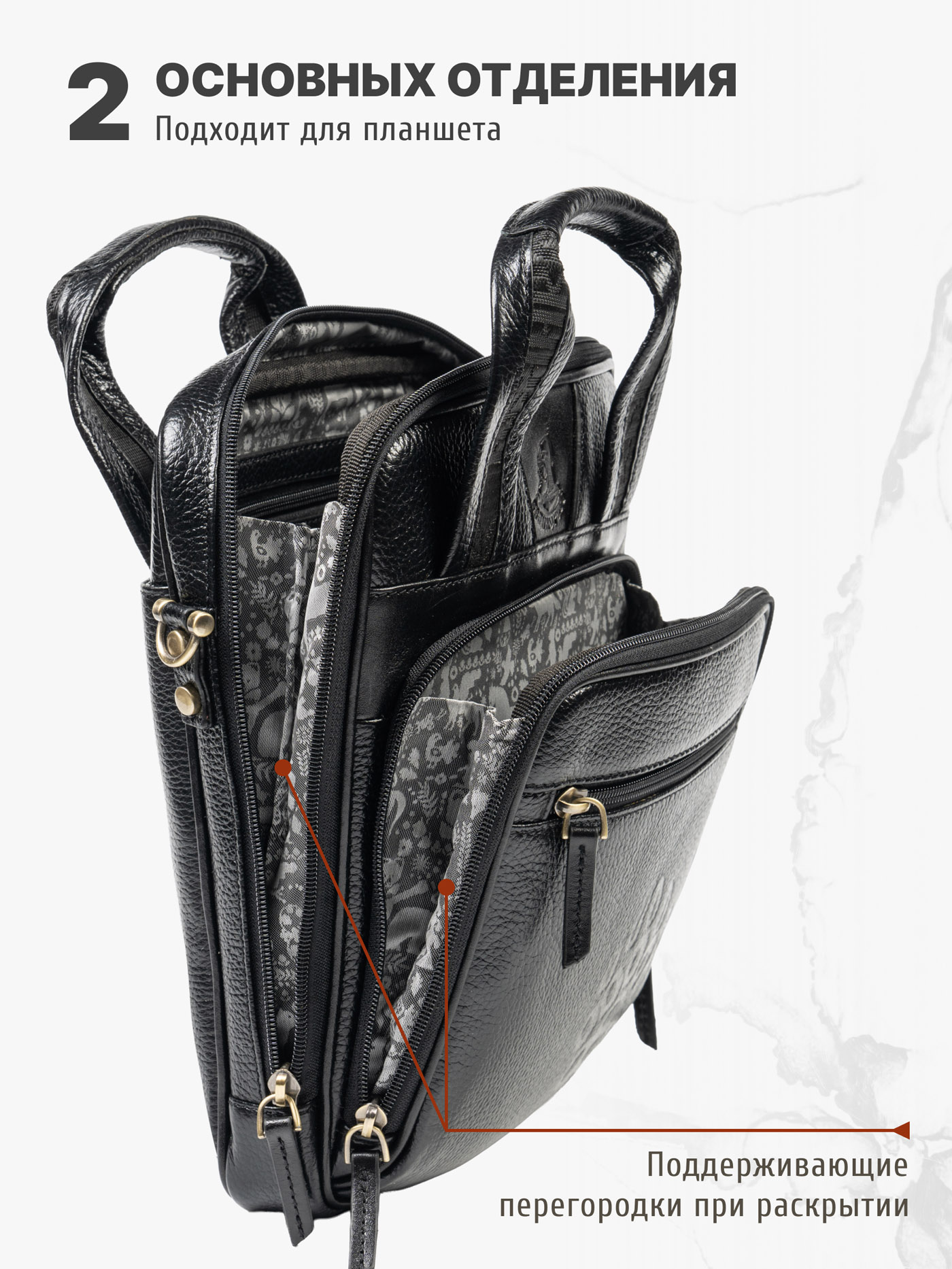 Сумка небольшая, не толстая. Поместится небольшой планшет, не более. Фурнитура качественная.