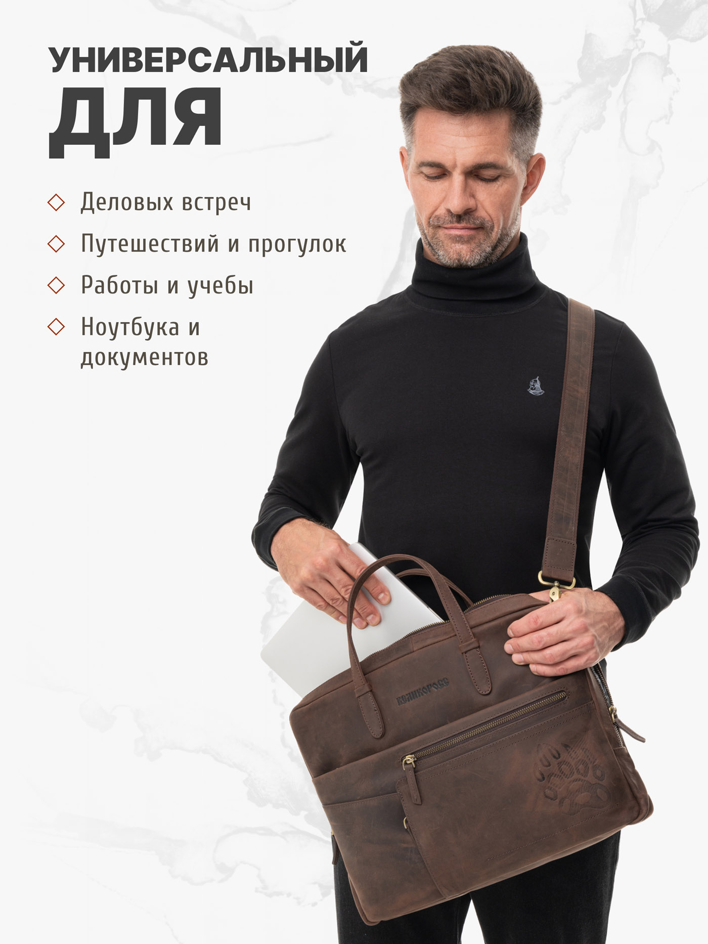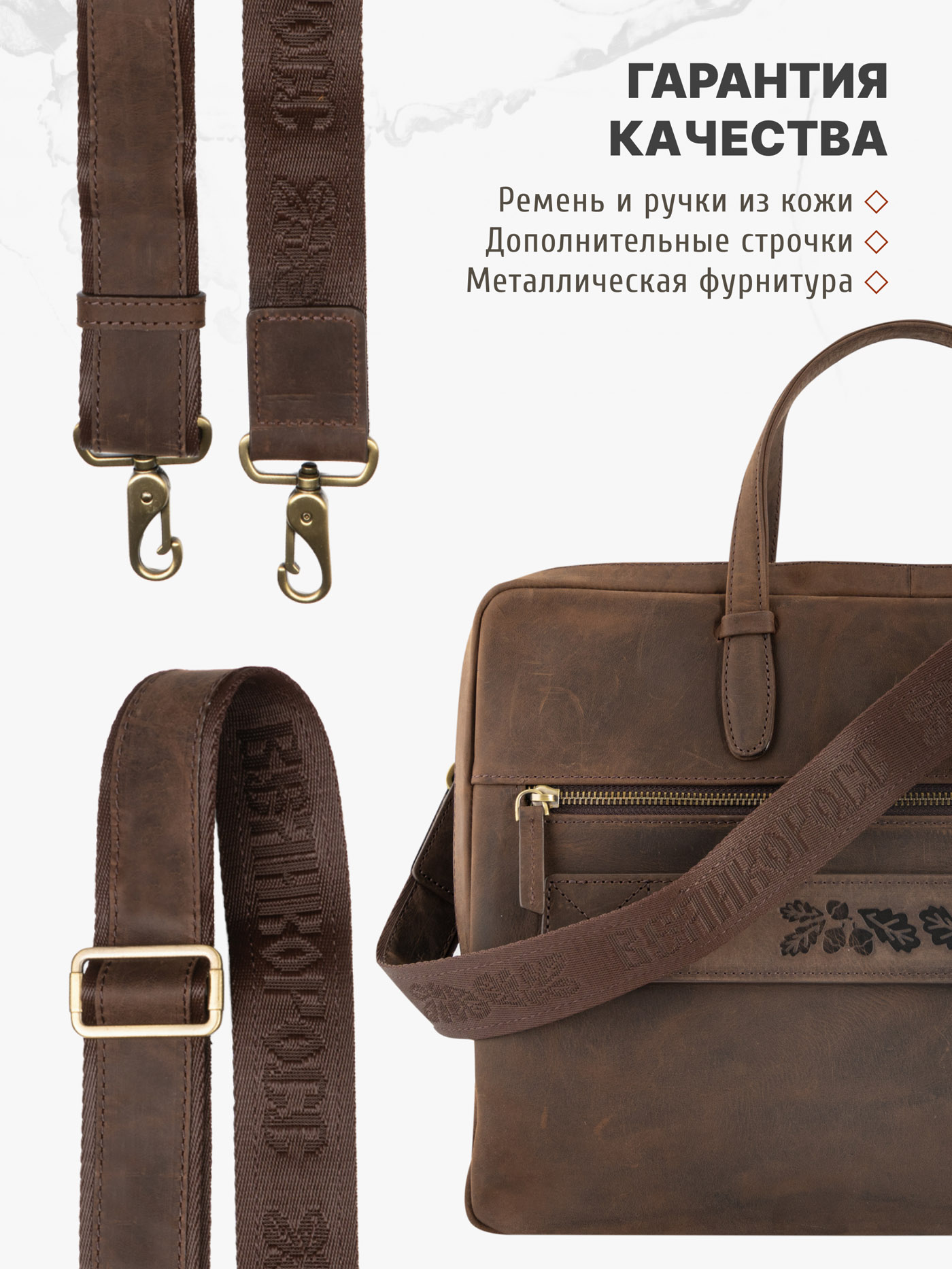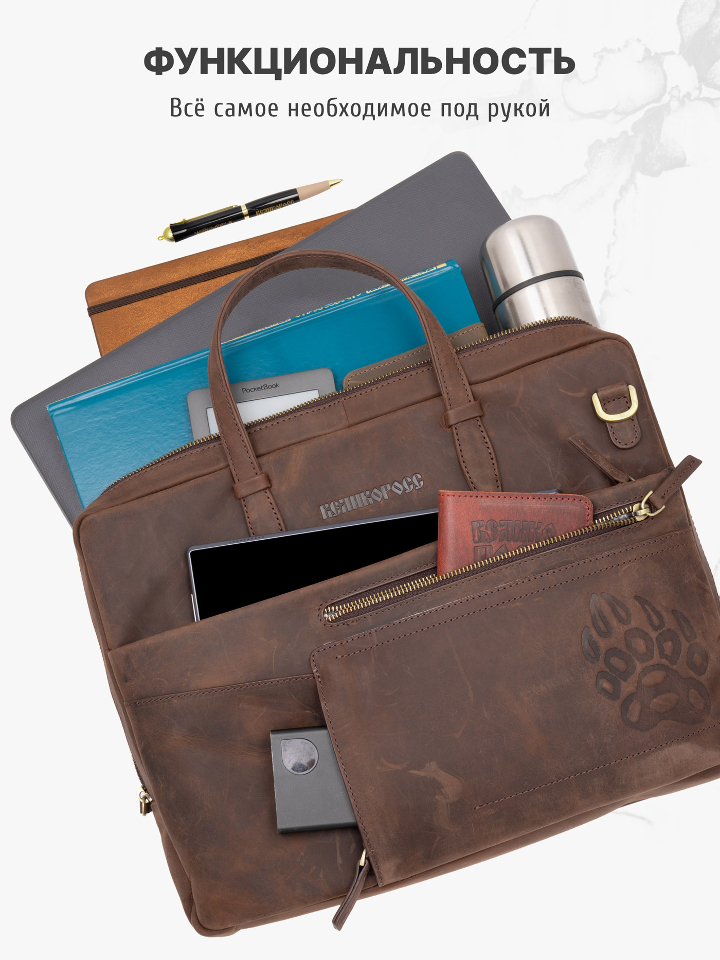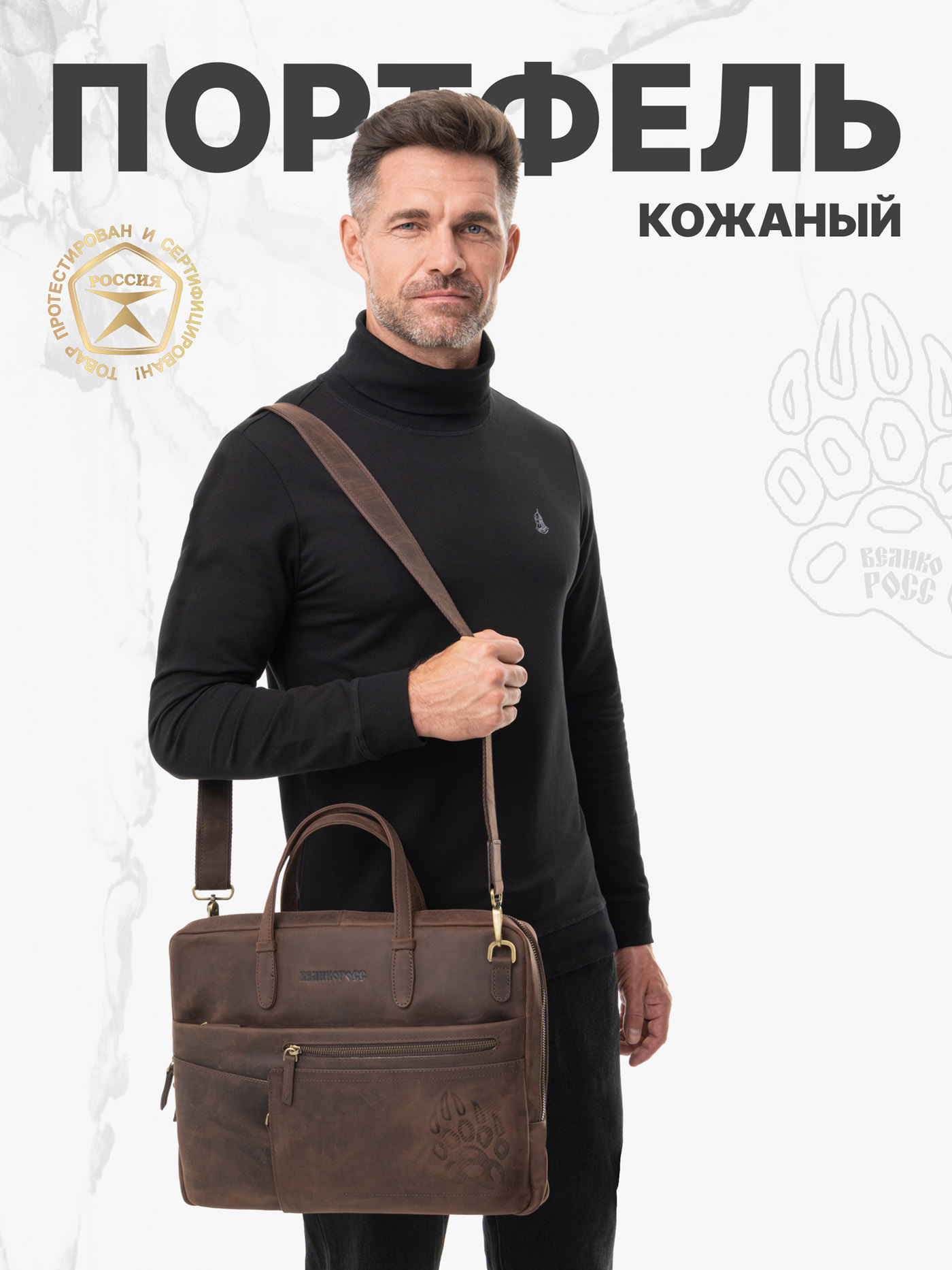 Универсальный кожаный портфель ВЕЛИКОРОСС — это изысканная классика в сочетании с абсолютным удобством и непревзойдённой функциональностью! Успешные деловые люди – и мужчины и женщины – найдут в нём всё, что они так давно искали в премиальных аксессуарах такого рода!