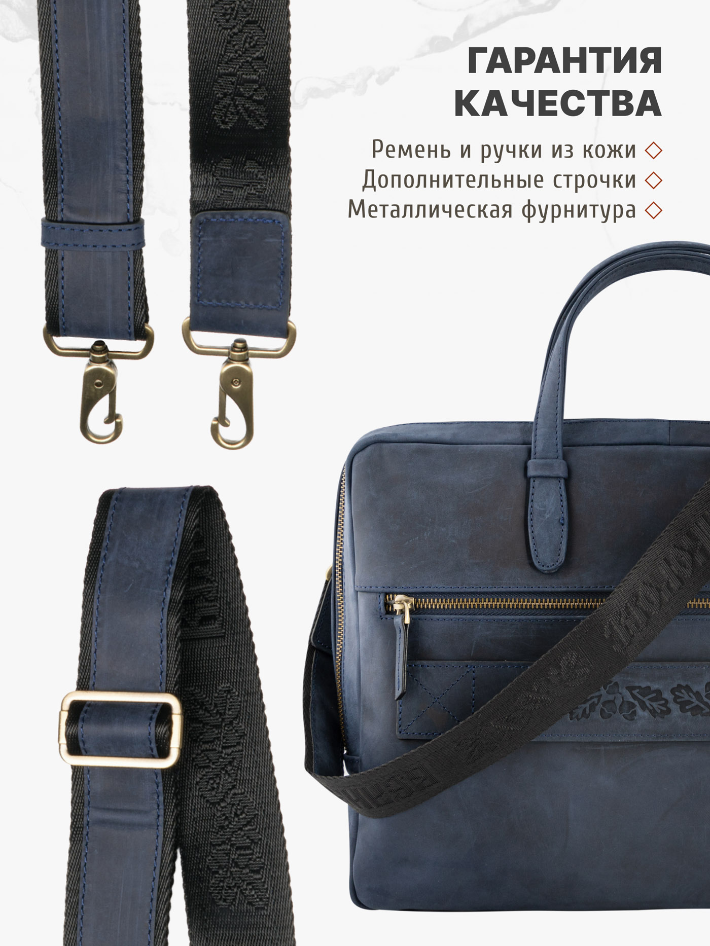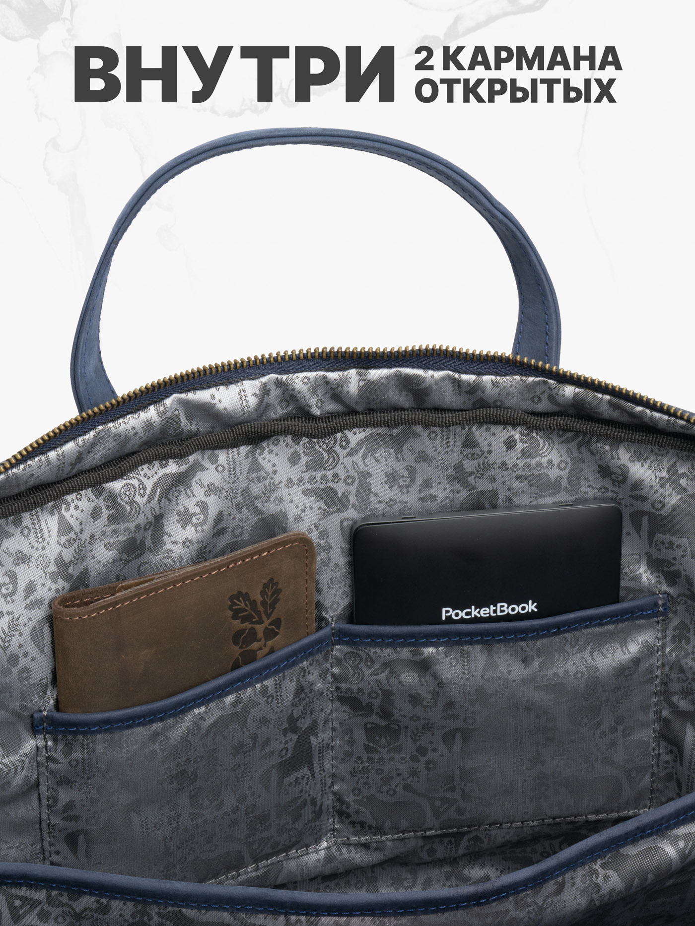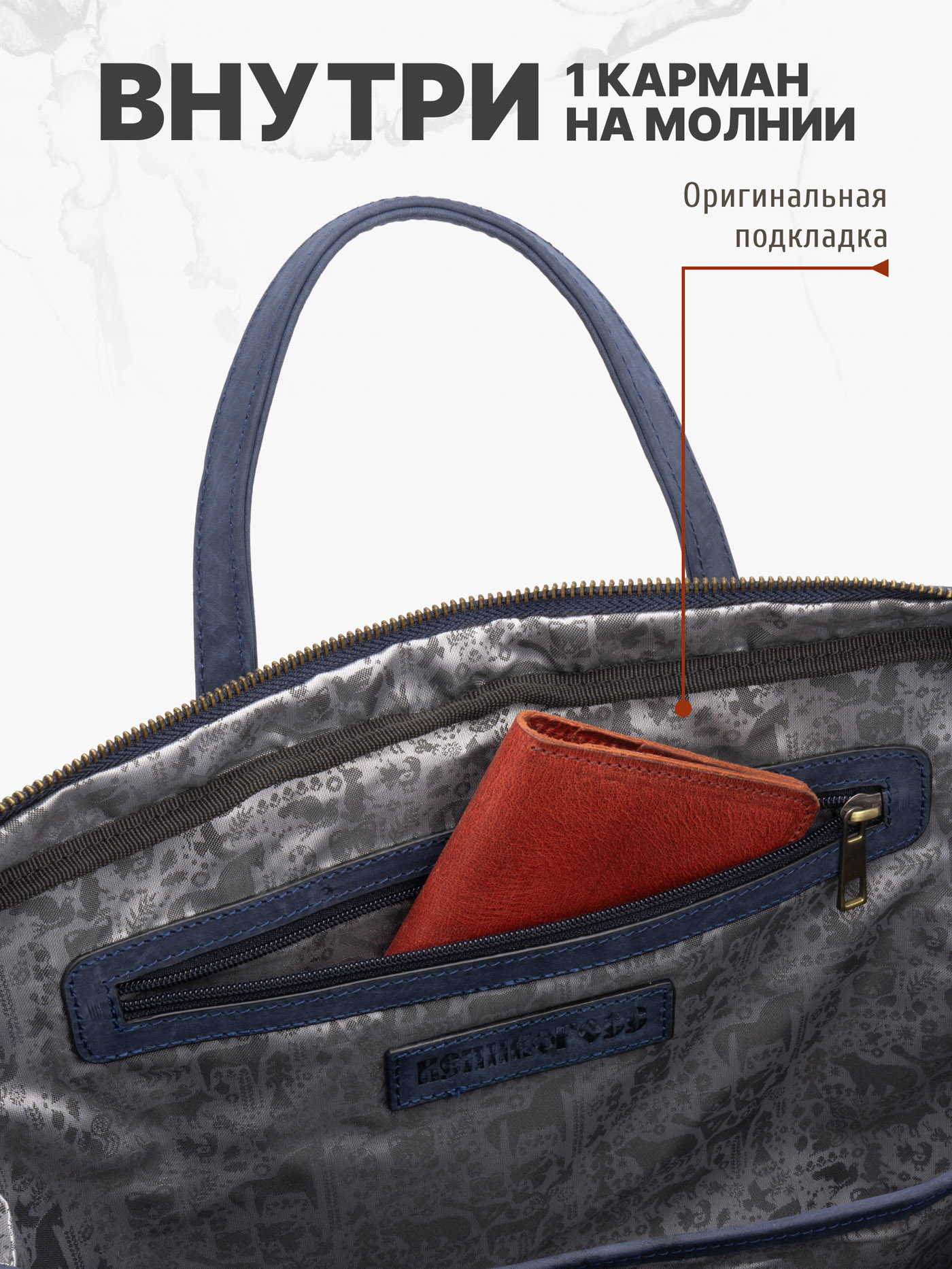 Портфель ВЕЛИКОРОСС из премиальной кожи выглядит солидно и статусно. А скромный элемент в Русском стиле — нанесённый горячим тиснением орнамент на наружном кармане — будет всегда напоминать всем вокруг о Вашей любви к Родине, о Вашей огромной внутренней Силе и уверенности в своём Правильном Выборе! А оригинальная подкладка с обитателями Русского Леса согреет Вашу душу, и заставит всех вокруг восхищаться Вашему уникальному Русскому Стилю!