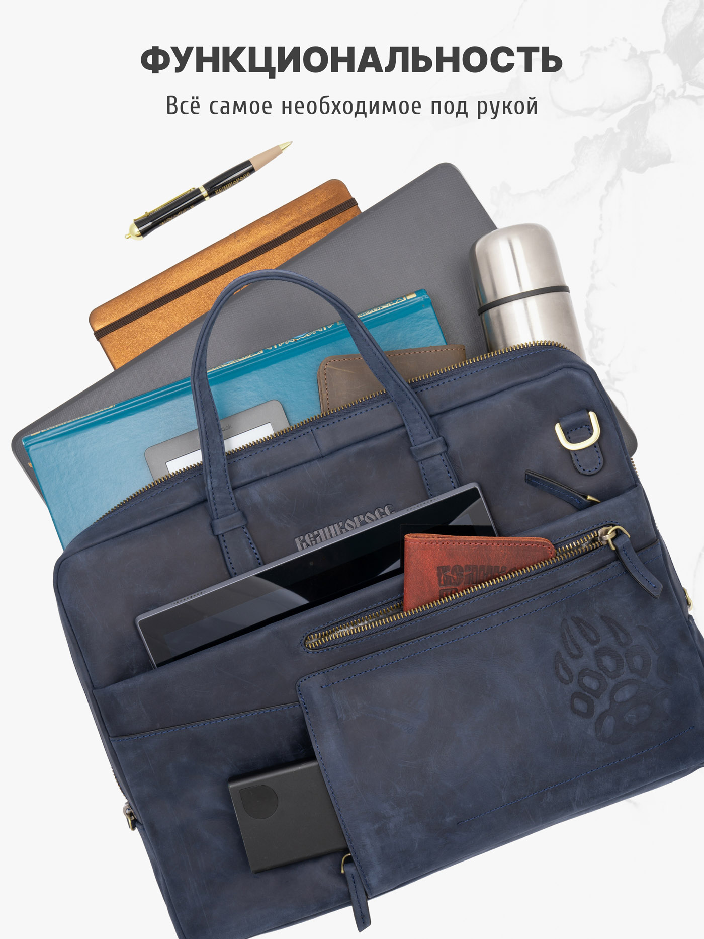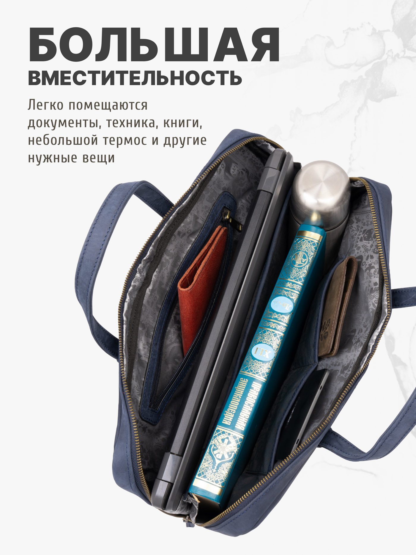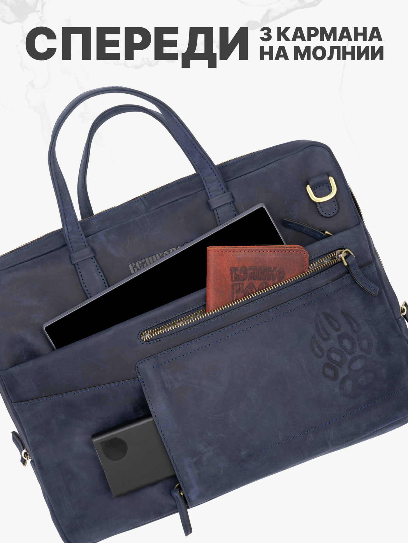 С виду компактный и стильный, этот портфель очень вместителен. В нём прекрасно поместится главное орудие современного человека — планшет или ноутбук с диагональю до 15". Также в сумке можно переносить важные документы разного формата, папки с необходимыми бумагами — отделения под надёжными замками-молниями позволят сохранить ценности в чистоте и сохранности. Также имеются удобные наружные карманы с прочным замком, в которые удобно складывать нужные вещицы — ключи, карты, гаджеты, бумажники... – они точно не выпадут и не затеряются.