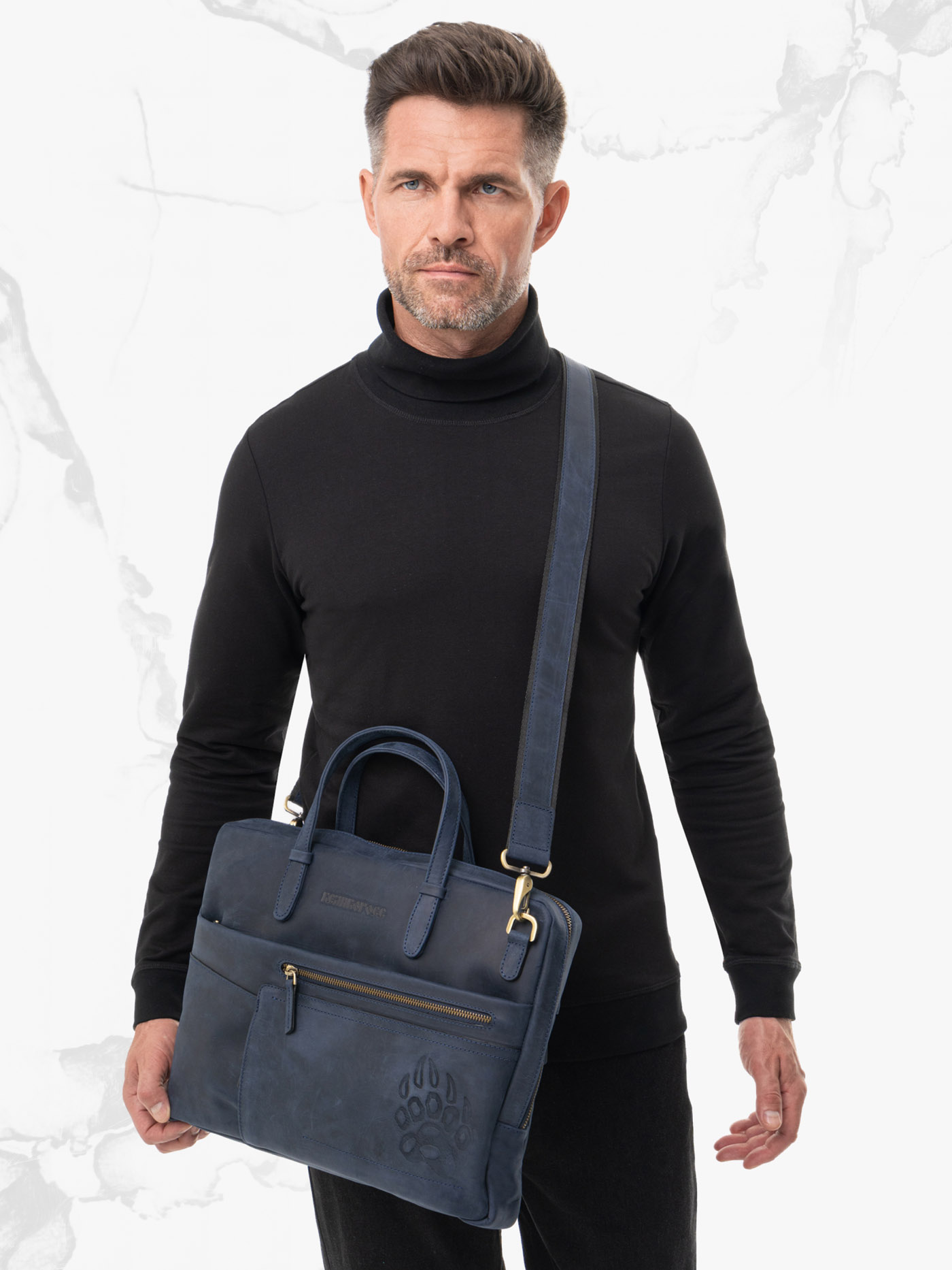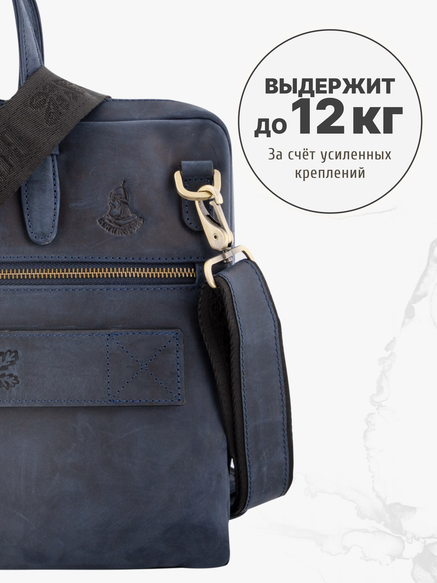 Кожаный портфель универсальный, компактный синего цвета (кожа Крейзи)
