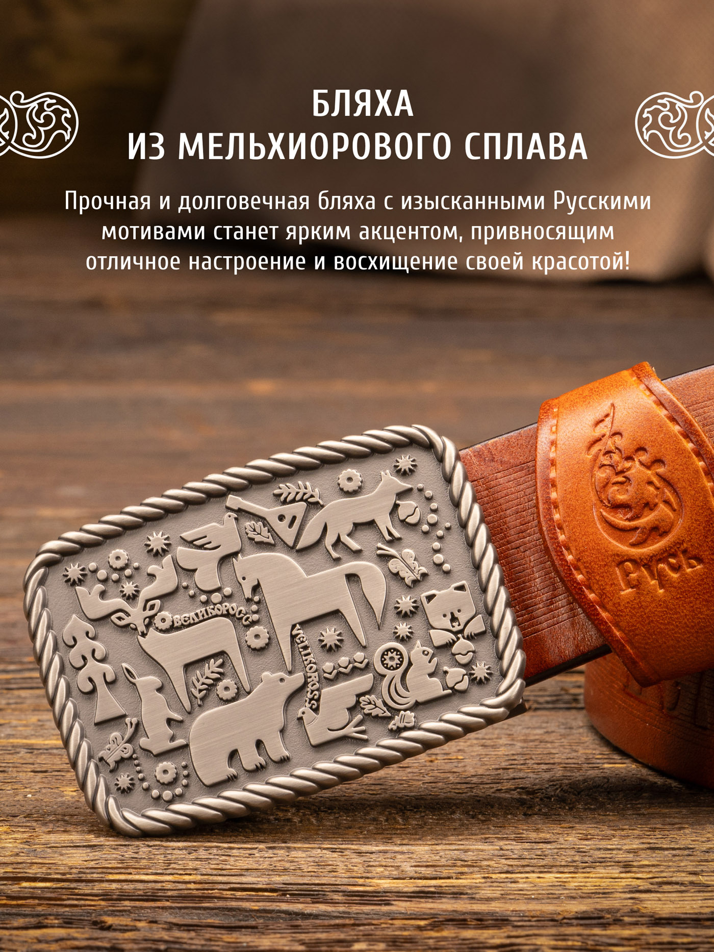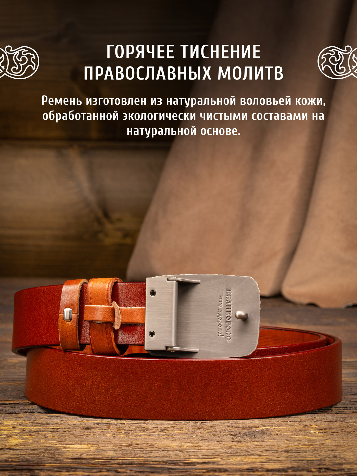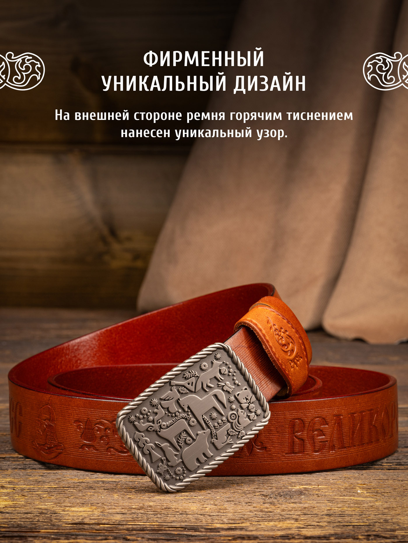 Премиальный ремень из натуральной воловьей кожи толщиной 4 мм прослужит вам десятилетиями, сохраняя первозданный вид. Изделие украшено уникальным горячим тиснением Русских орнаментов, подчёркивающих вашу принадлежность к Великой России.