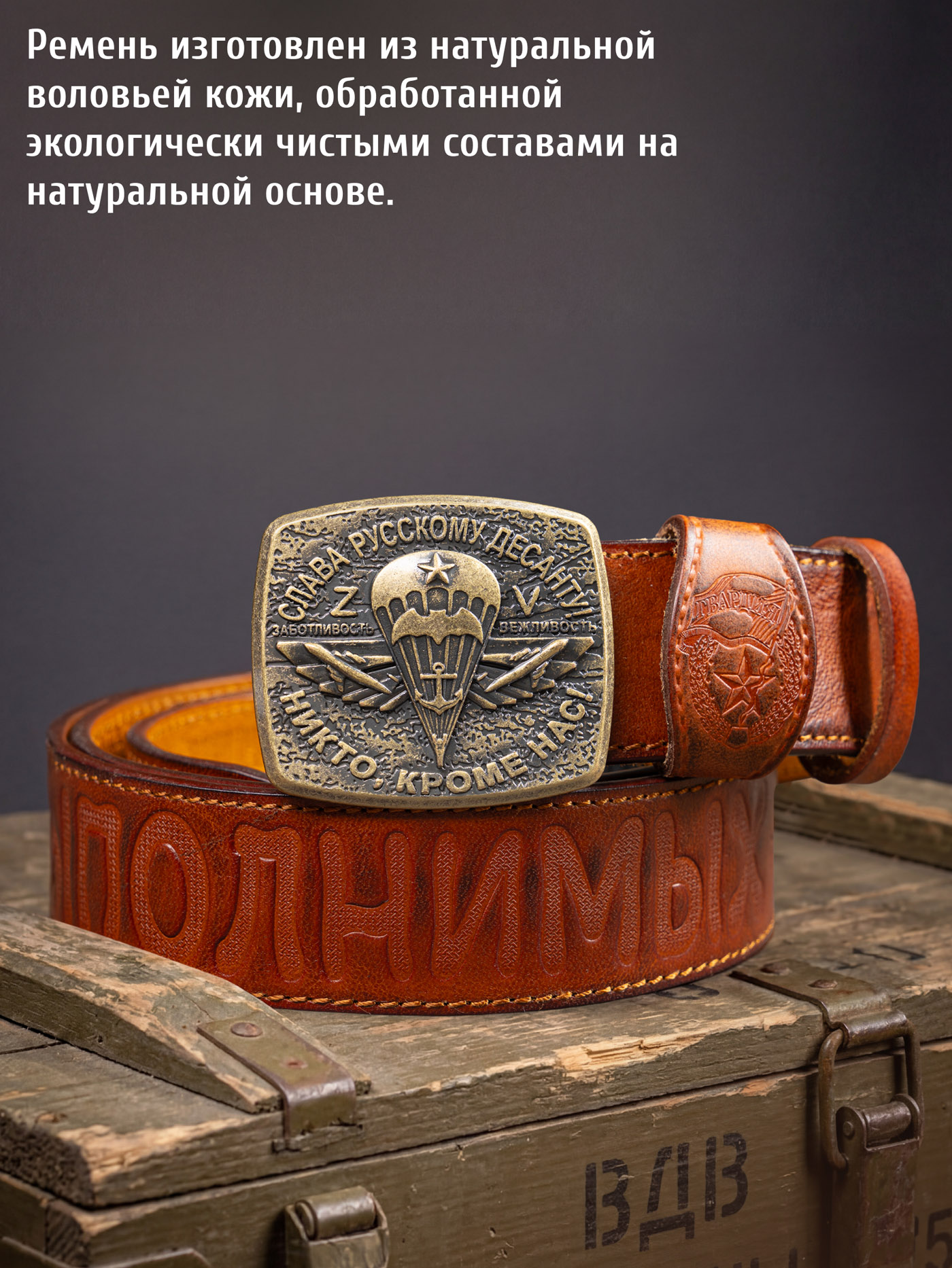 Отличный мужской ремень! Крепкая пряжка с патриотическим дизайном, мужу - десантнику ремень очень понравился. Спасибо.