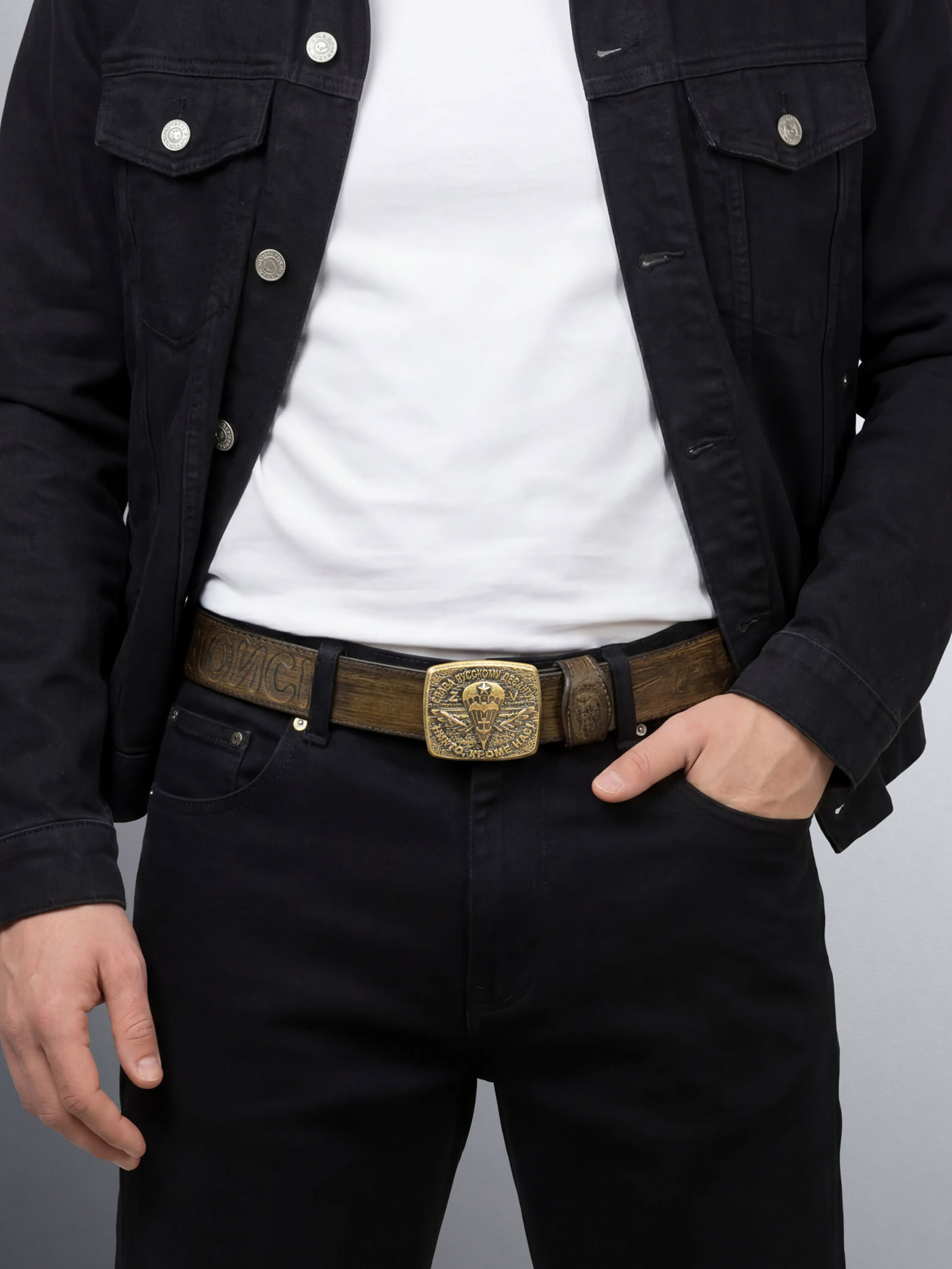 Бляха отлита мастерски, кожа эластичная не жесткая, длина ремня согласно размерной сетки.
