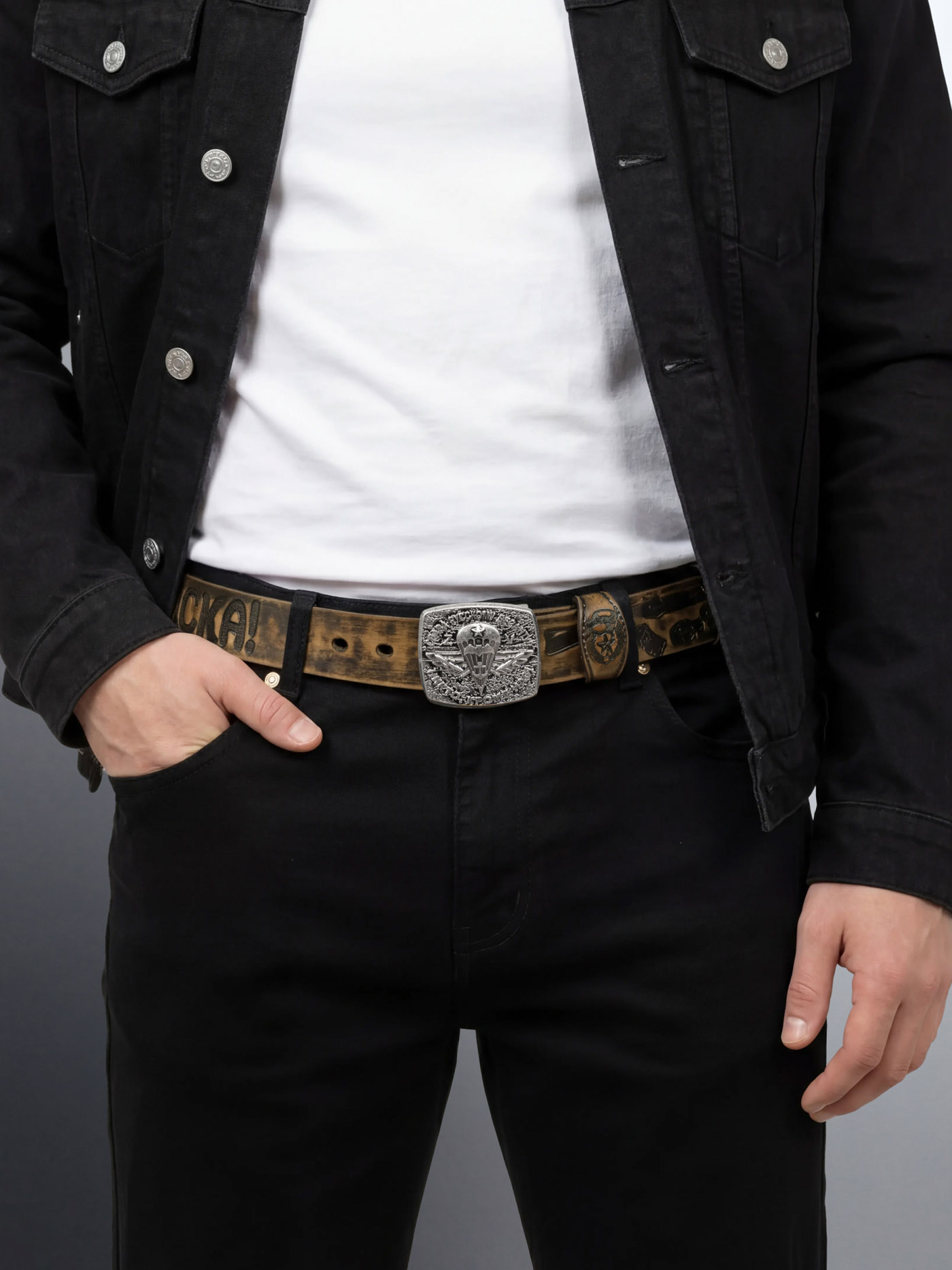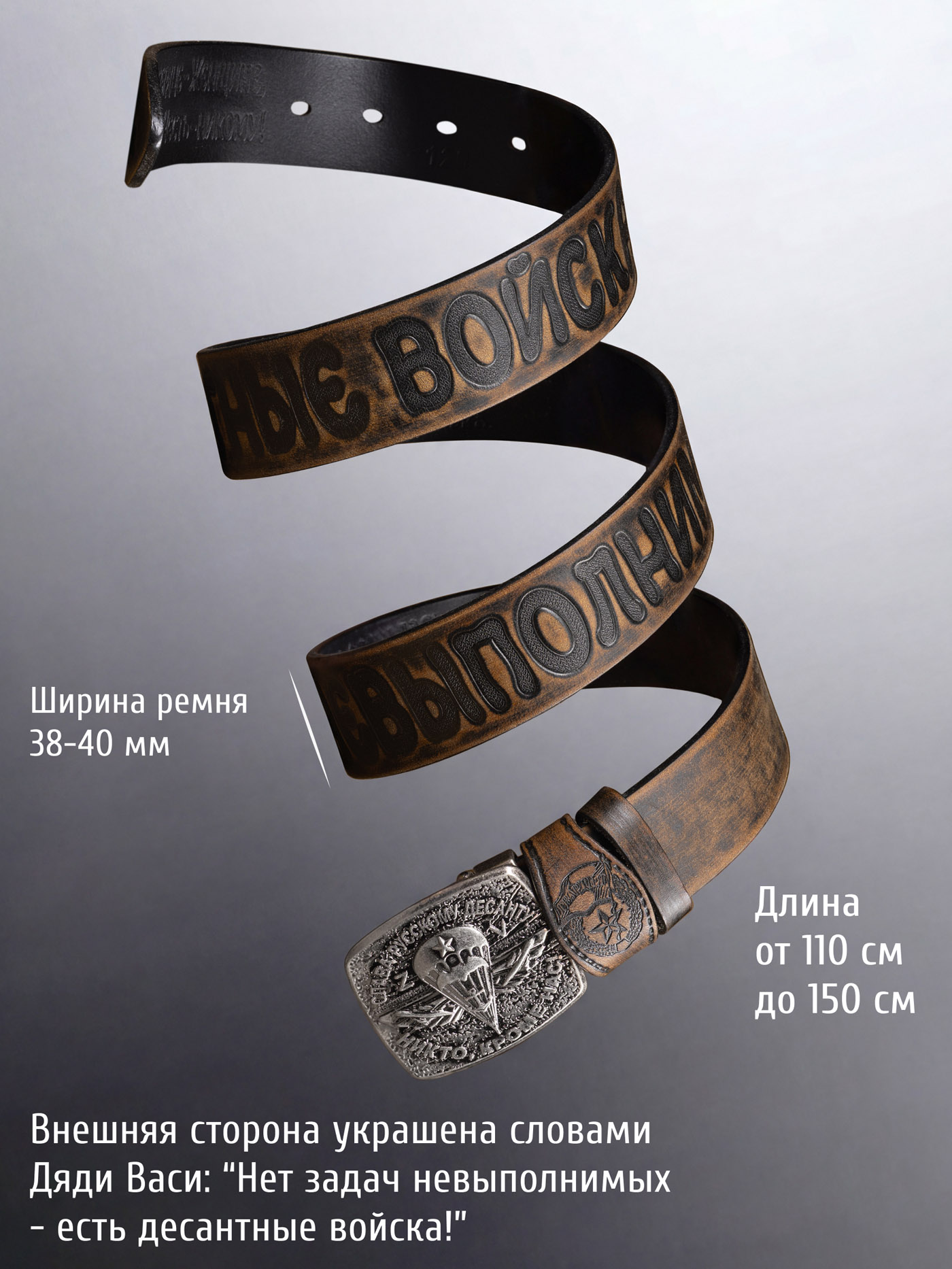 Броский ремень с нужными словами! Пряжка отлита профессионально радует глаз, безмерно рад покупки.