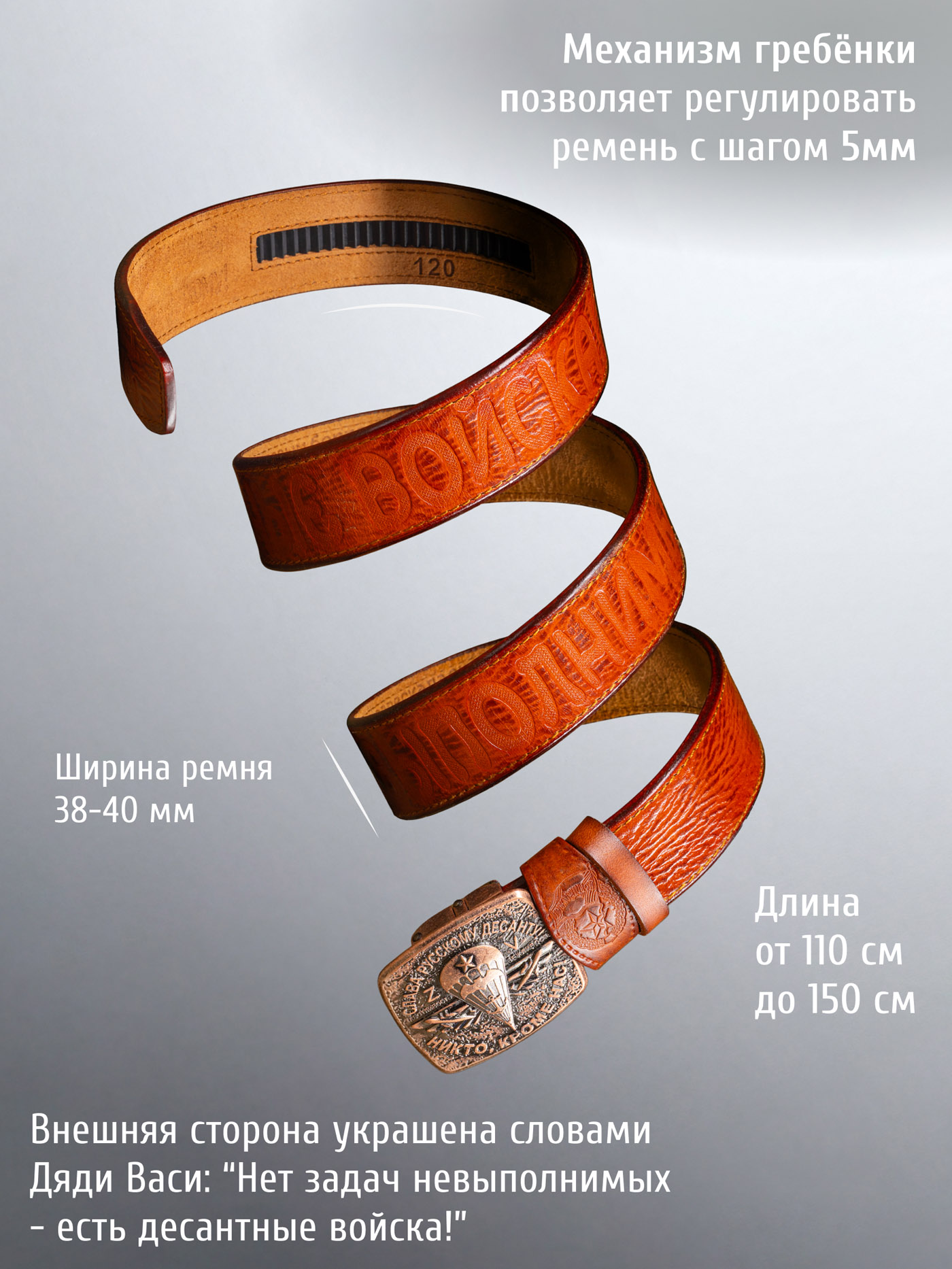 Реально ремешок для настоящих мужиков! Бляха отлита добротно, патриотично, механизм держит хорошо. Советую всем!