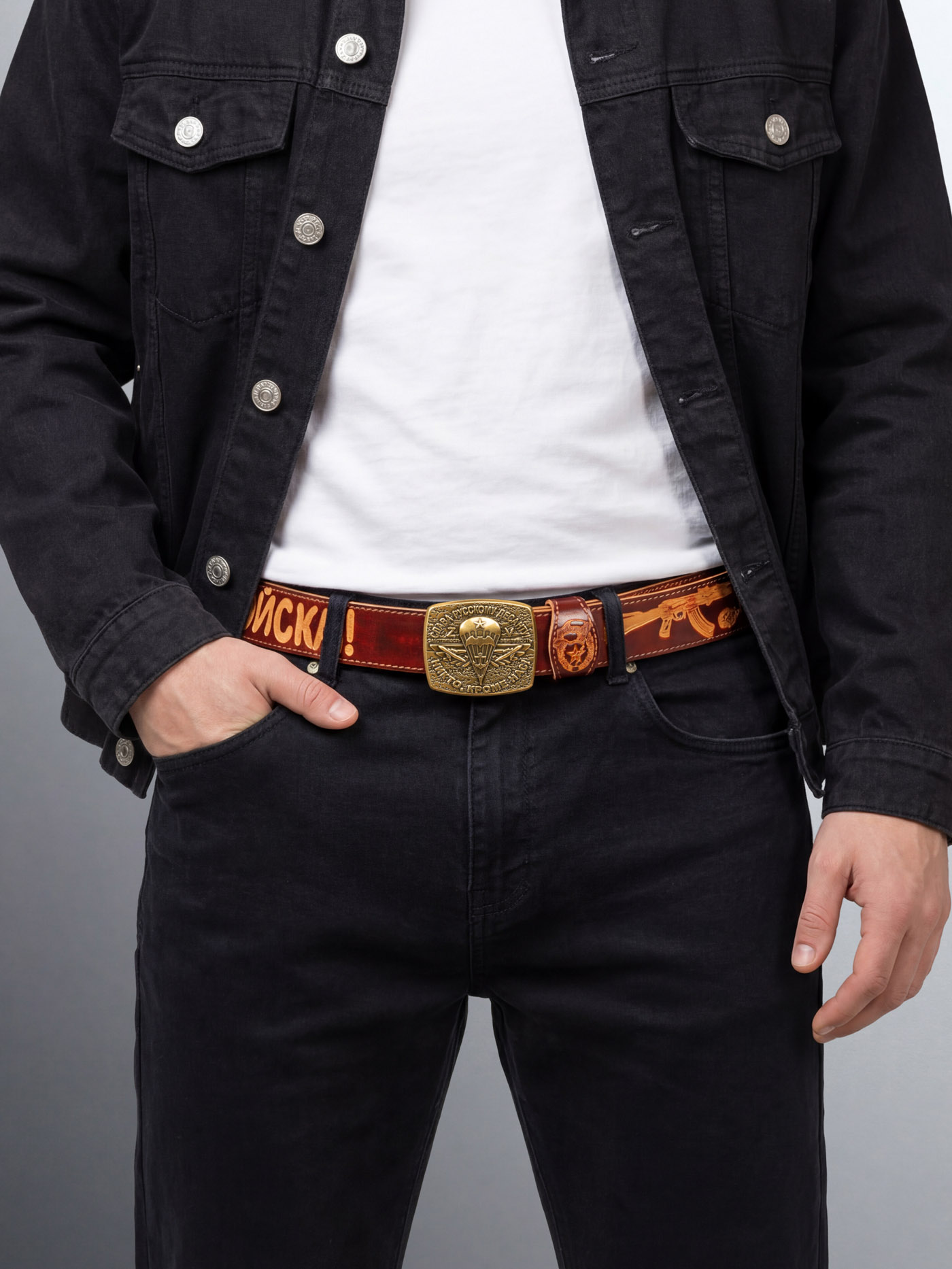 Муж сказал - с подарком угодила, все идеально и патриотично, ремень сделан как по заказу.