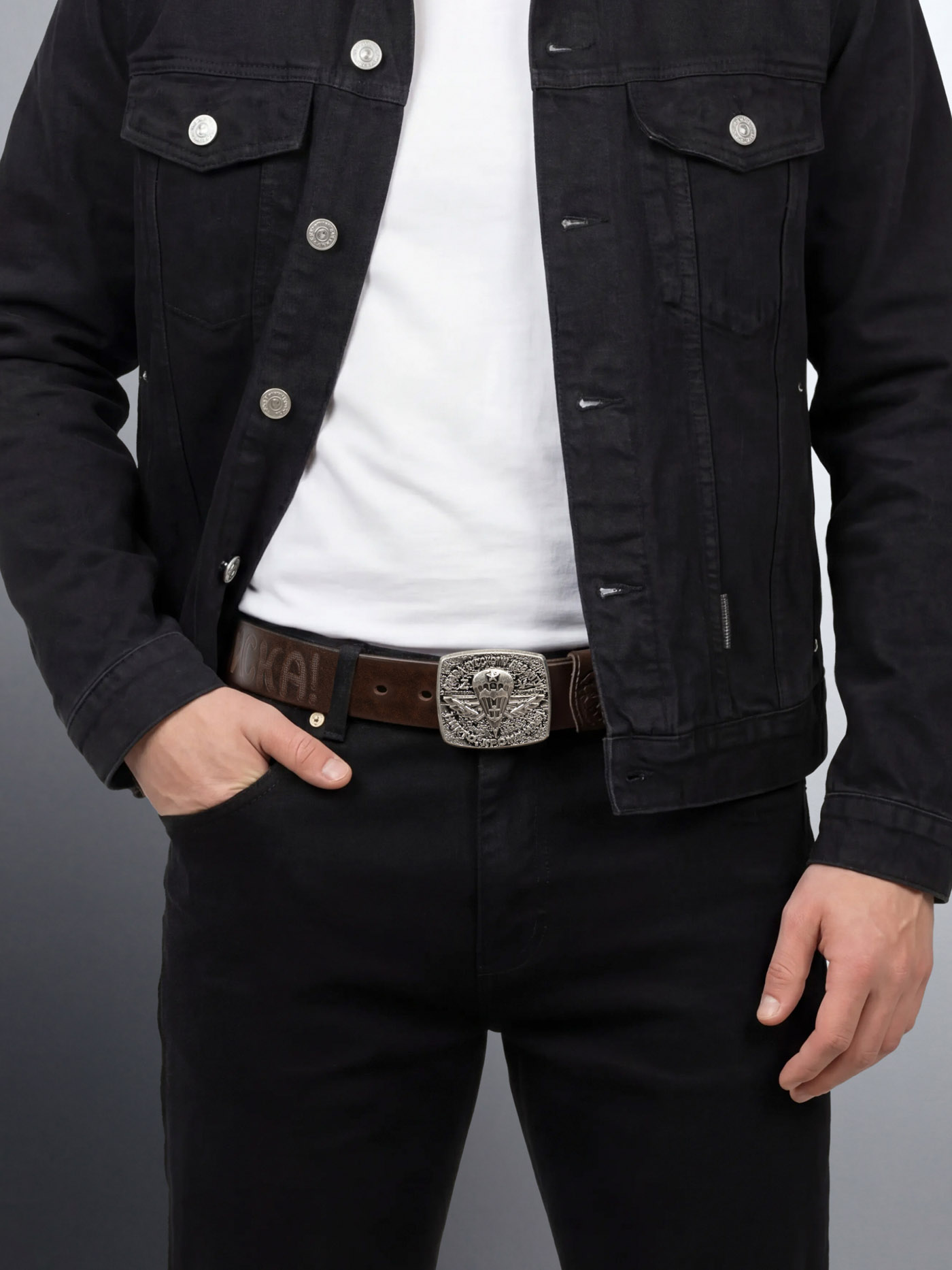 Ремень выглядит очень достойно! Блях придает ремню неповторимость. Никто кроме нас! Чёткий лозунг.