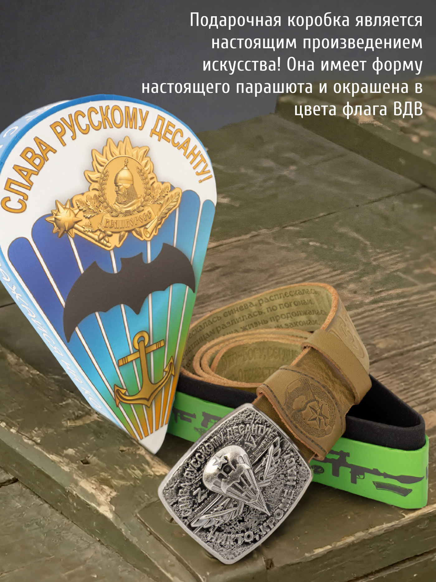 Кожа милейшего качества, красивая пряжка с атрибутом ВДВ застежка надежная, муж благодарен за нужней подарок.