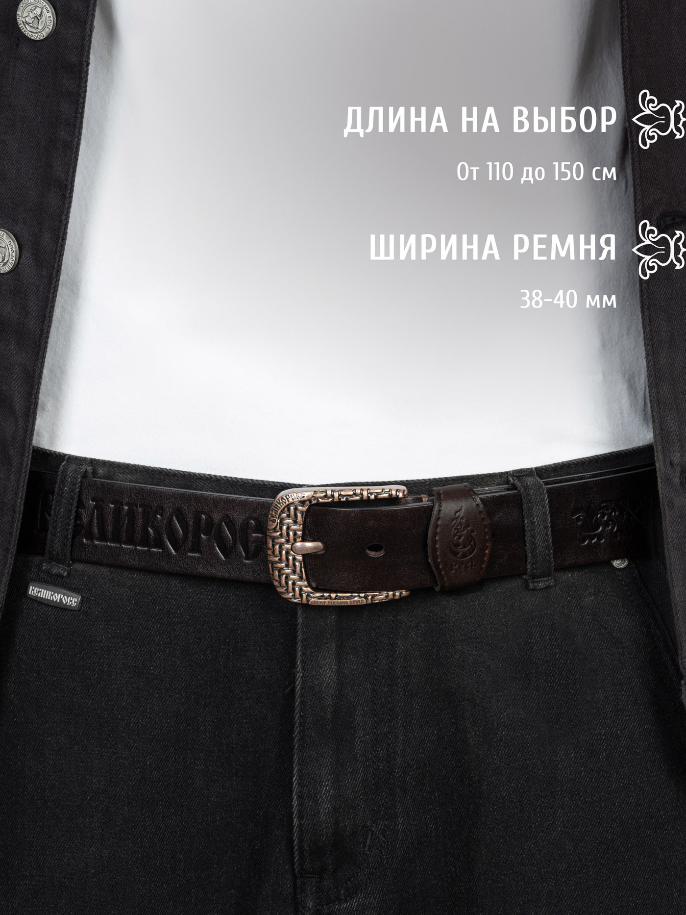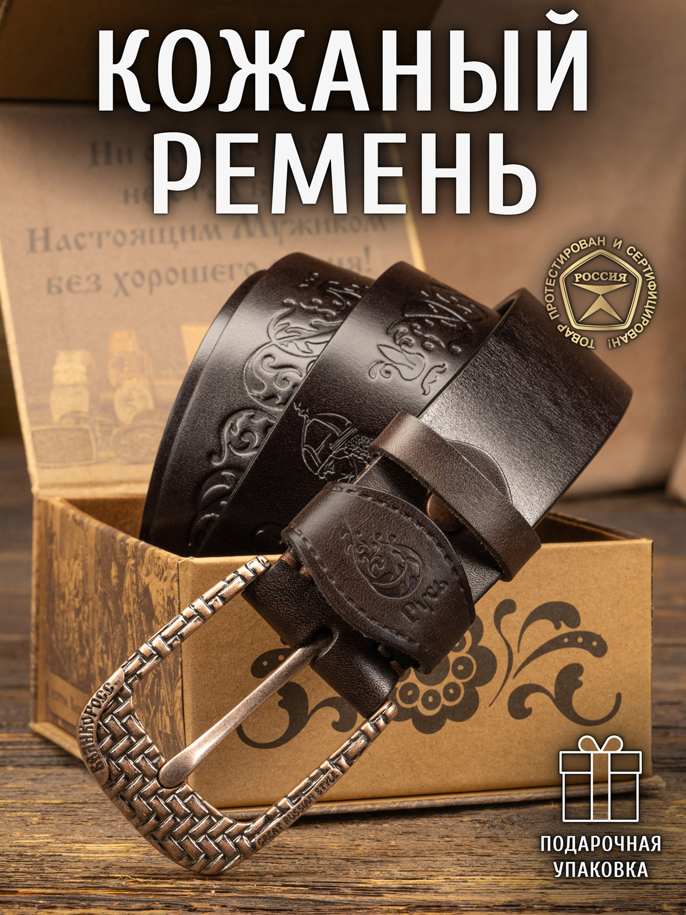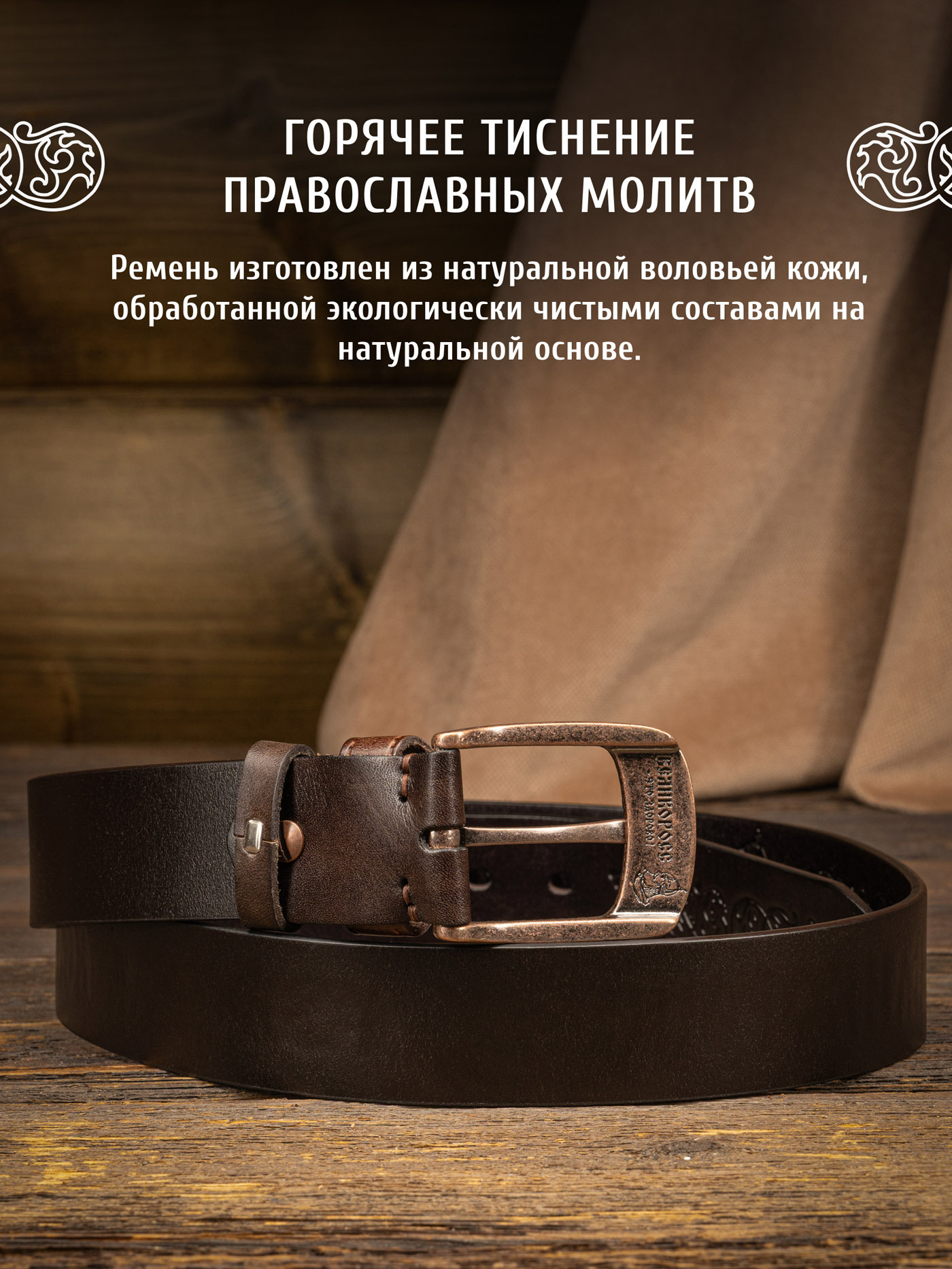 Премиальный ремень из натуральной воловьей кожи толщиной 4 мм прослужит вам десятилетиями, сохраняя первозданный вид. Изделие украшено уникальным горячим тиснением Русских орнаментов, подчёркивающих вашу принадлежность к Великой России.