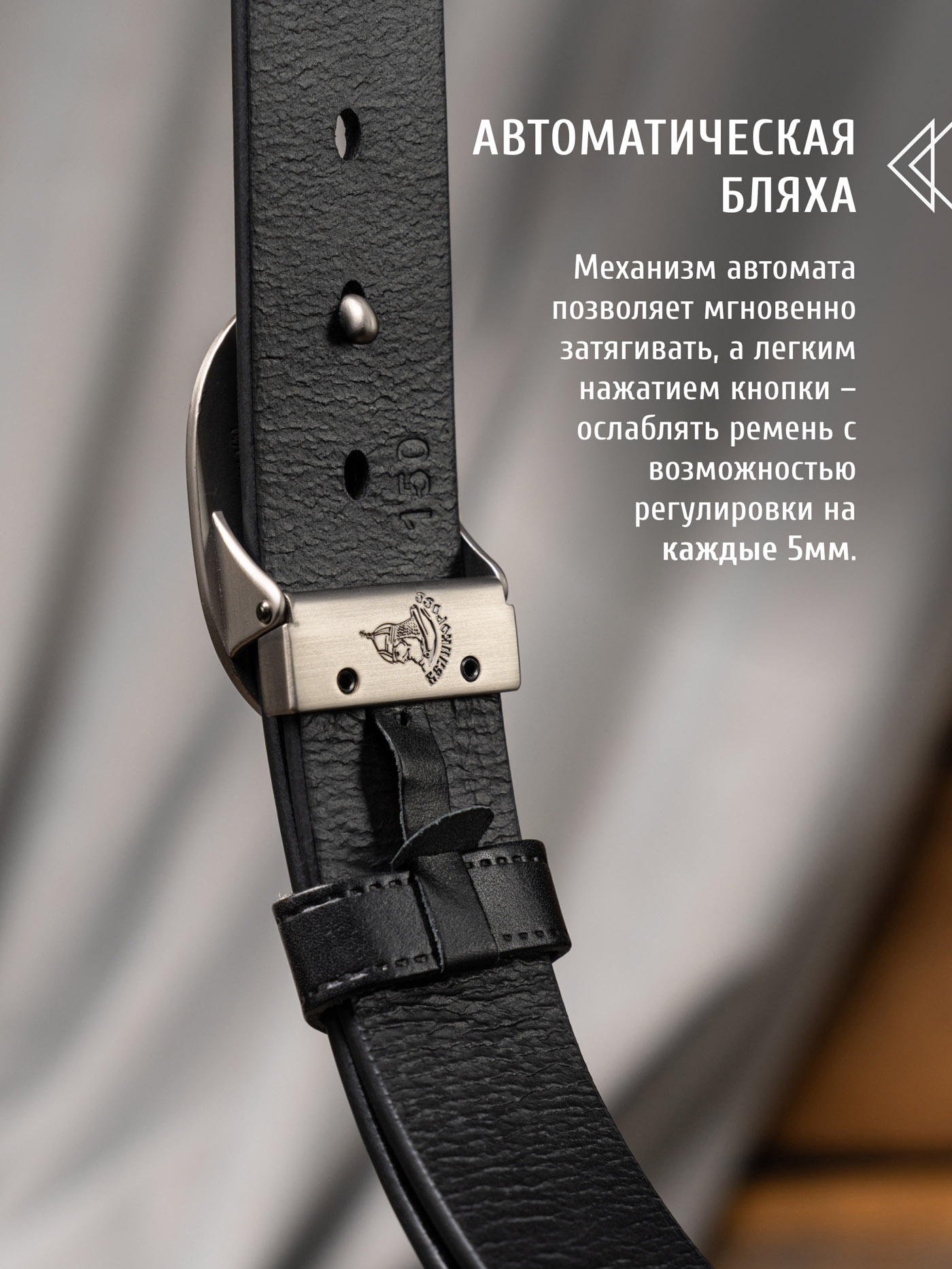Ремень толстоват, но натуральная кожа. Самозатягивающийся. Застёжка снимается, можно поменять на обычную и сделать дырки