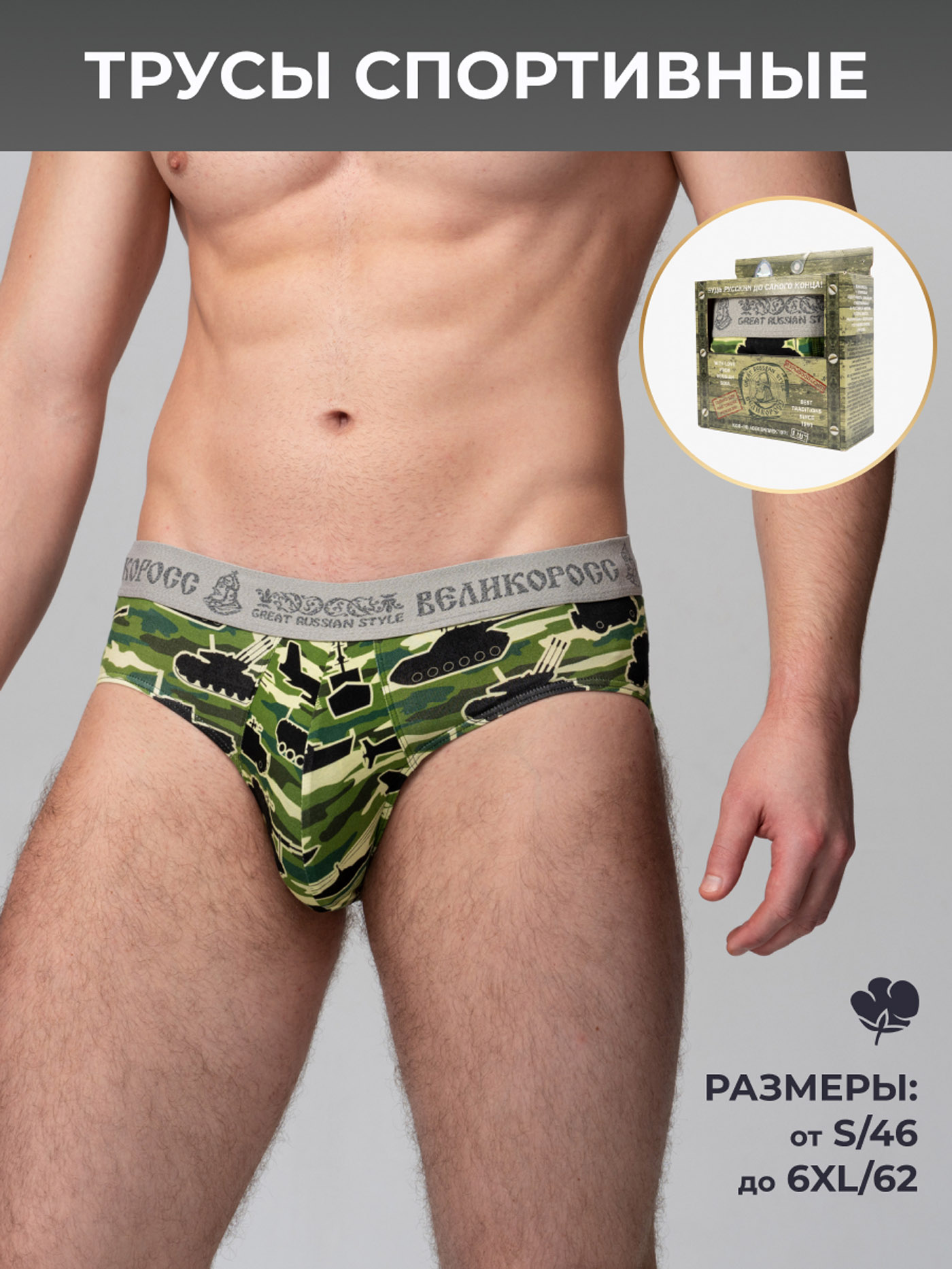 Клевые трусы, армейский принт выглядит авторитетно. Материал приятный к телу.