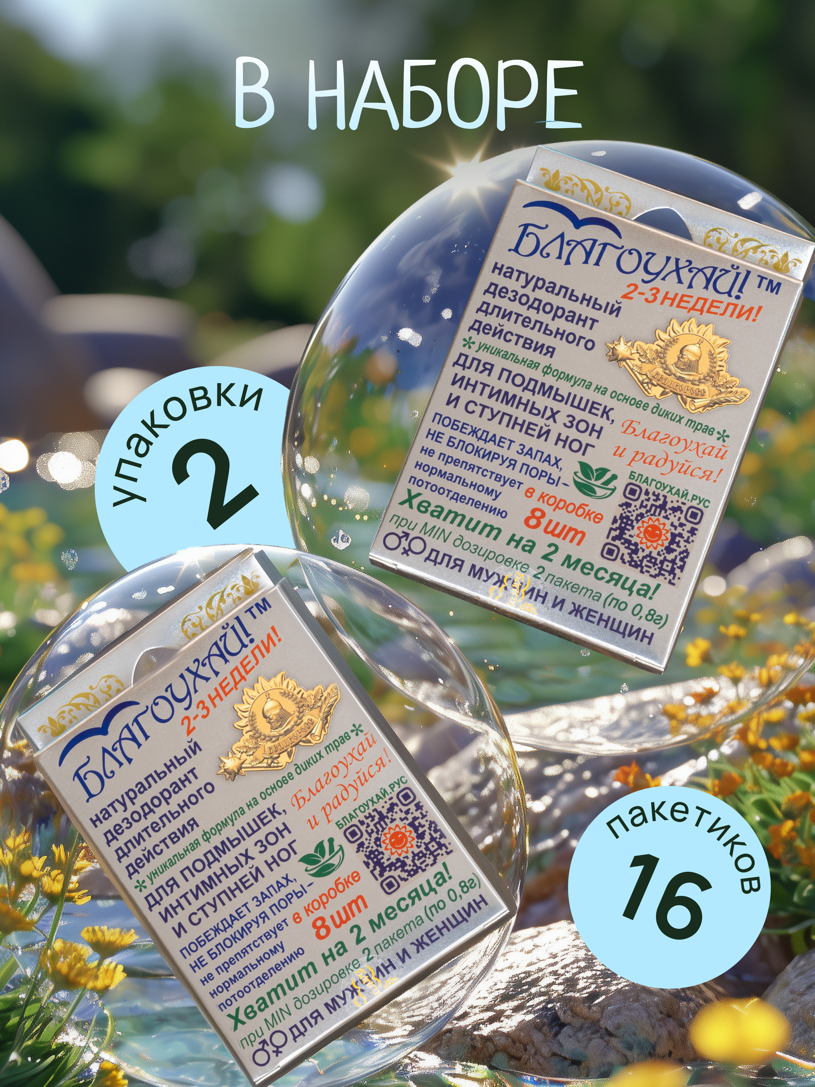 Набор натурального дезодоранта «Благоухай», 16 шт.