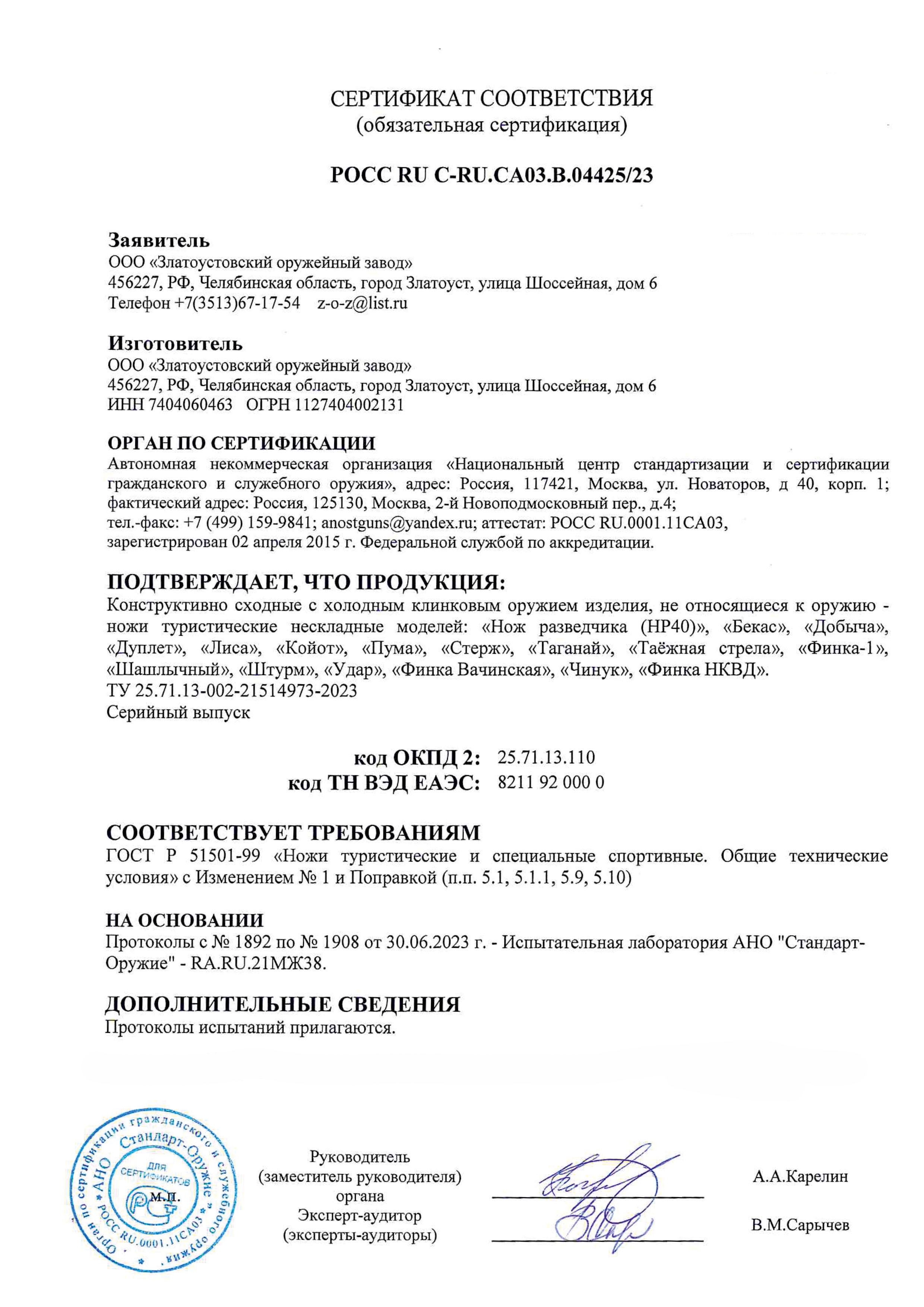 | Толщина клинка, мм | 2,2 |