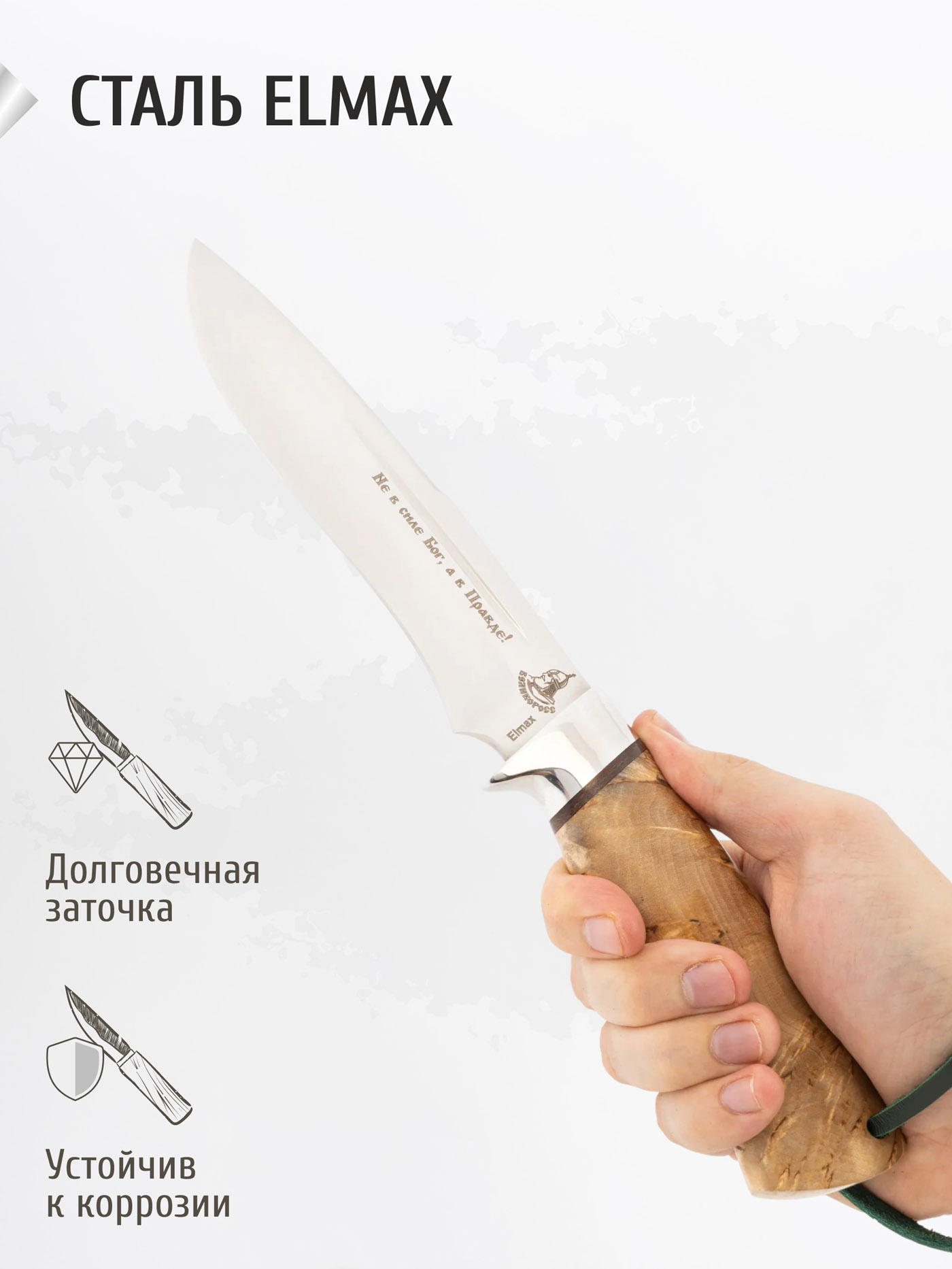 Спасибо Великоросс за цивильный товар! Муж довольный покупкой, нож постоянно при нем, симпатичная рукоятка да и сам нож очень компактный, прекрасная гарда - рука не соскользнёт. Советую к покупке)))