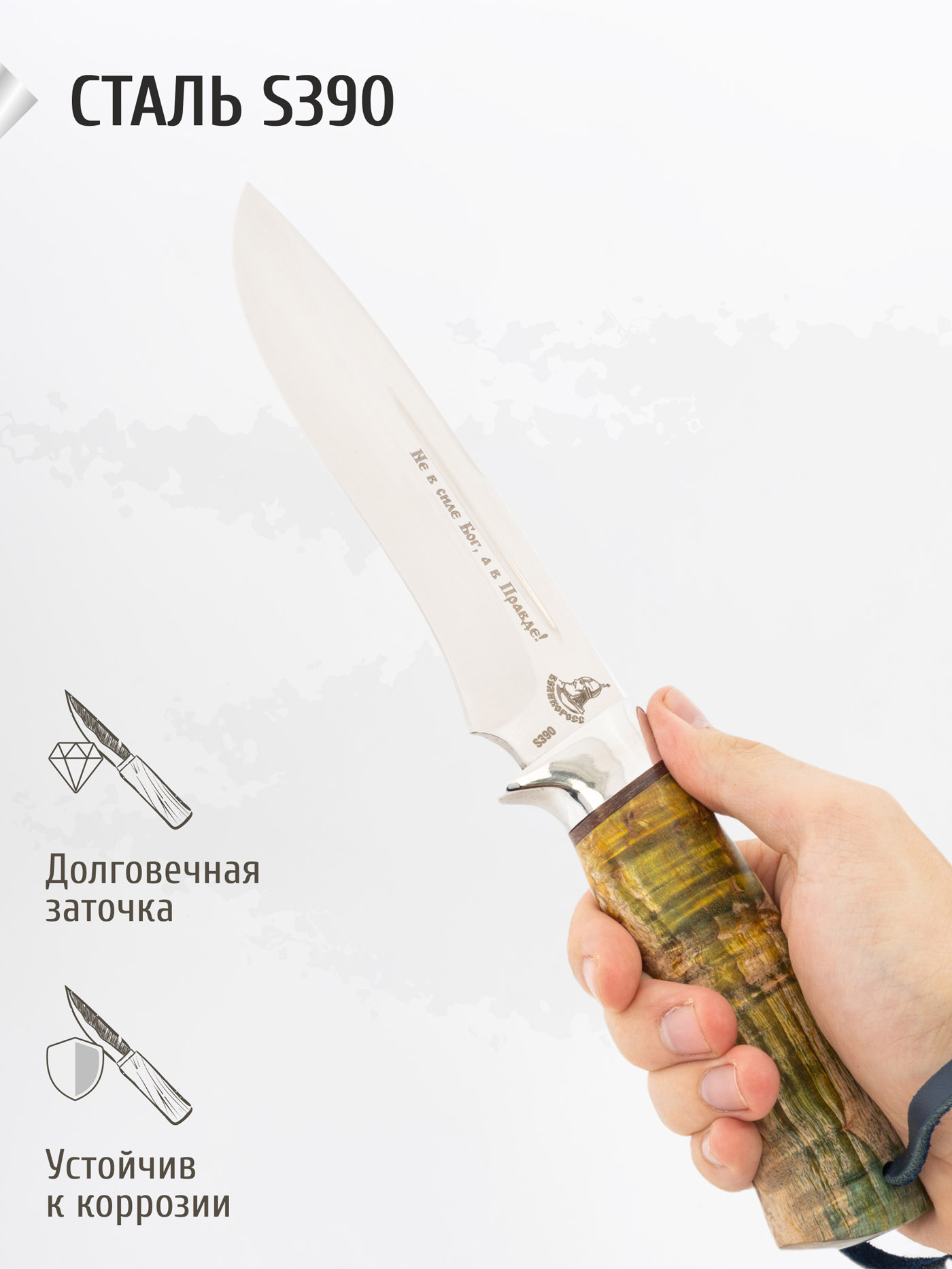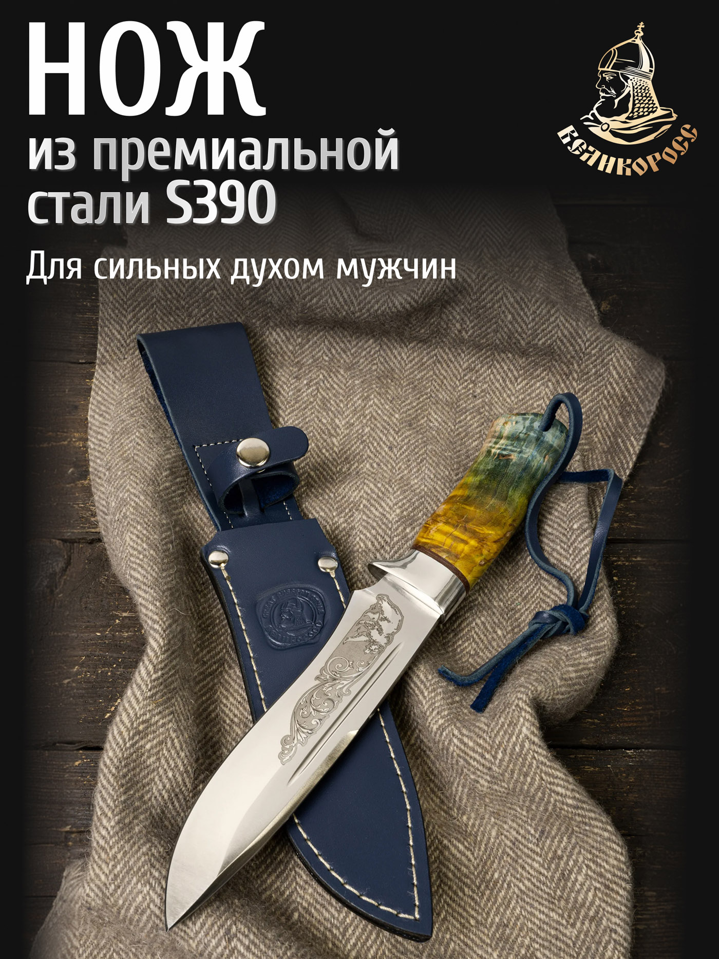 Добротный нож, удобный хват, изготовлен с вкусом, надежный, плотный и качественно прошитый чехол. Рекомендую!