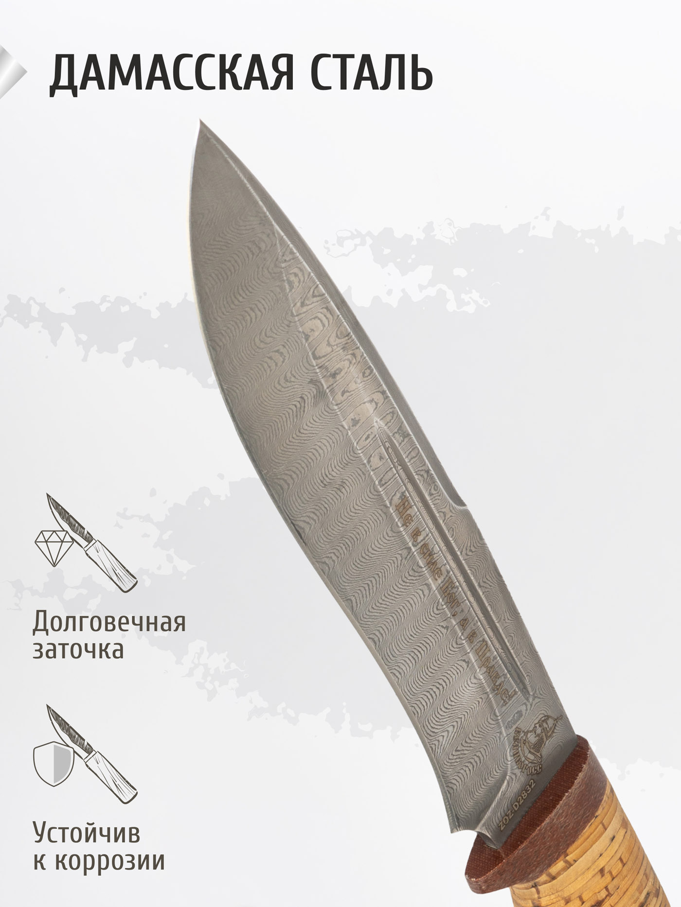 Нож "Беркут-Великоросс" (сталь дамасская береста/текст.)