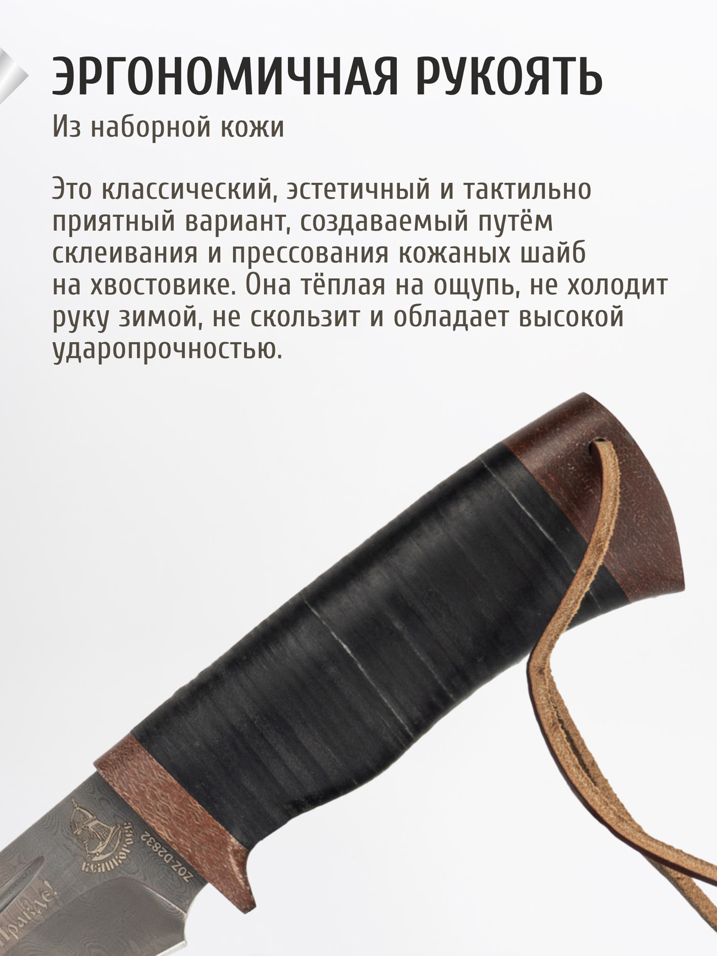 В моей руке лежит как влитой, кожаная ручка не скользит, лезвие ножа заточено в бритву.
