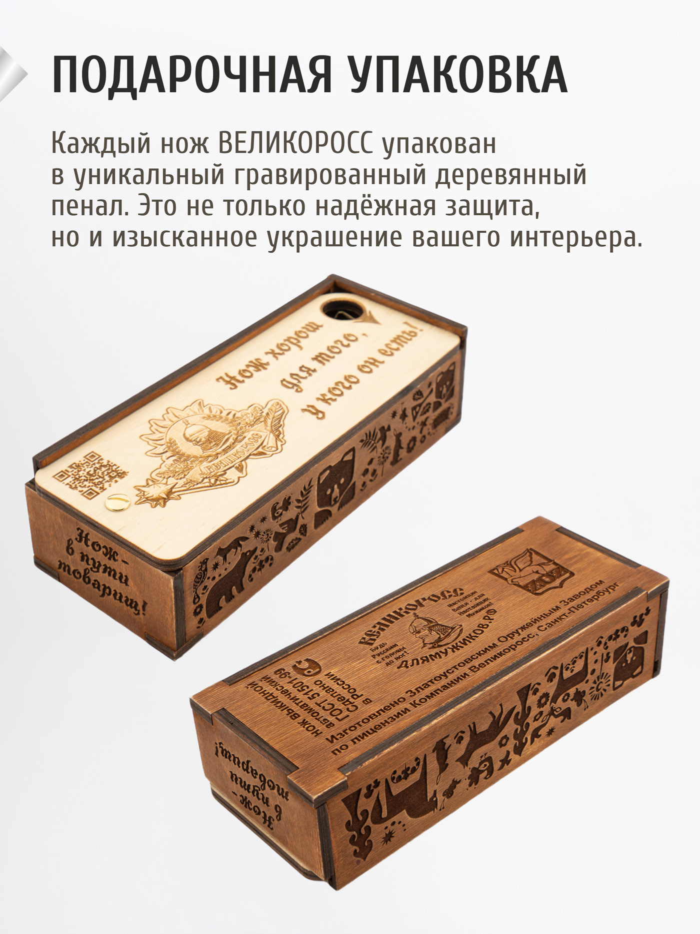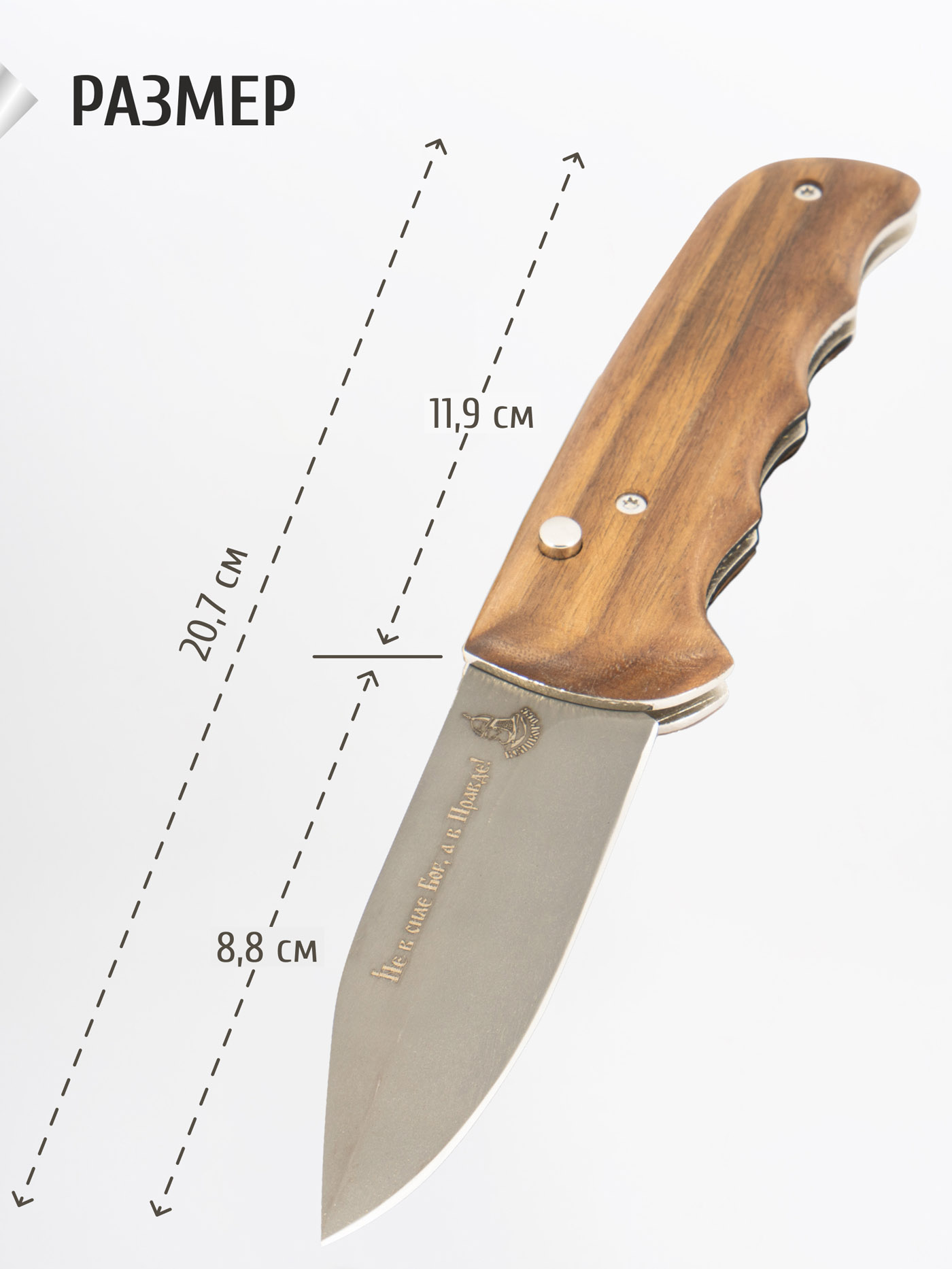 Очень удобный складной нож - автомат, четко и надежно лежится в руку, на лезвии ножа красивая гравировка с логотипом ВЕЛИКОРОСС! Рекомендую к приобретению!)