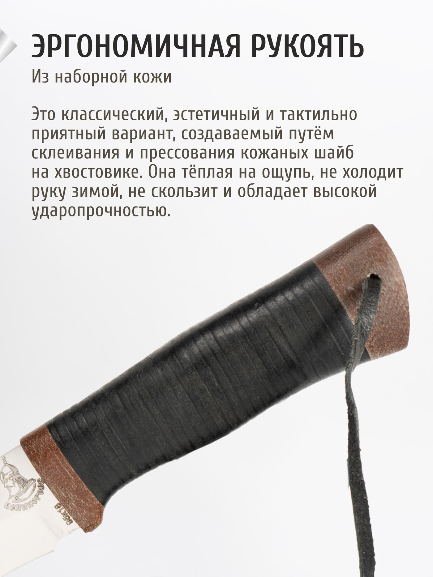 Нож просто картинка! Ручка из приятной на ощупь кожи в руке лежит безупречно. Благодарю Великоросс за качественный товар!!!