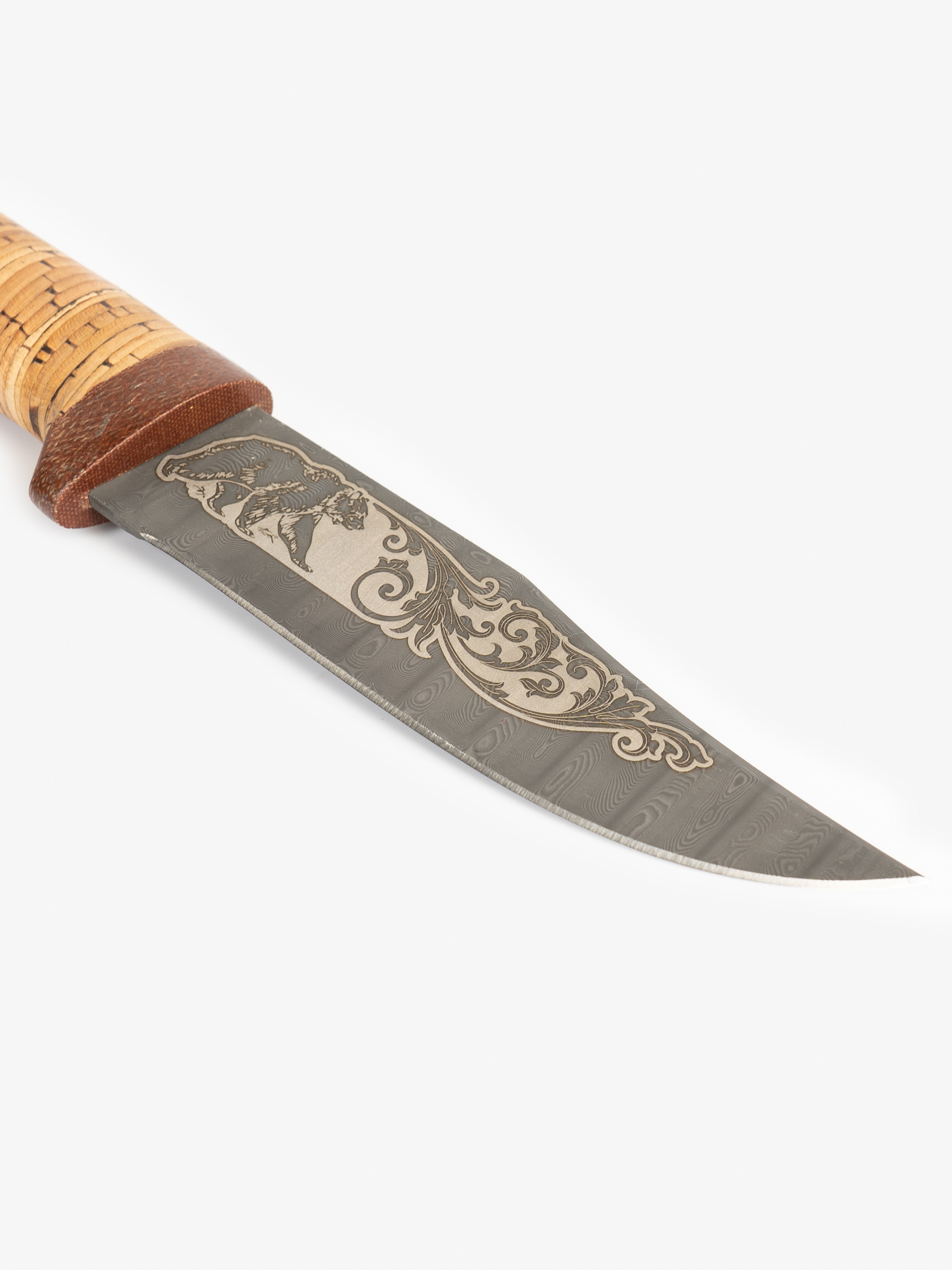 Нож "Клычок-Великоросс" (сталь дамасская, береста/текст.)