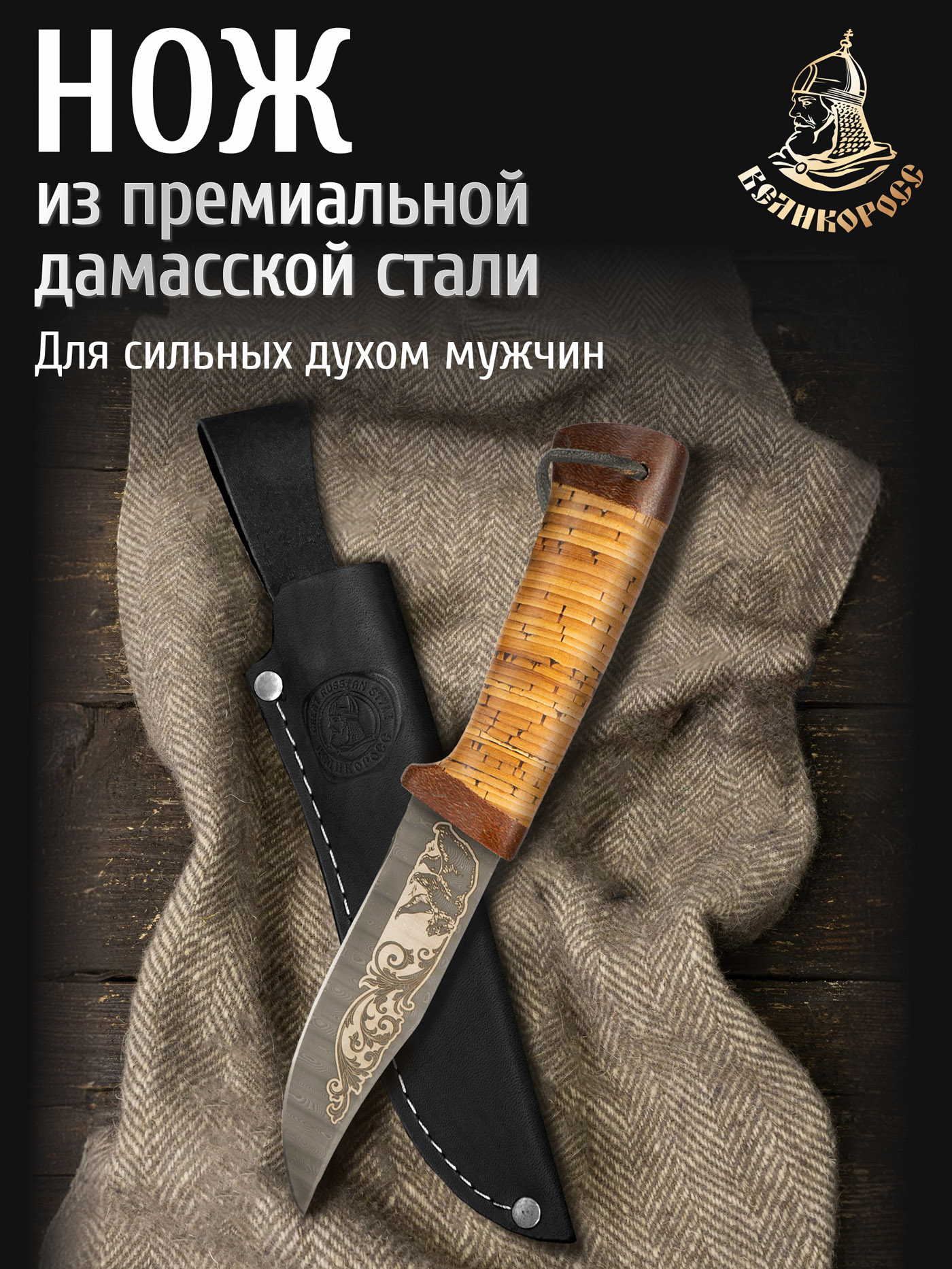 Нож "Клычок-Великоросс" (сталь дамасская, береста/текст.)