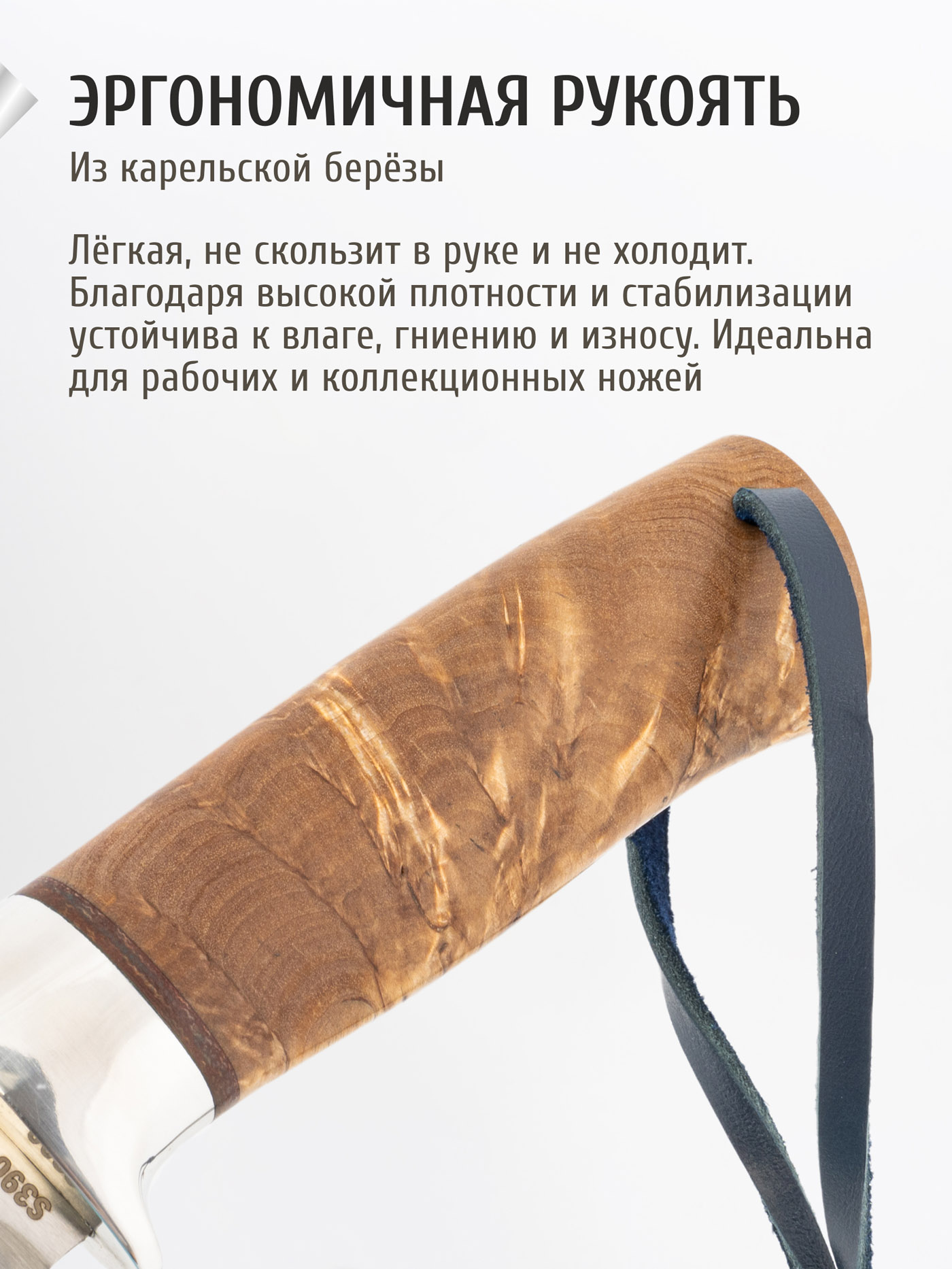 Весьма достойный нож, удобная ручка в руке лежит как влитой, красивый надежный чехол. Рекомендую!