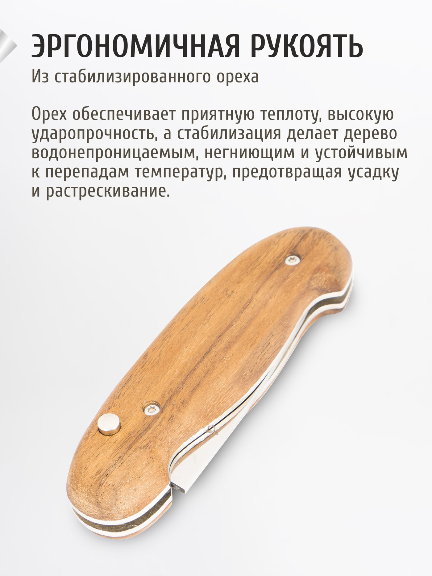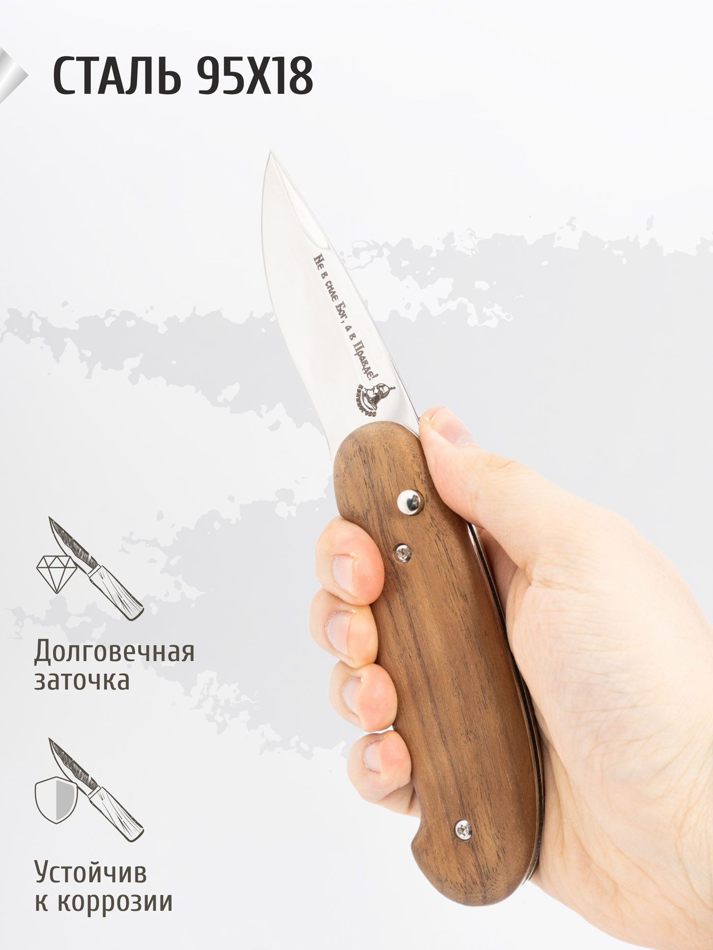Нож практичной формы, рукоятка из добротного ореха, на клинке гравировка "Медведь" просто супер! Рекомендую!