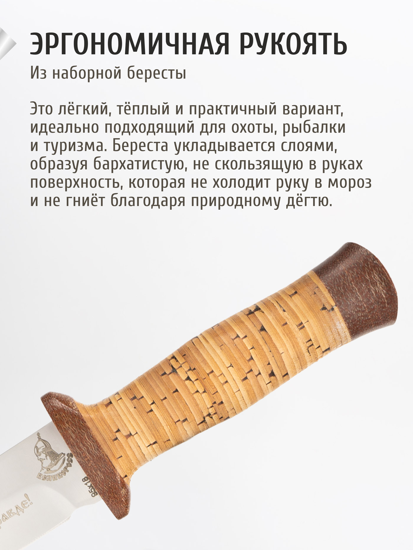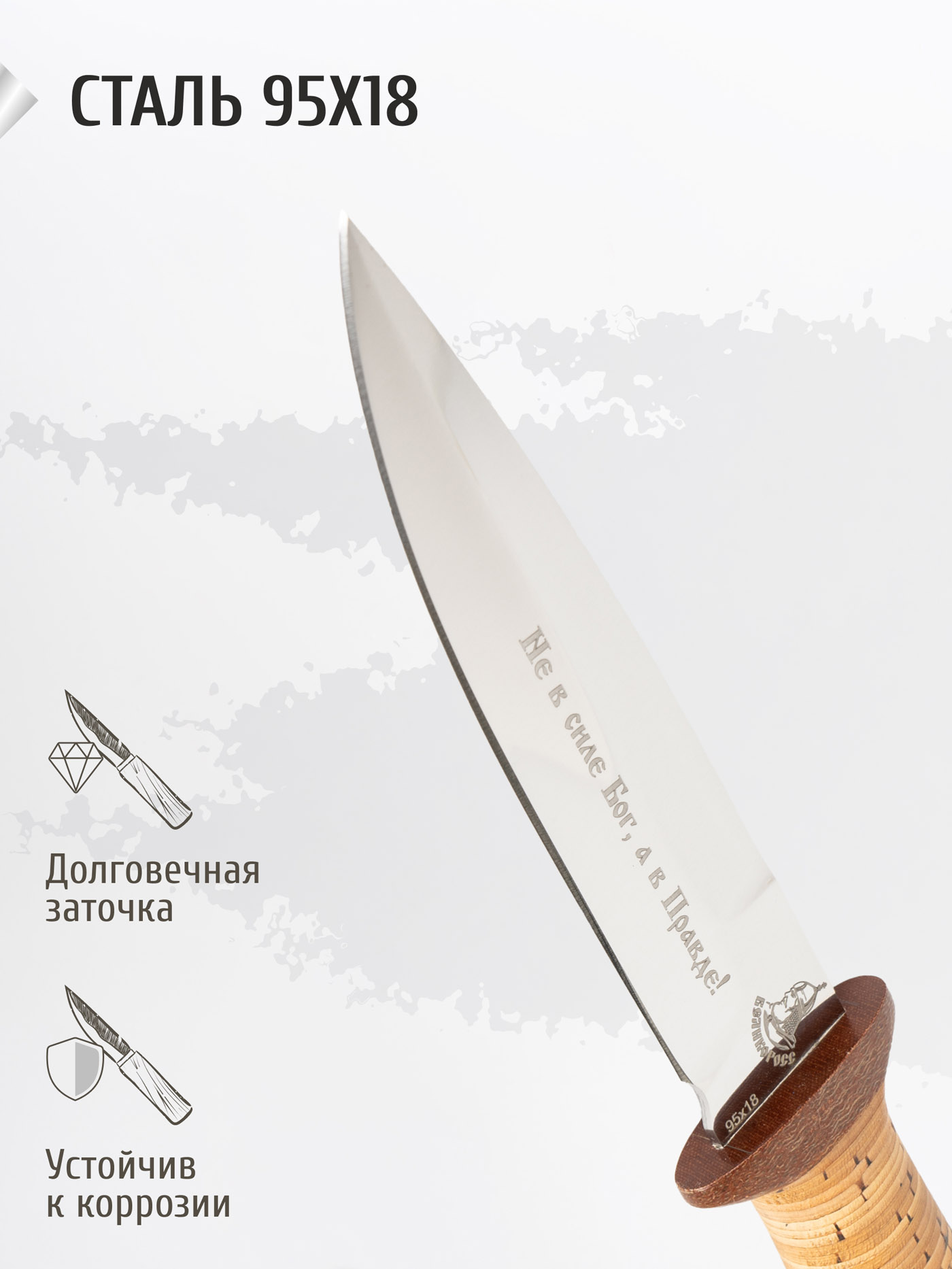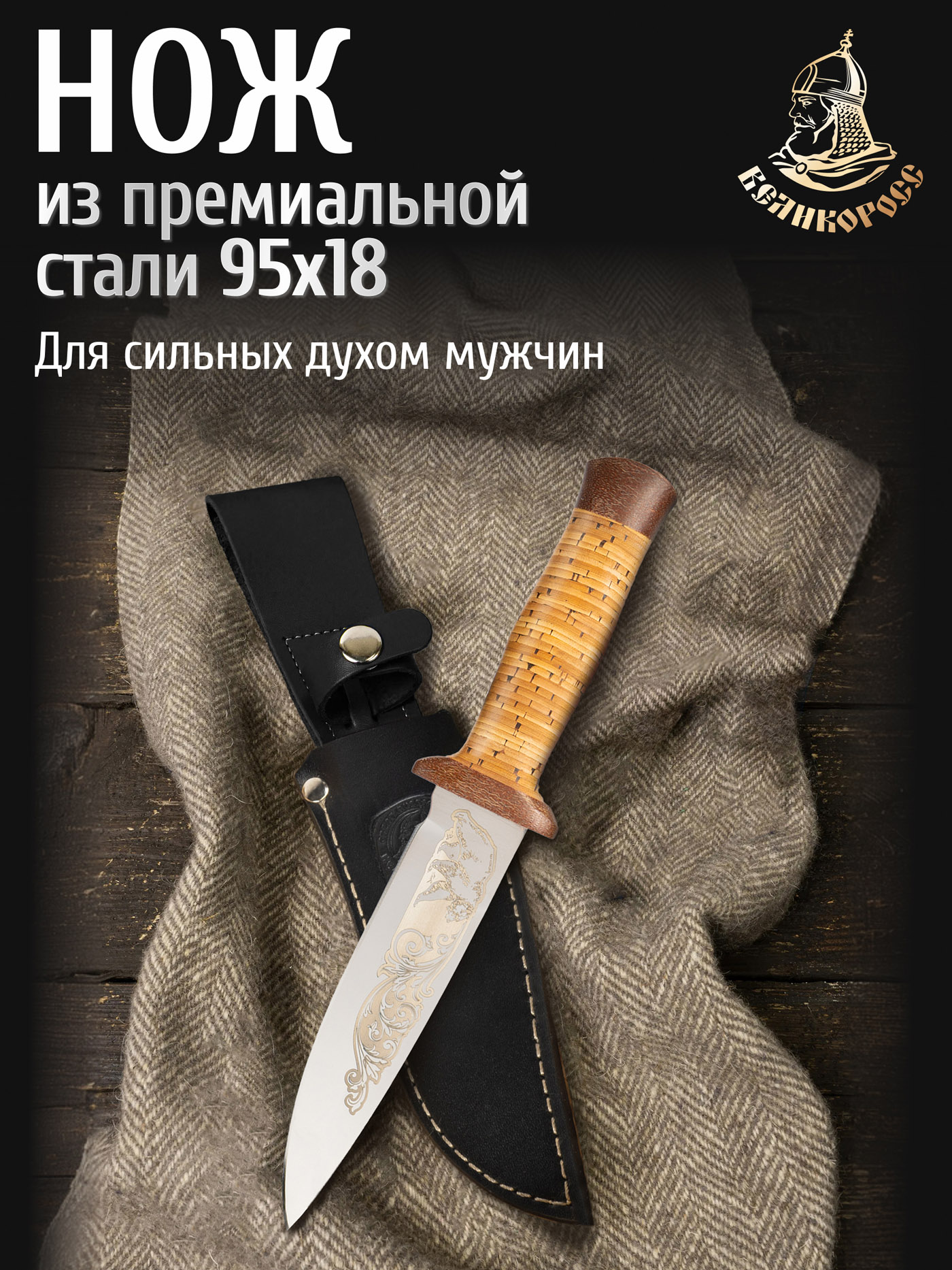 Нож "Штурм-Великоросс" (сталь 95x18, береста/текст.)