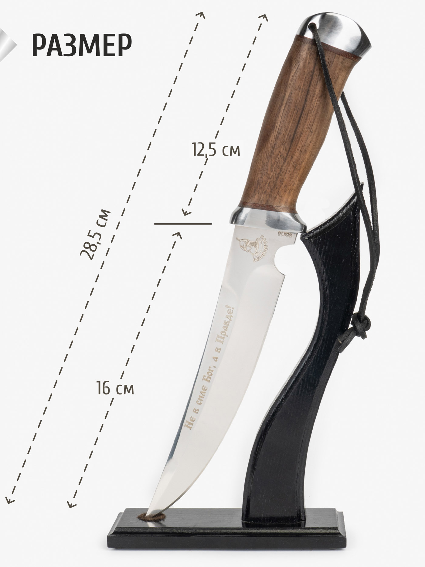 Красивый,качественный нож,на лезвии надпись ,отличные слова,с другой стороны рисунок,удобный ,лезвие острое,смотрится дорого.