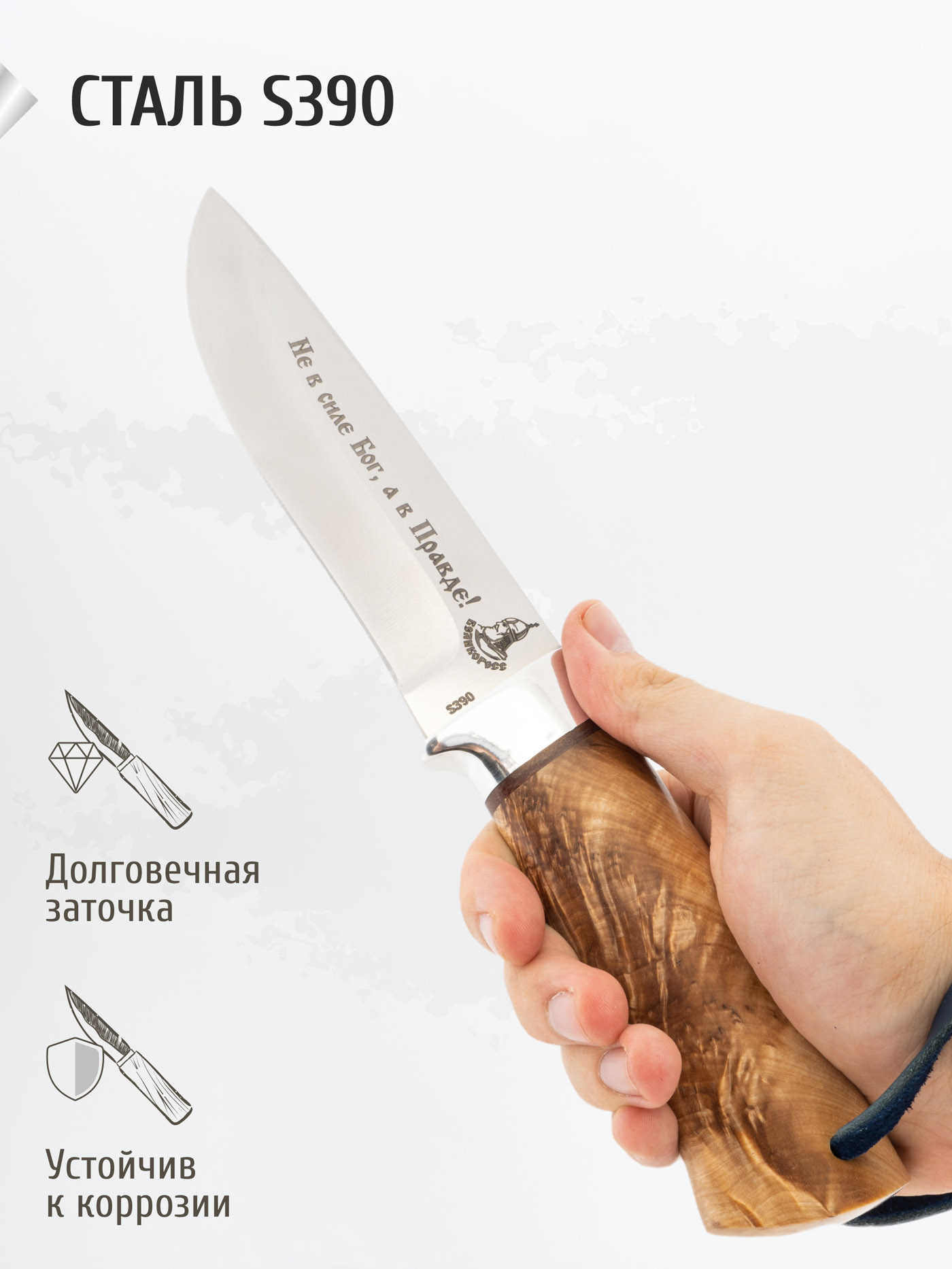 У ножа высокое качество изготовления, превосходная подгонка всех элементов, красивая рукоять, надежный чехол. Нож супер!