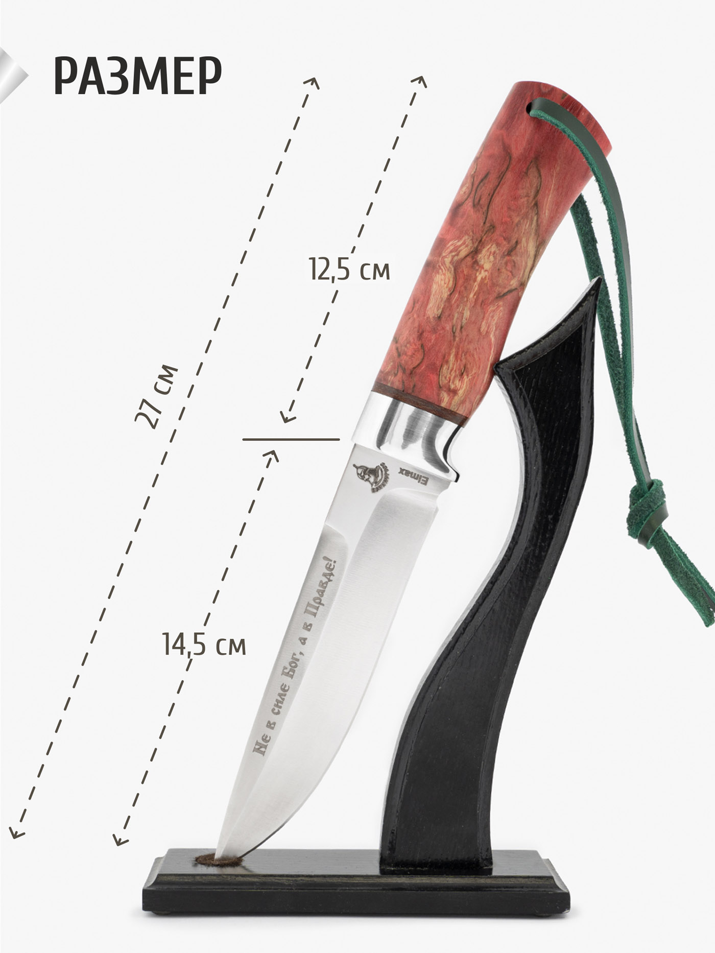Нож очень классный, рукоятка из березы имеет эргономичную форму - рукам приятно, на клинке шикарная гравировка. Рекомендую!