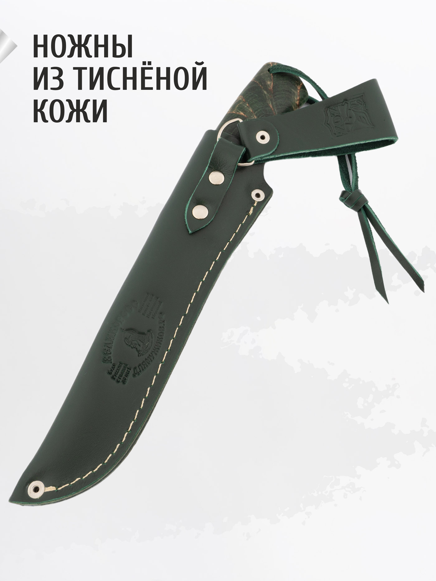 Креативный, изготовлен по человечески без изъянов, лезвие с завода острое переточки не требуется, рукоять удобная цвет с чехлом один в один приятно глазу. Советую берите не пожалеете!