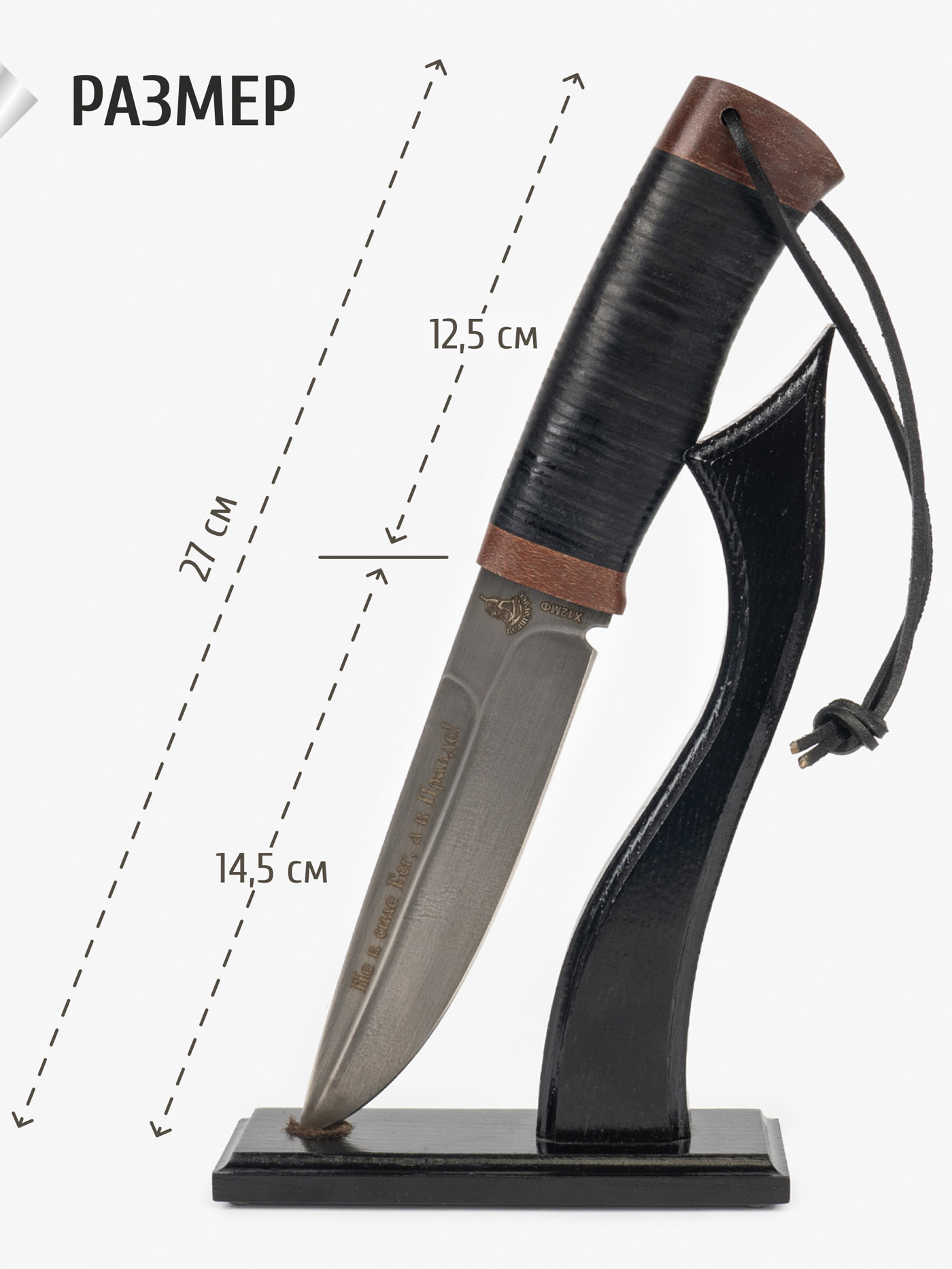 Нож выглядит брутально! Рукоять обтянута кожей в руке лежит четко, чехол полностью устраивает