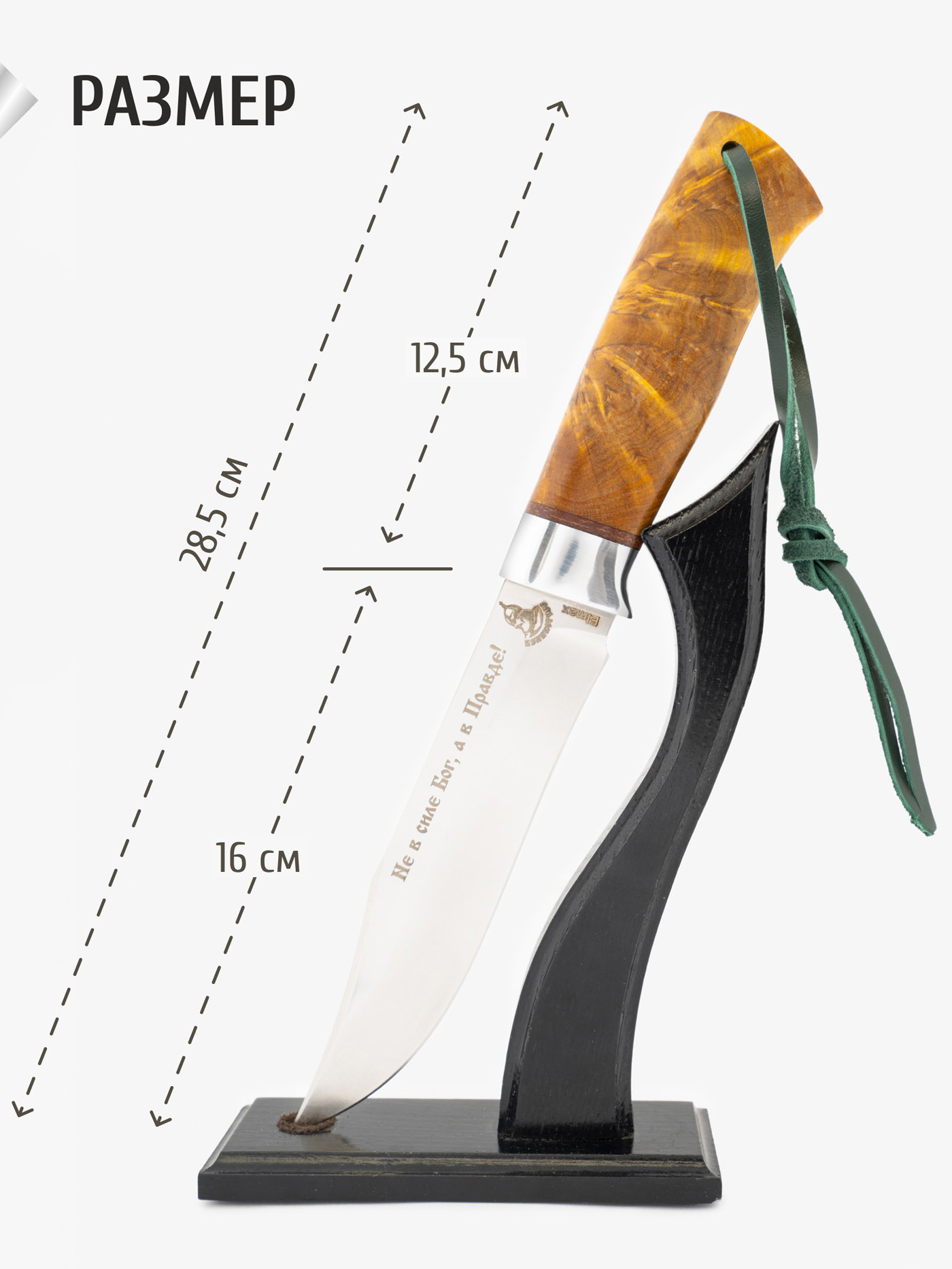 Нож безукоризненный, испытал на охоте, очень удобный работает как часы, лезвие острое изготовлено на совесть. Советую!