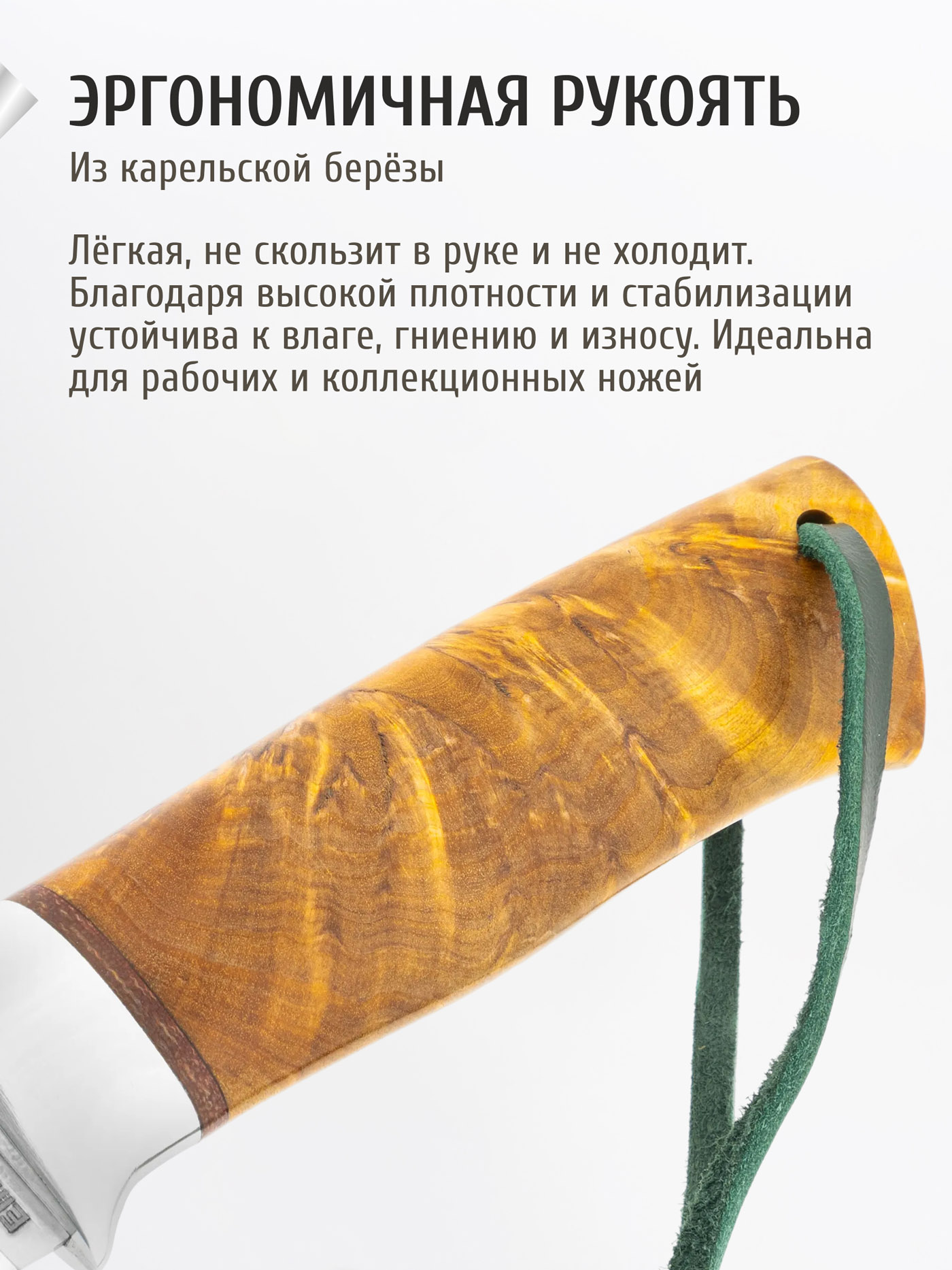 Идеальный, острый и удобный нож, рукоятка лежит в руке как влитая, клин из оружейной стали - режет отменно. Рекомендую!