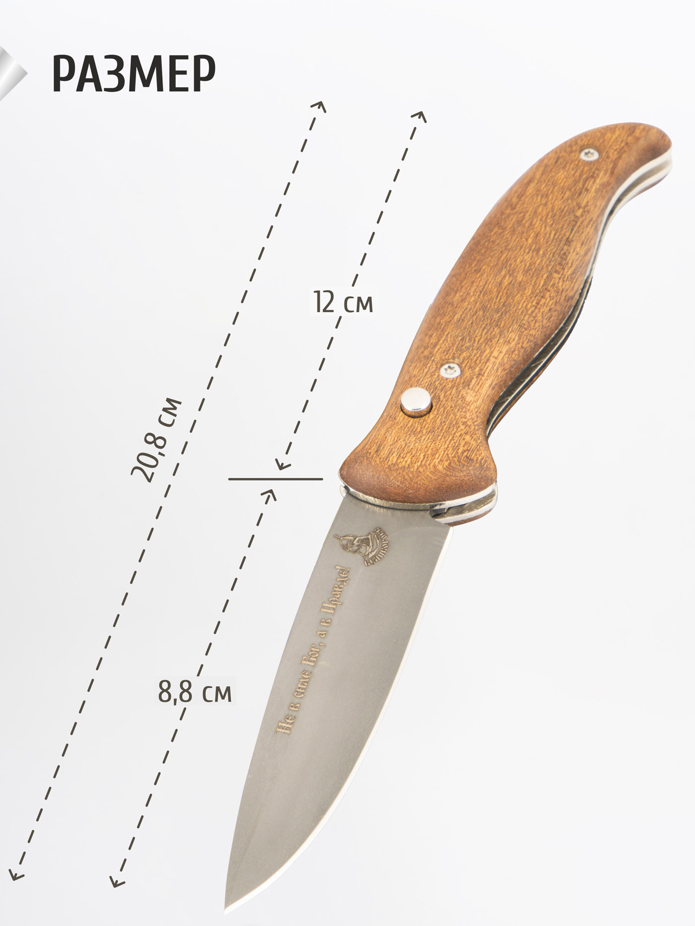 Складной нож супер! Острый, надежный, удобный на клинке ножа выполнена гравировка в классическом виде. Силуэт - медведя очень оригинально! В комплекте прилагается чехол из натуральной кожи. Рекомендую!